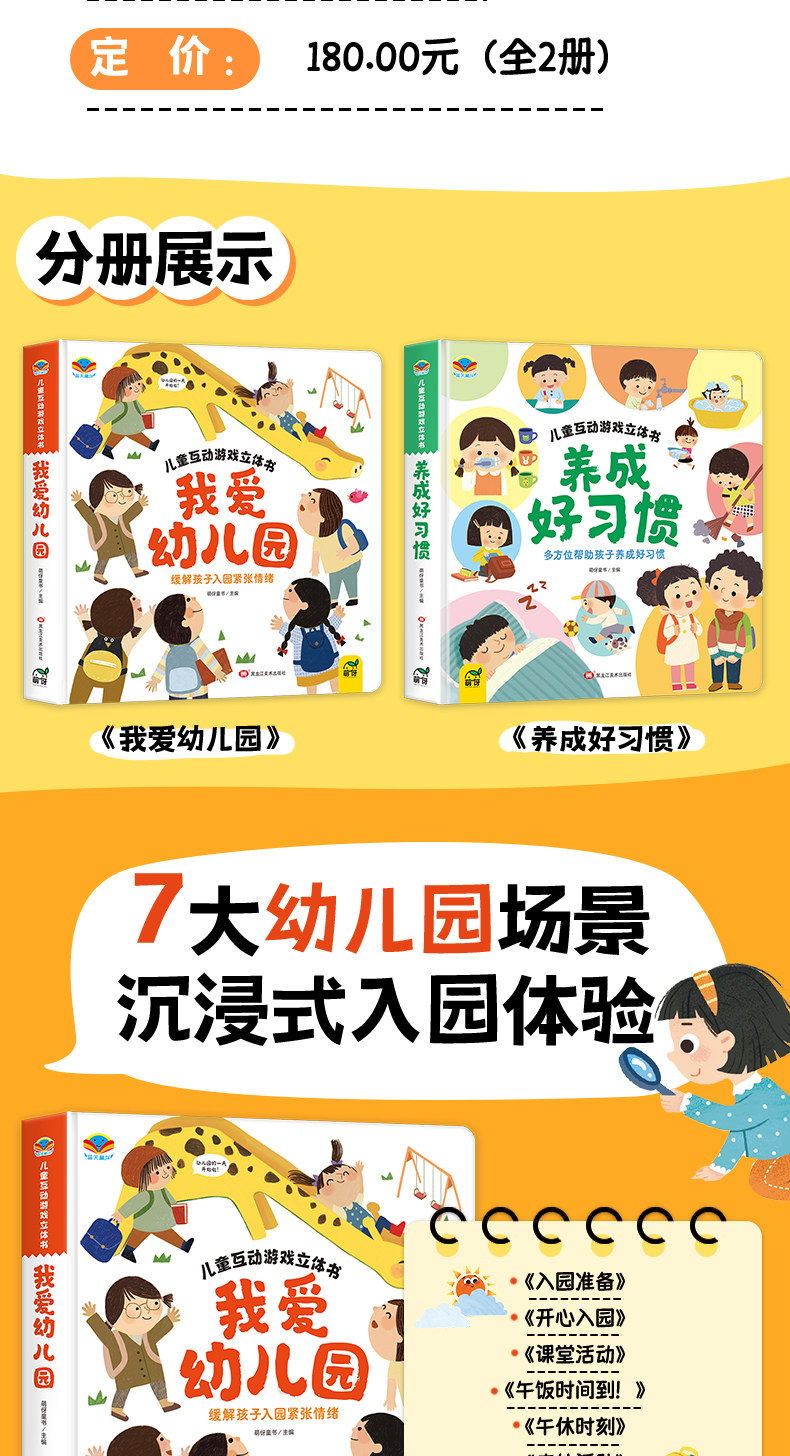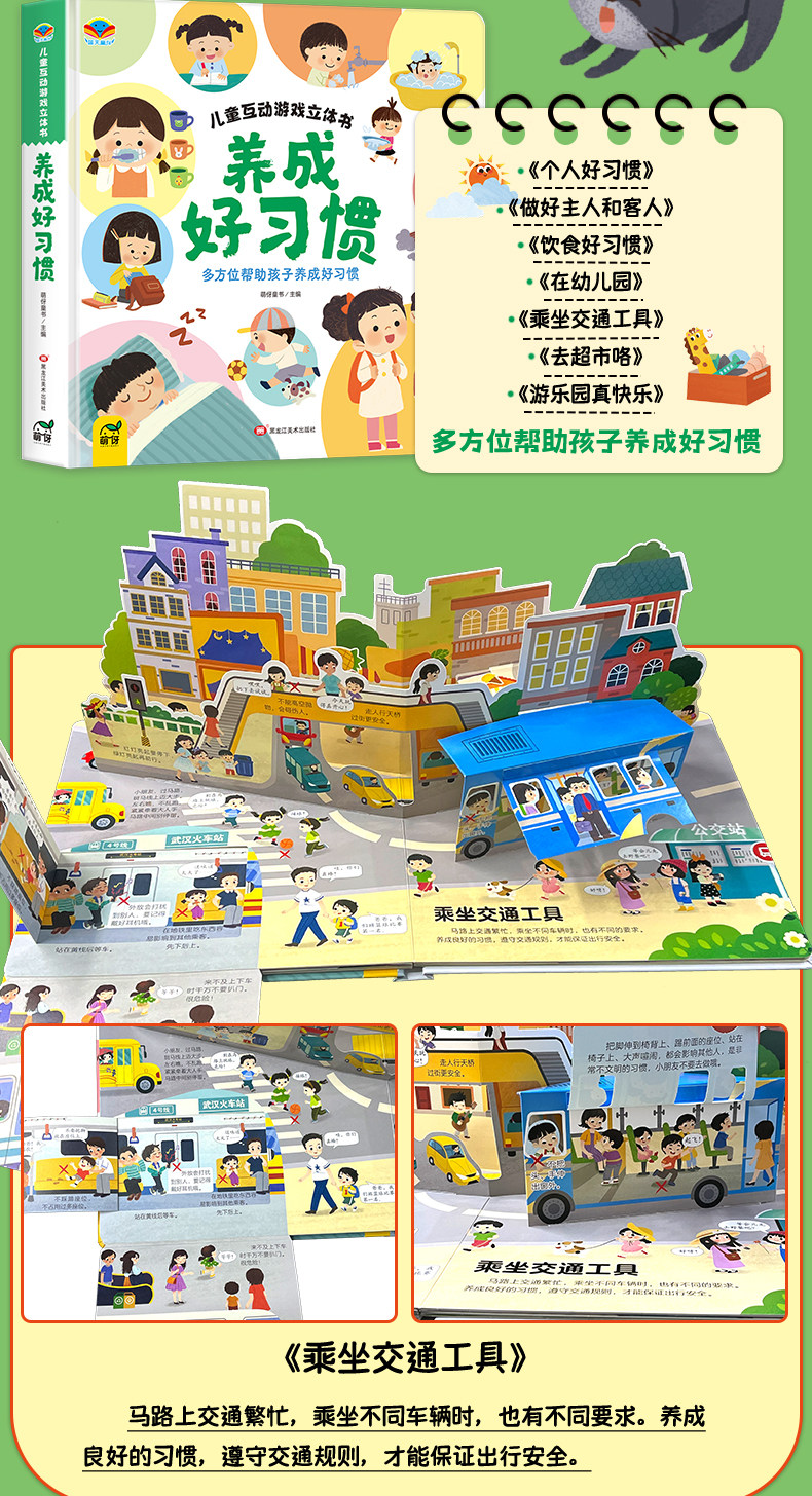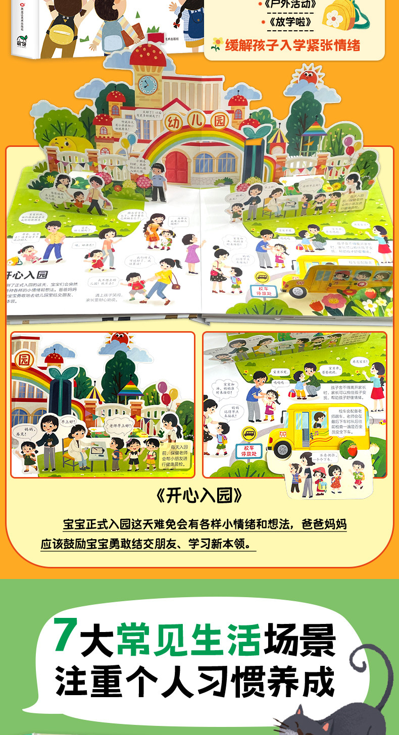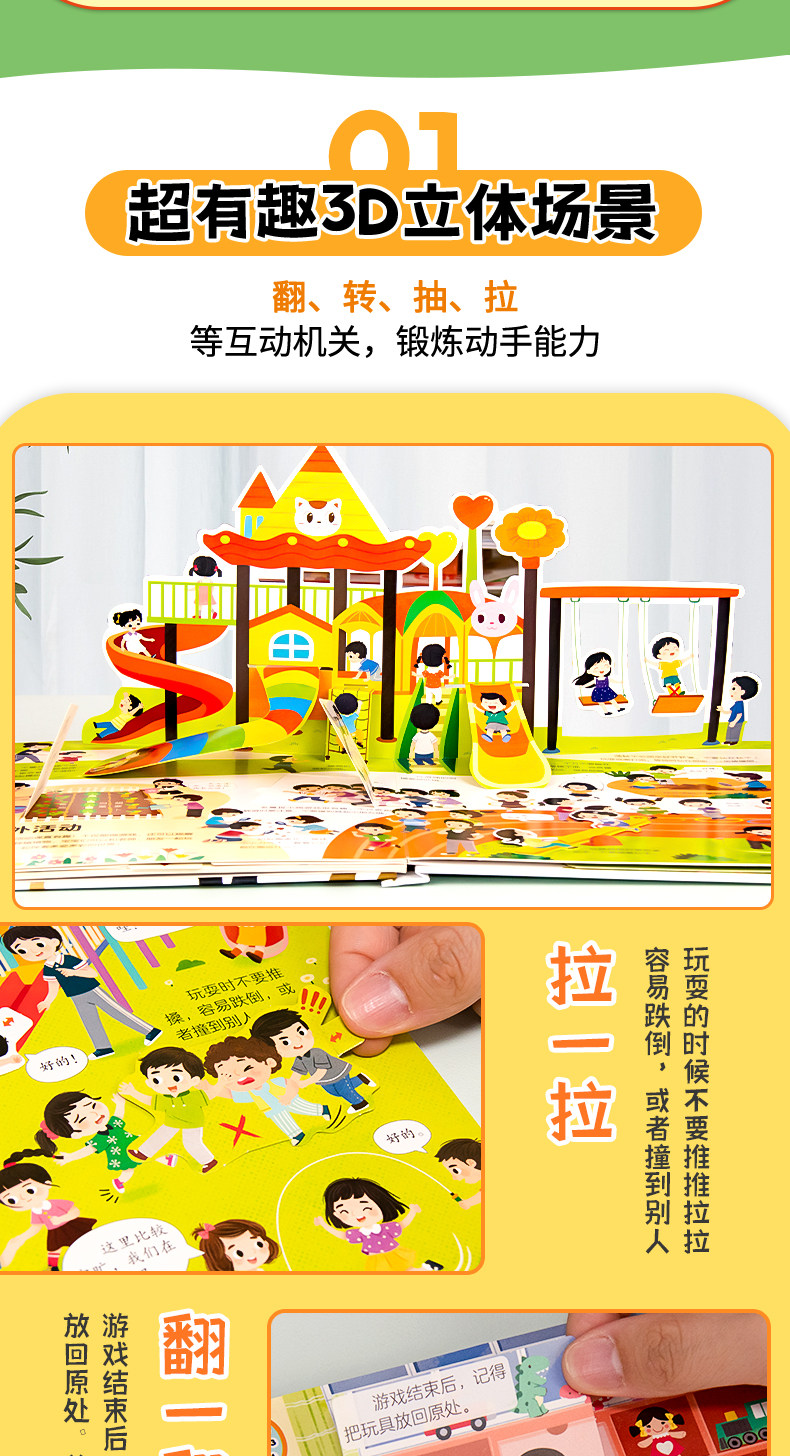 【抖音同款】我爱幼儿园养成好习惯儿童互动游戏3D立体书 安全早知道 幼儿入园准备小中大班2-3–6岁宝宝绘本互动游戏书立体翻翻书