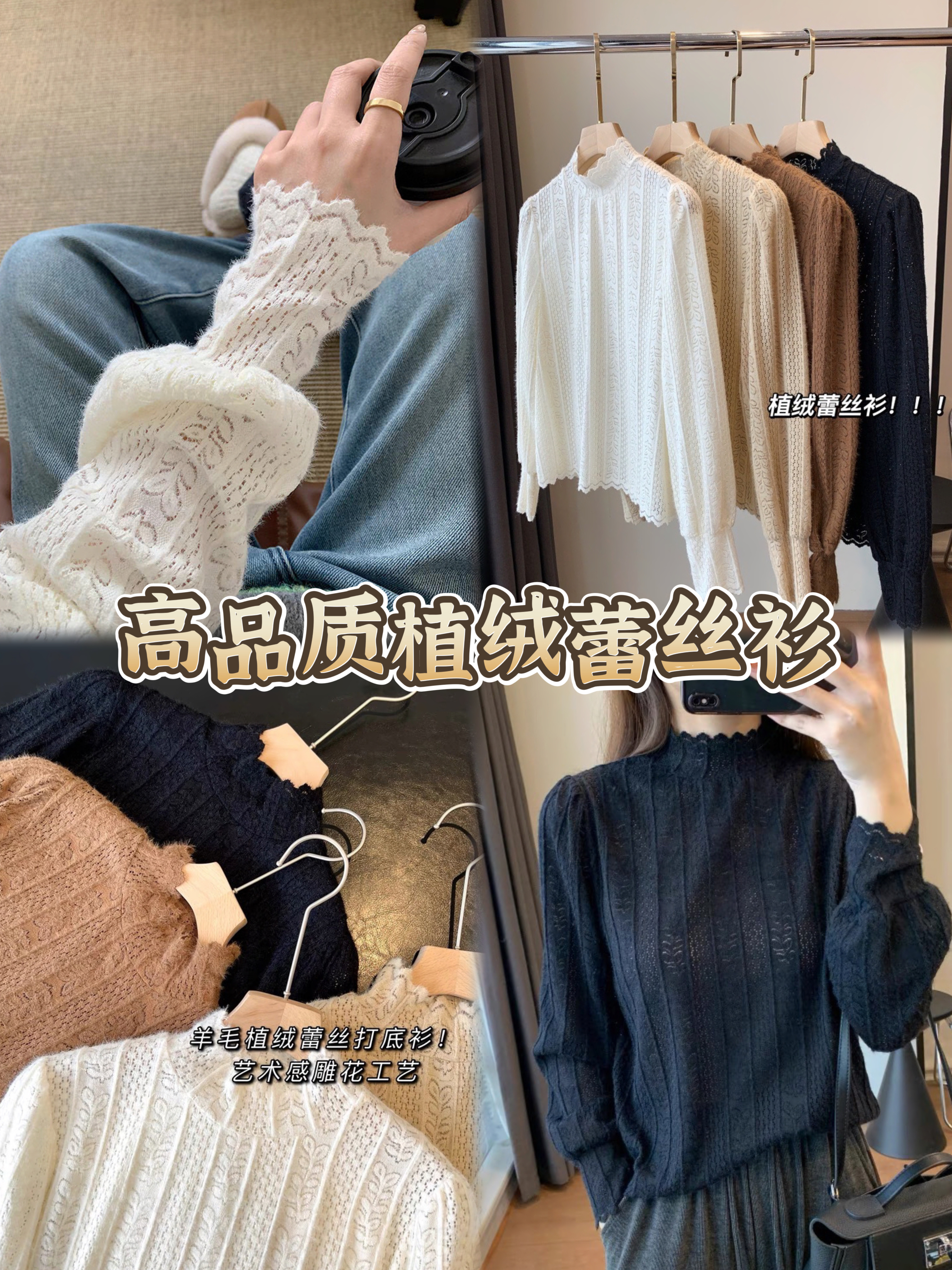 温温柔柔的法式蕾丝打底衫、bb们衣橱里是一定要有一件、满身花藤刺绣真的美翻了、微透面料透露时髦小心机,