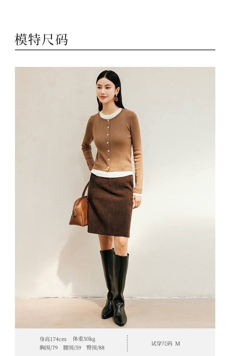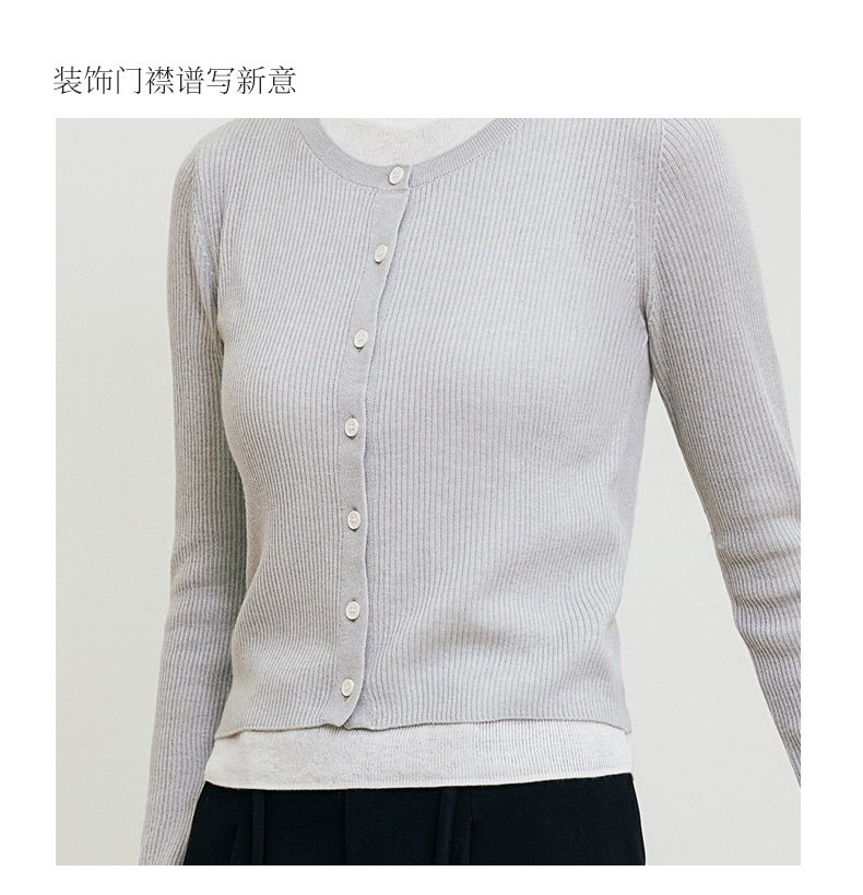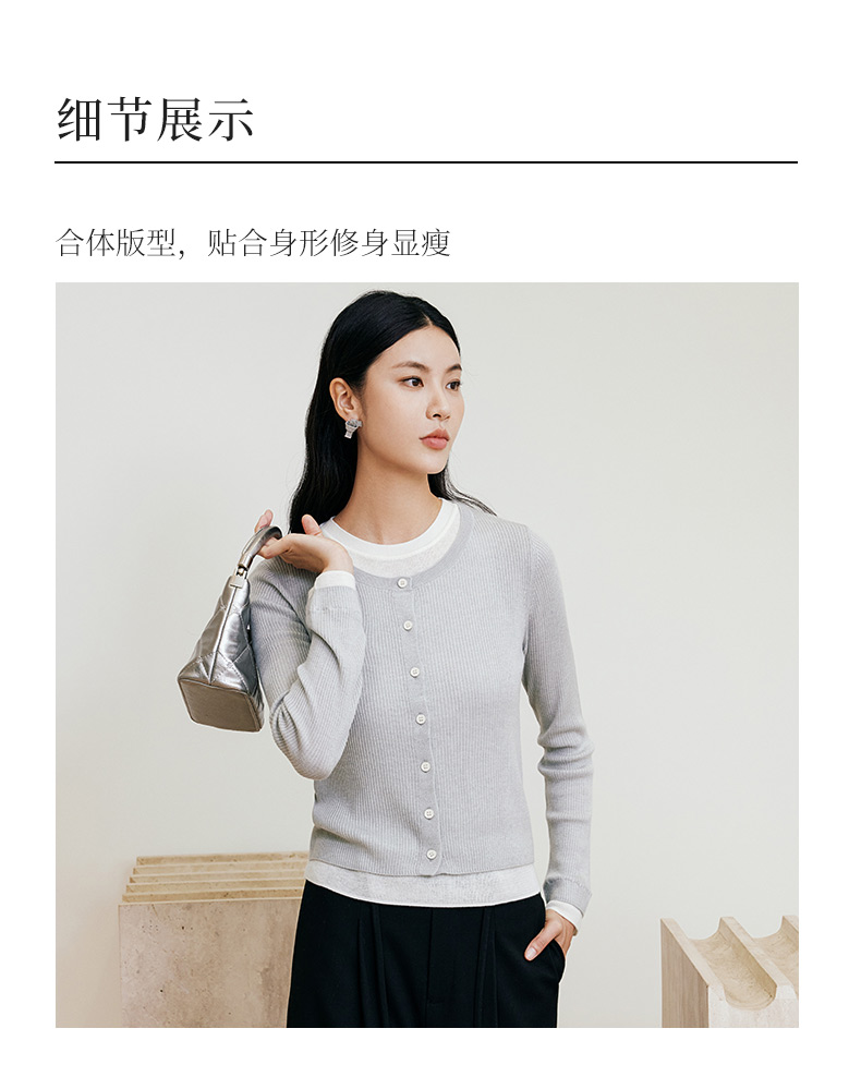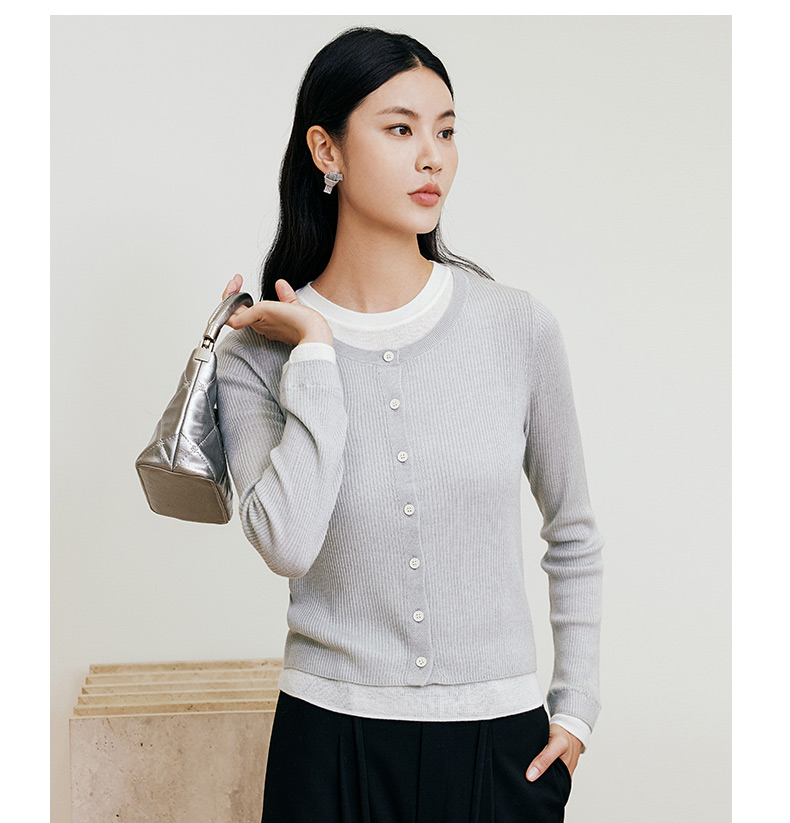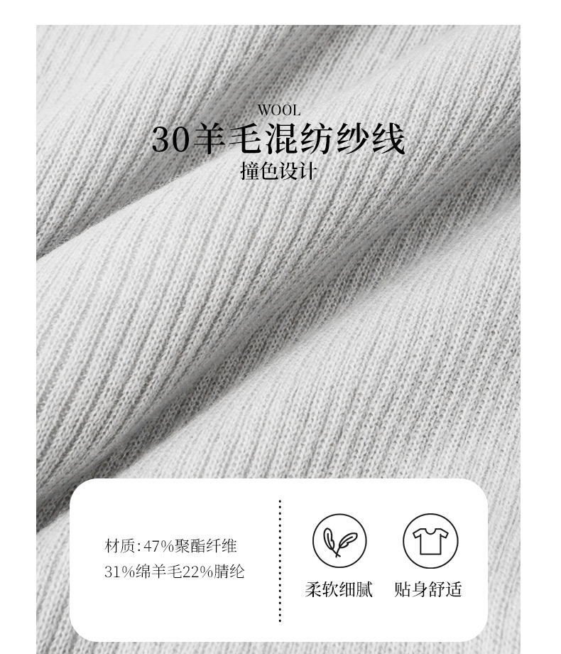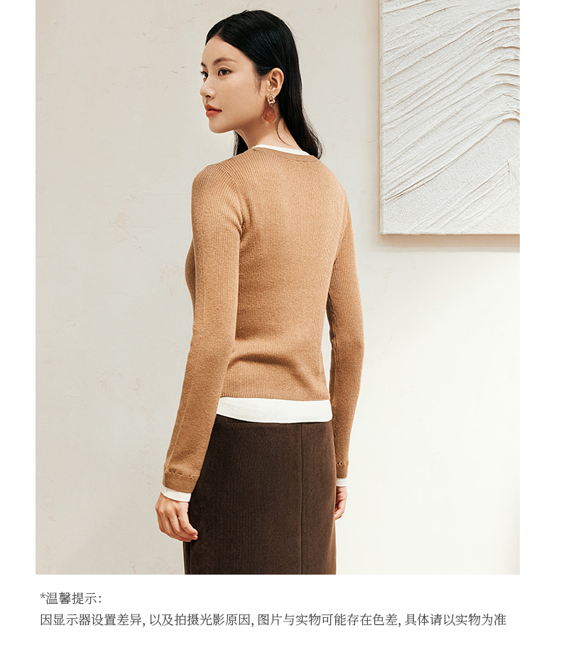玳莎假两件圆领针织衫时尚通勤百搭撞色显瘦上衣2024年冬季新款女 ED33307