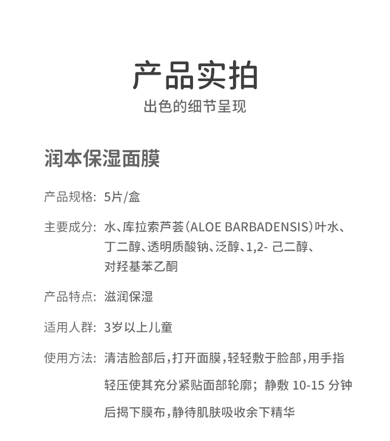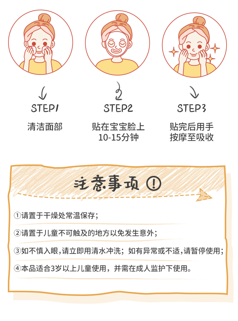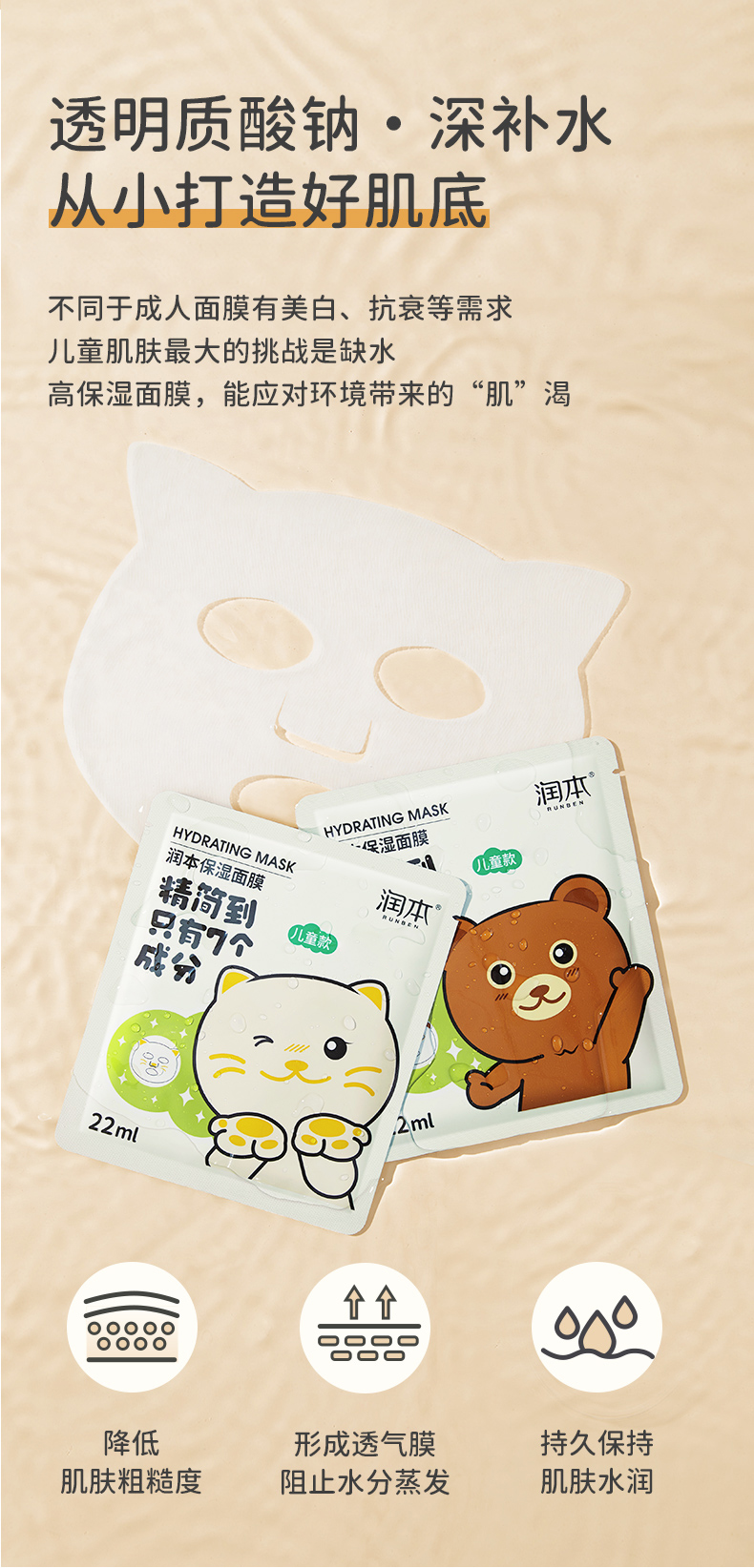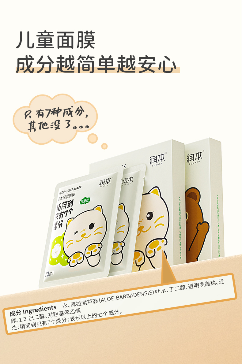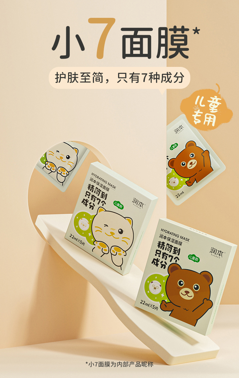 润本儿童面膜男女孩补水保湿舒缓学生男女童宝宝专用护肤卡通萌趣