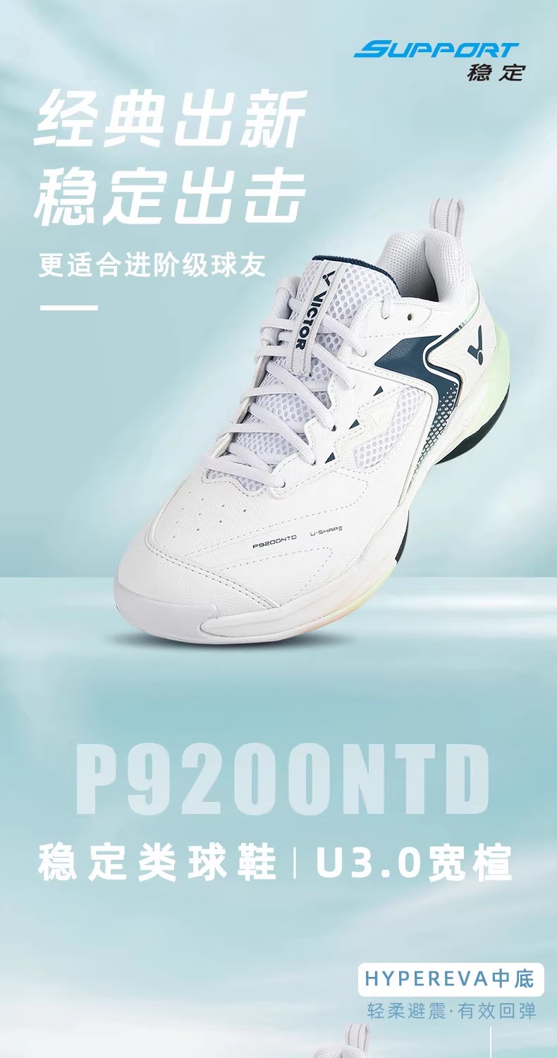2026年新款VICTOR威克多羽毛球鞋透气轻弹抗扭缓震宽楦进阶级稳定类羽球鞋P9200NTD
