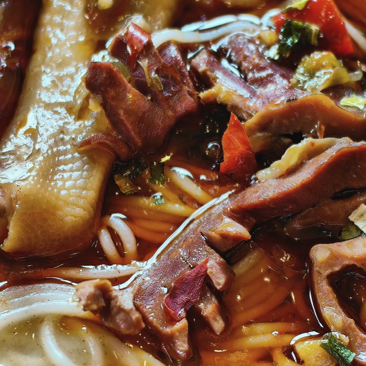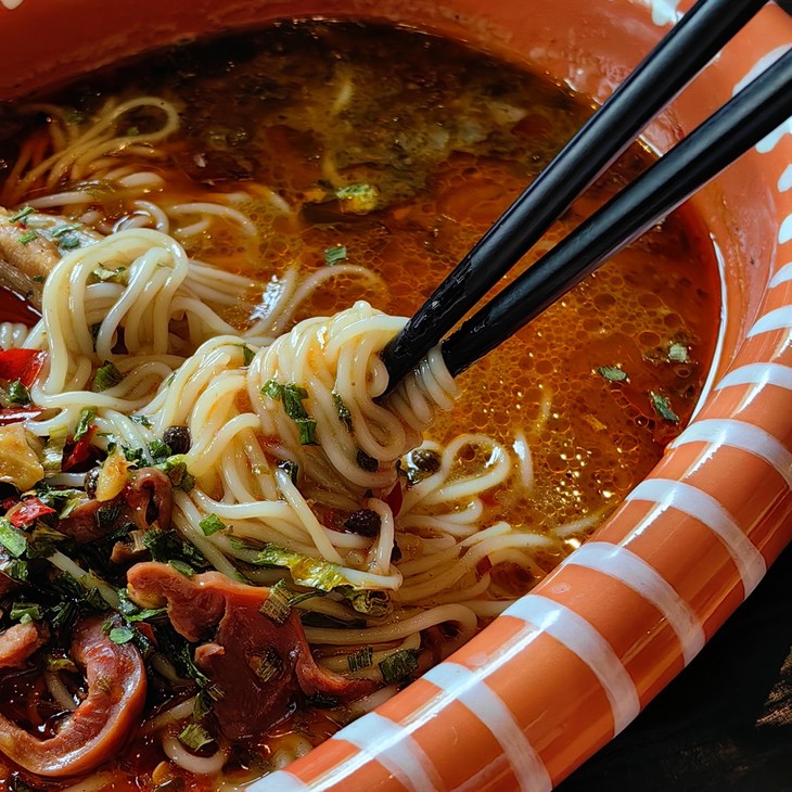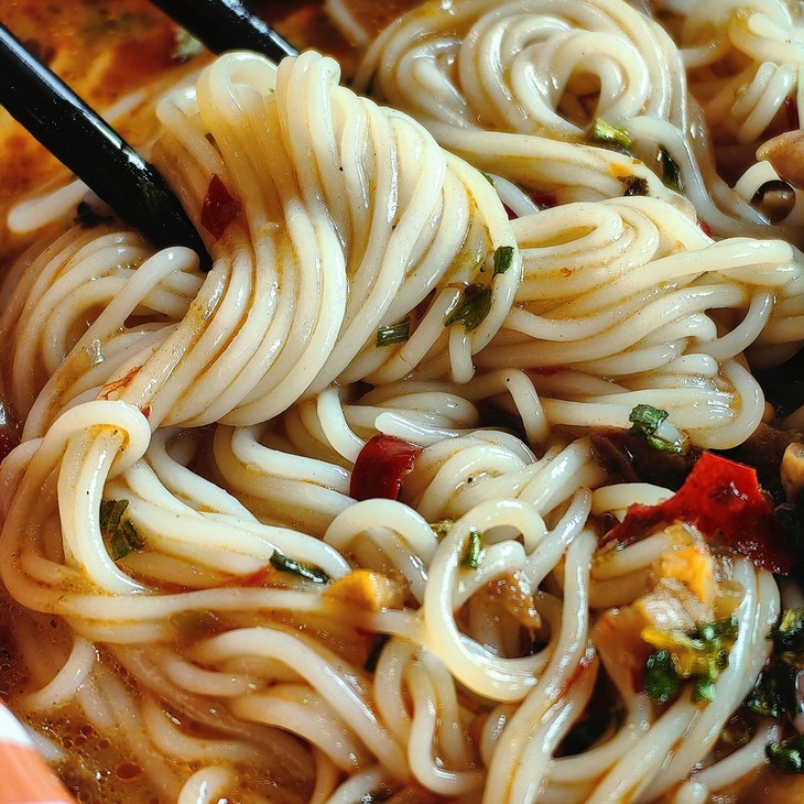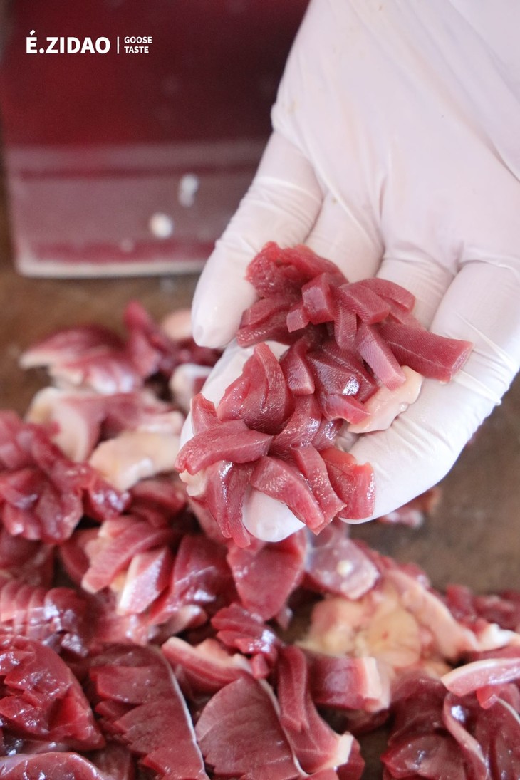 这碗鹅杂米线,从源头把控食材品质,所使用的鹅胗均来自自家位于重庆荣昌的鹅类养殖基地,是西南地区最大的,原生态放养,不使用抗生素,确保鹅类食材的纯净与健康。在制作工艺上,同样注重细节,新鲜鹅胗,手工切割,确保了口感Q弹韧嫩,更容易入味。同时,还用自家鹅场鹅肥膘提取的鹅油作为底料,搭配重庆特色辣椒和各种香料,独特而美味。鹅油富含不饱和脂肪酸,胆固醇含量较低,被誉为动物界的橄榄油,炒制出的底料清香扑鼻,不油腻。为了保证口感,底油和鹅杂料包还是分开,确保每一口都是最佳味道。米线也是一大亮点,来自云南蒙自,优质大米和水,不添加任何明胶和防腐剂!