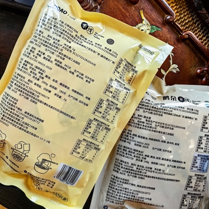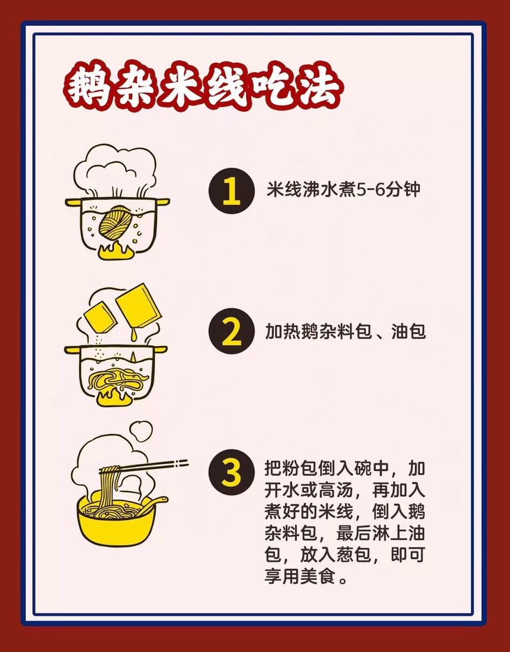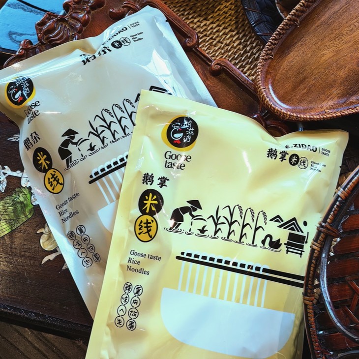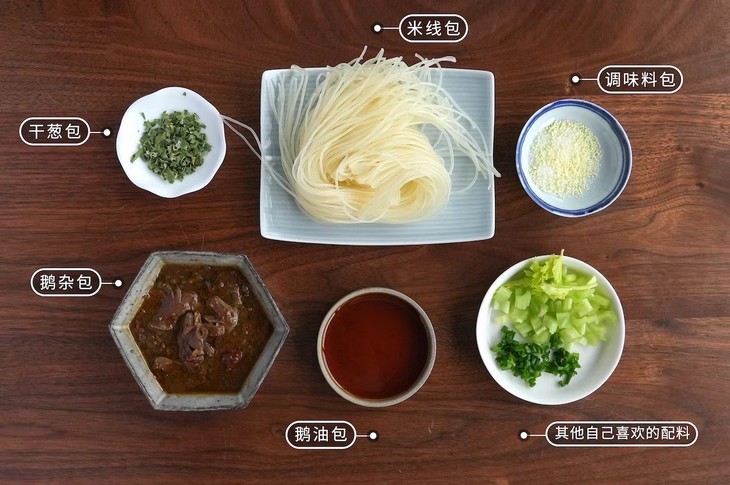 包装蛮简单的,但料多多!包含了鹅杂佐料包、米线包、红油、干葱、盐包,满满当当,只需将米线放入沸水中煮5-6分钟熟后捞出,再用沸水加热鹅杂料包和油包,最后再根据口味加入干葱和盐包就行!米线白白的,超爽滑,融合鹅油和麻辣酱料的美妙组合,再配上大块的鹅杂,夹上一筷子,大大的满足!麻麻辣辣,鲜香开胃,太适合没有胃口的夏天啦!除了鹅杂款外,还有鹅掌可以选哦,它是以酱油、鹅油、花椒等调料加入香辛料和清水入锅焖煮,使得鹅掌浸满料汁,鲜香软糯,嚼劲十足却又轻松脱骨,也很美味!我是挑出来一起吃了,加料!