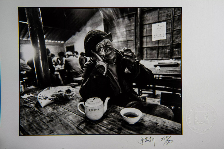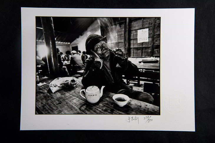此作品是60名家作品中的其中之一,创作于1990年,作者擅长“从普通人身上留住人间最美好的记忆”,这张照片拍摄于绍兴一家茶馆内,柯桥镇划乌蓬船的船工在出工之前,坐在茶馆里一边抽烟喝茶一边听广播匣子里的戏曲,惬意悠然。作品收录于画册《消逝的影像》,是于志新二十多年游走域内即将消逝的、鲜活的生活场景的记录存照。