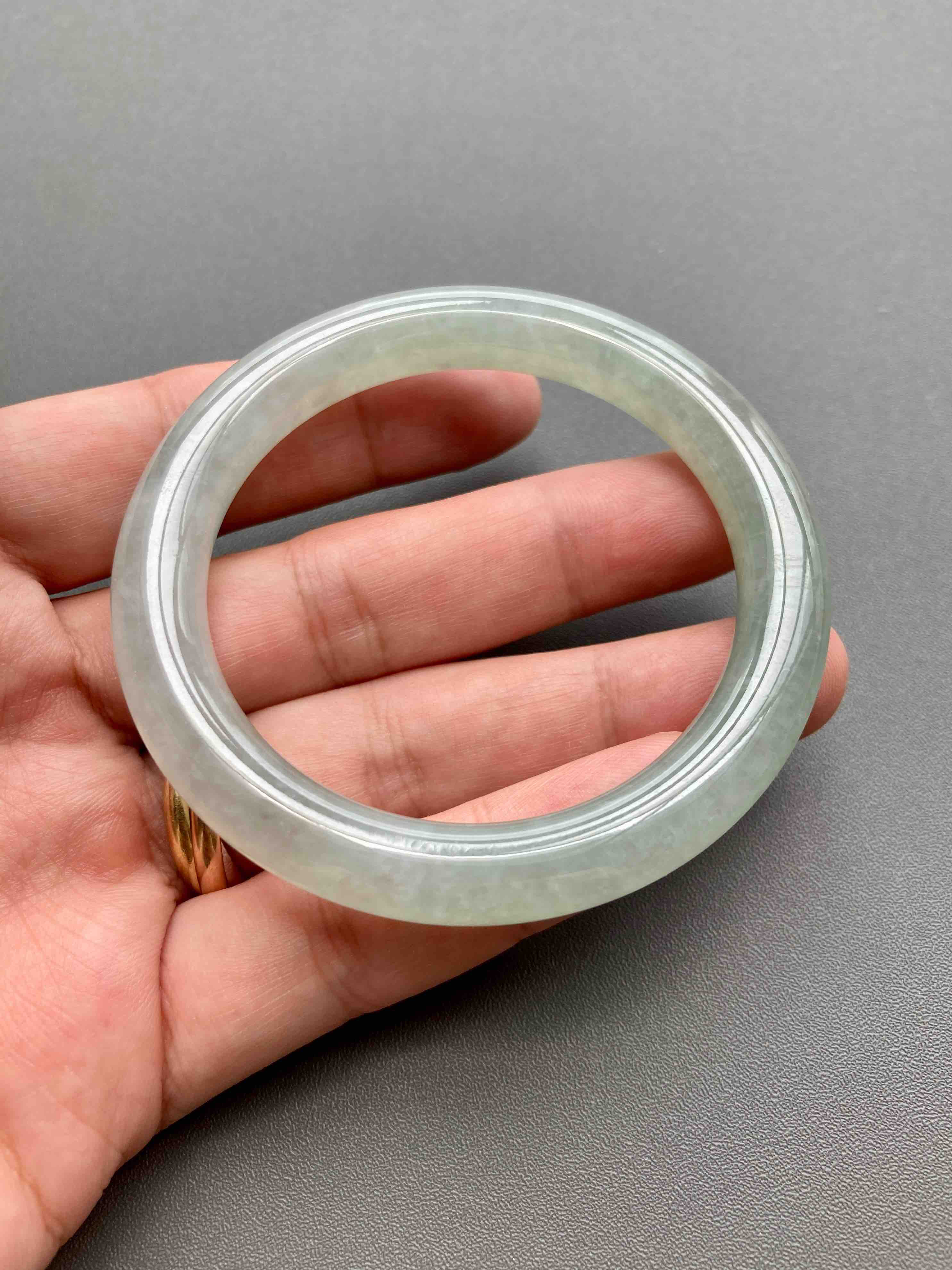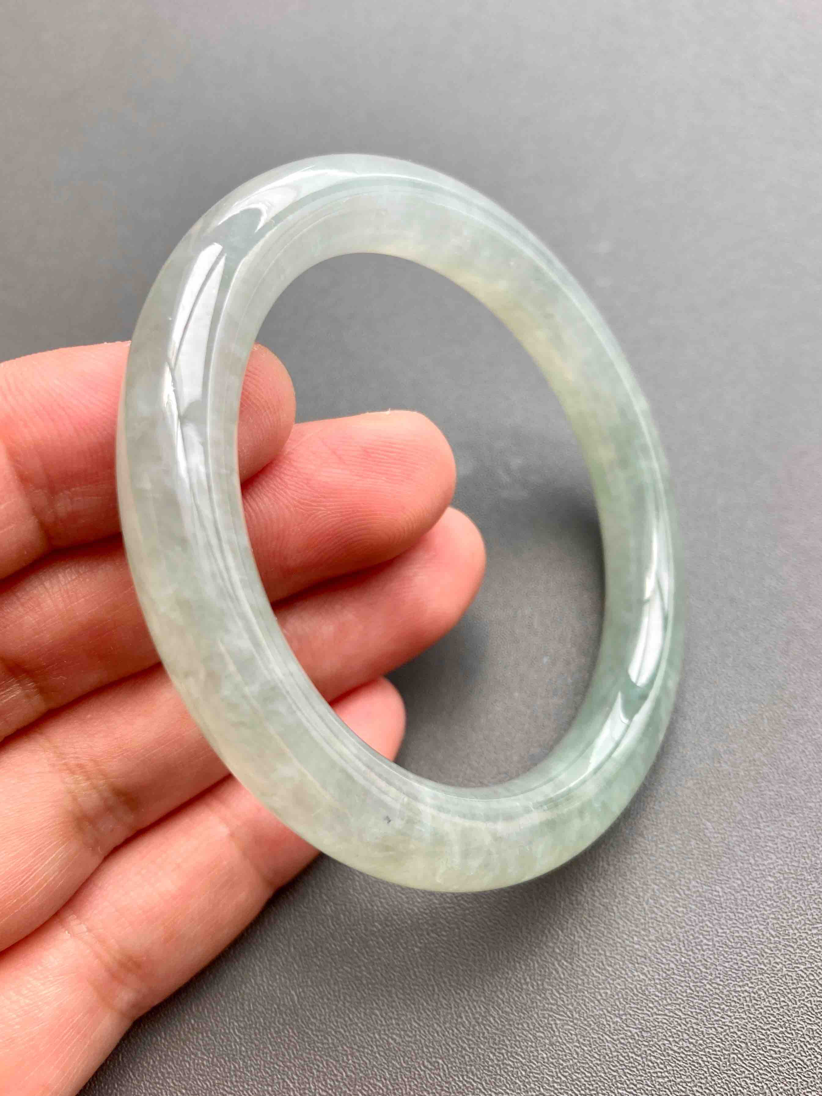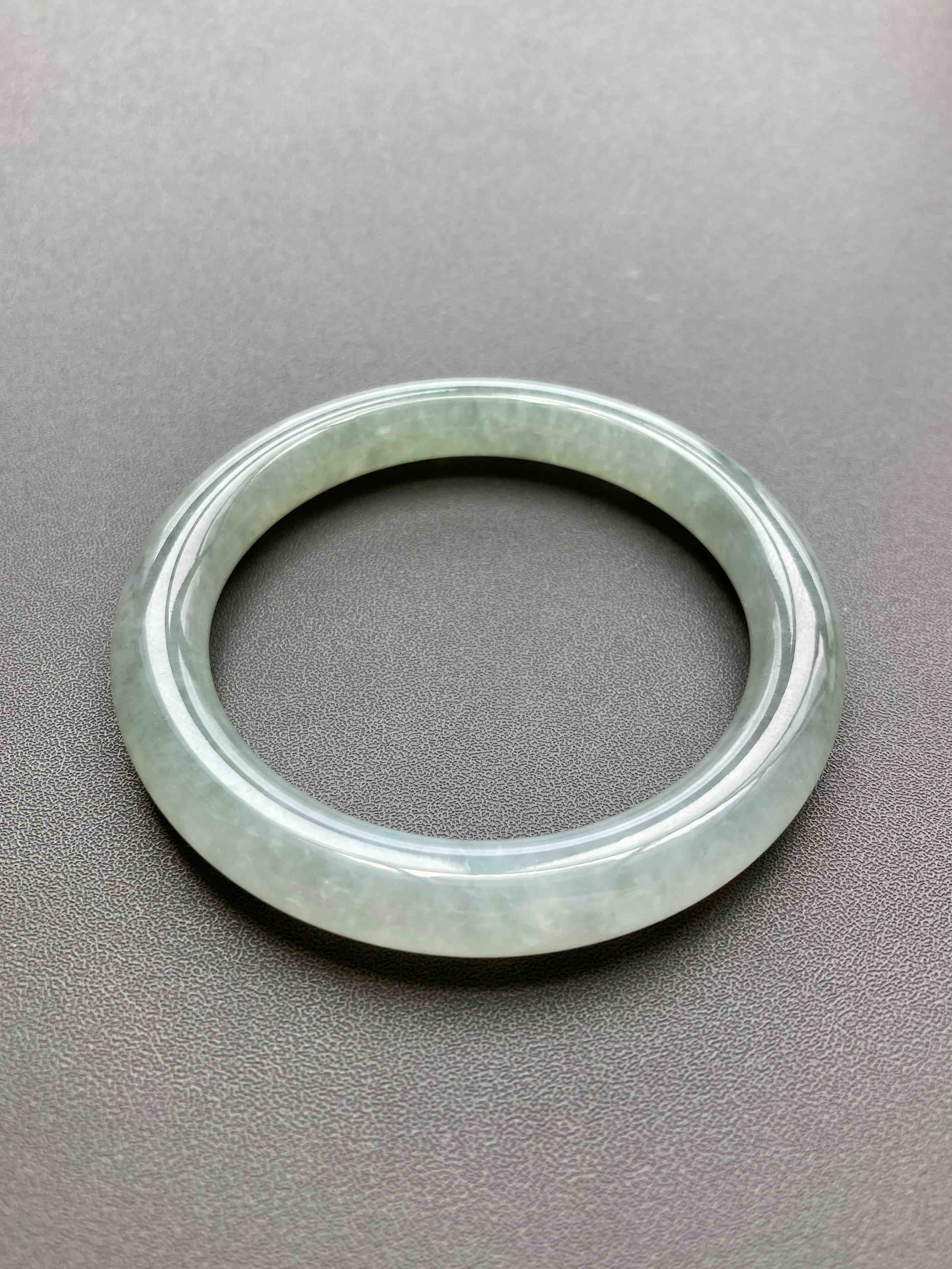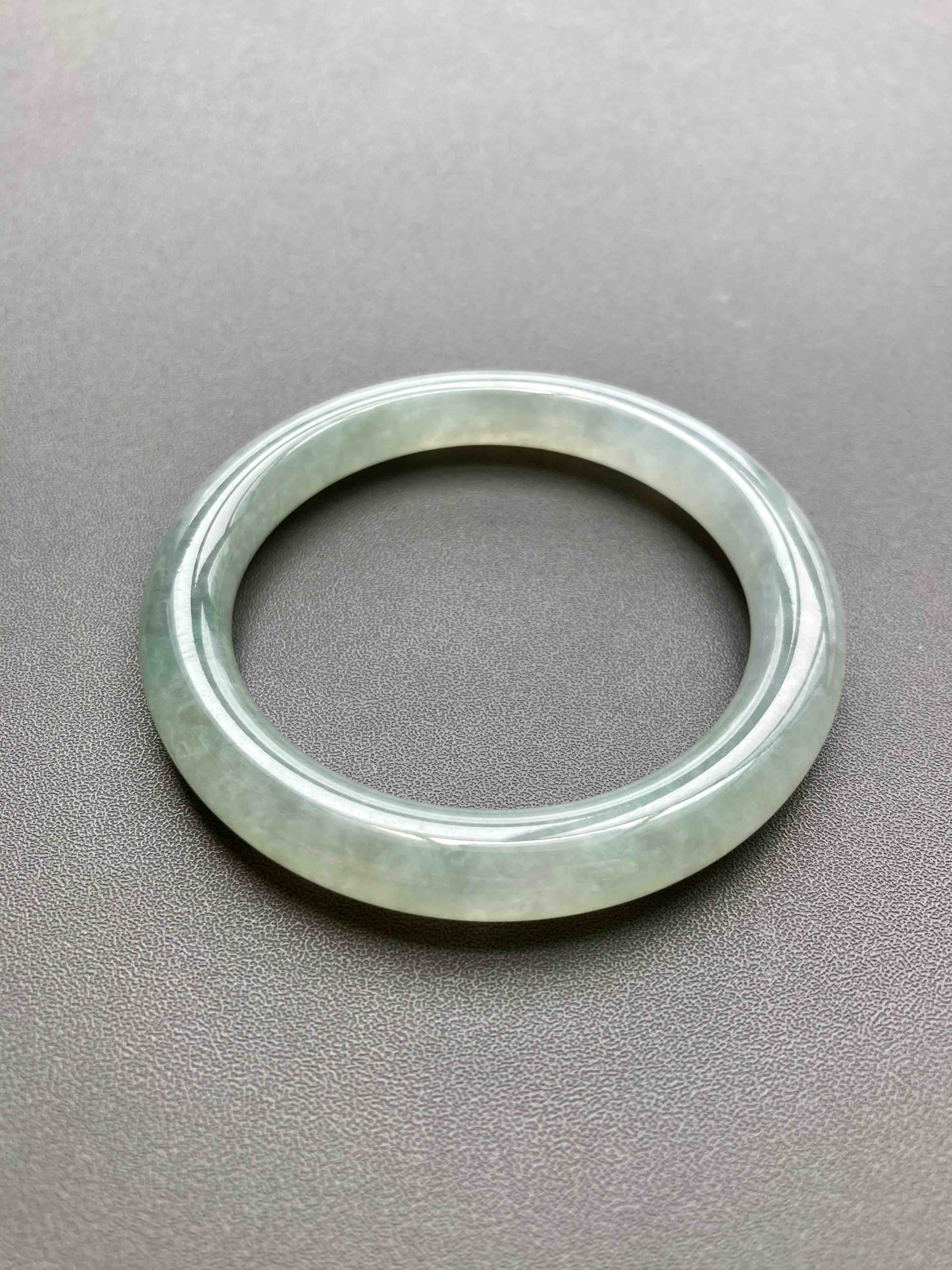 超划算的冰种淡晴水翡翠圆条手镯,种水棒极了,到冰,种水晶莹剔透,淡淡底色,细条优雅,小手有福,内径52mm,适合手寸51到53佩戴,这价位冰种收入囊中,拼手速