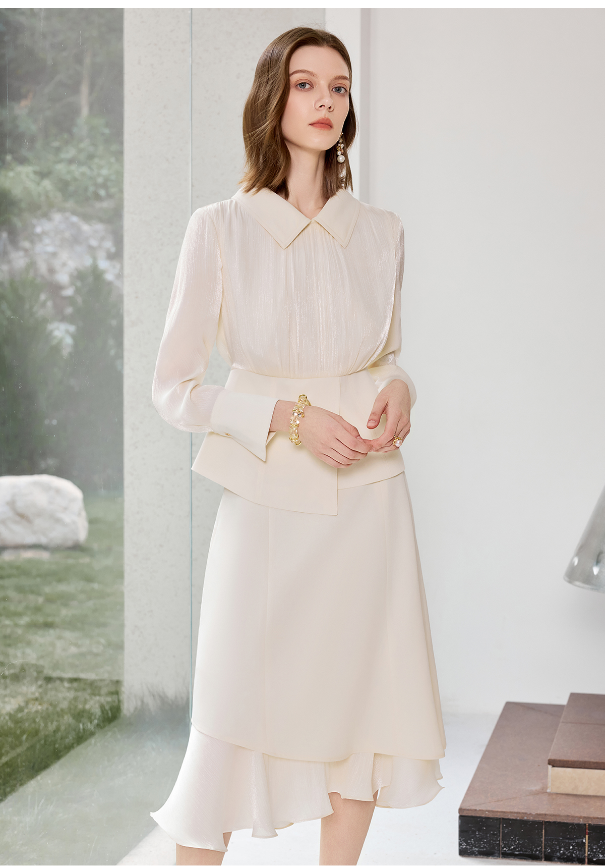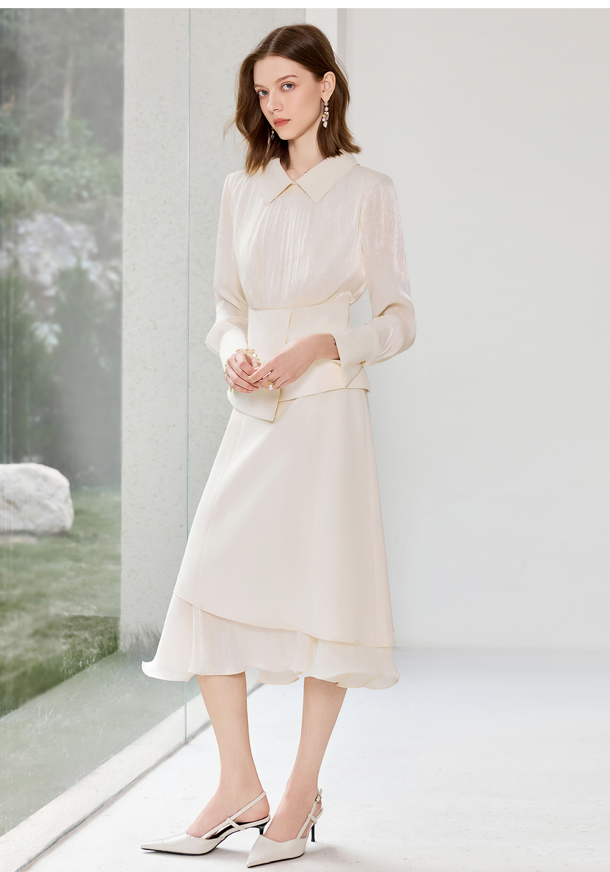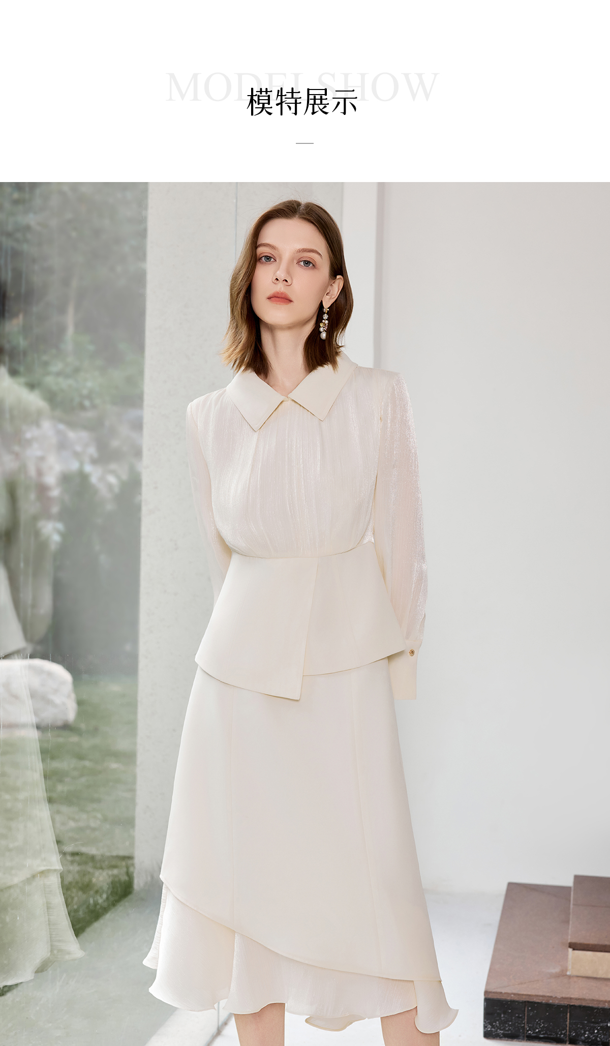 艾尚臣米白色衬衫半裙两件套女高级感长袖衬衣职业装美容院工作服