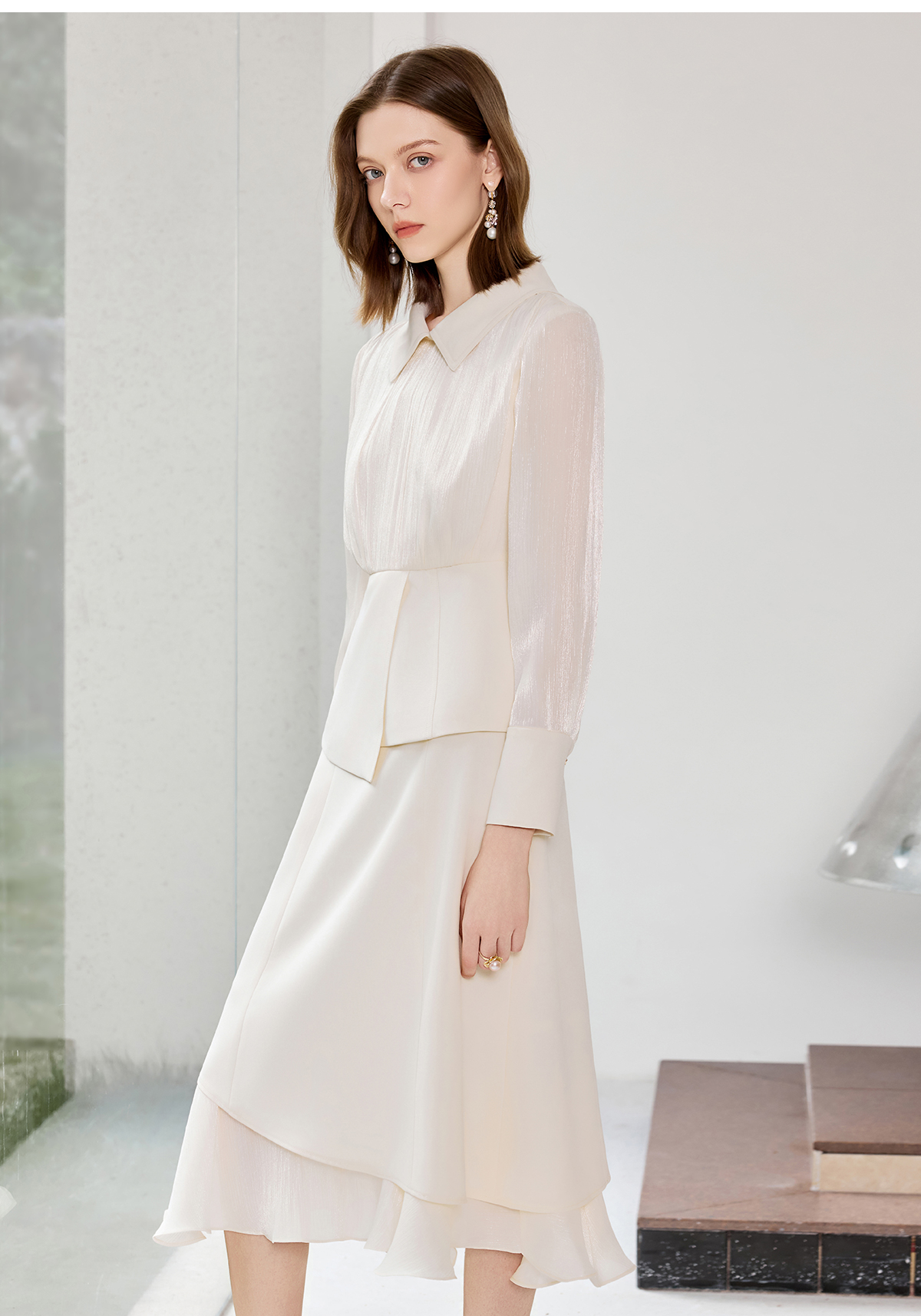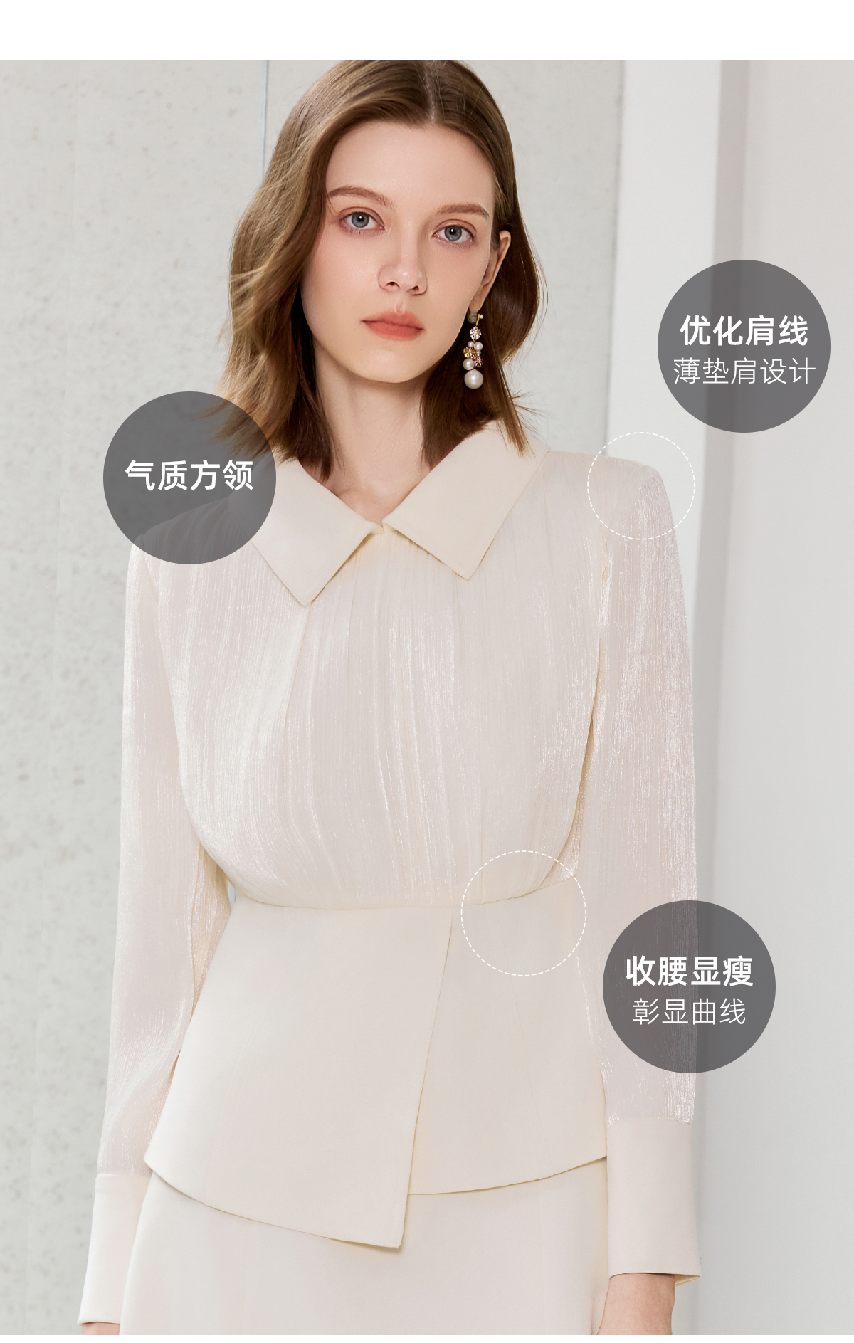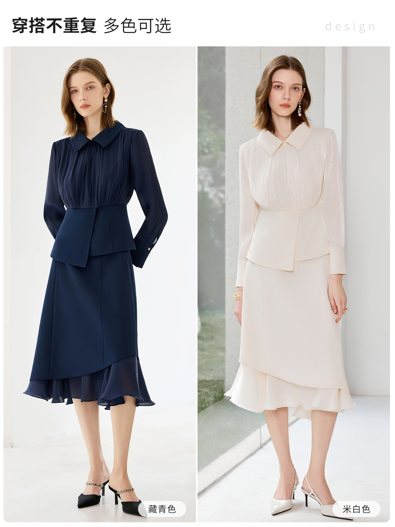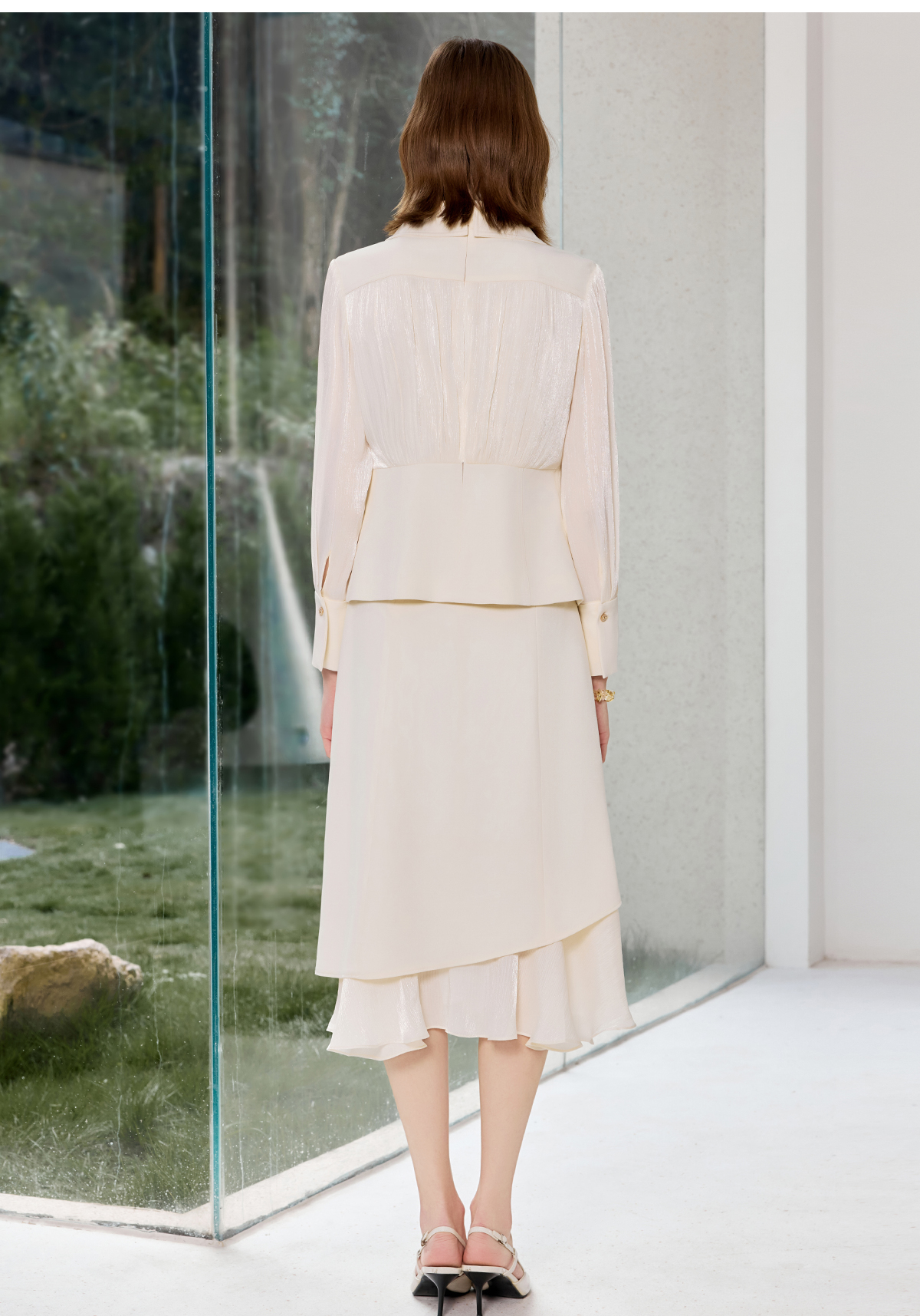 艾尚臣米白色衬衫半裙两件套女高级感长袖衬衣职业装美容院工作服