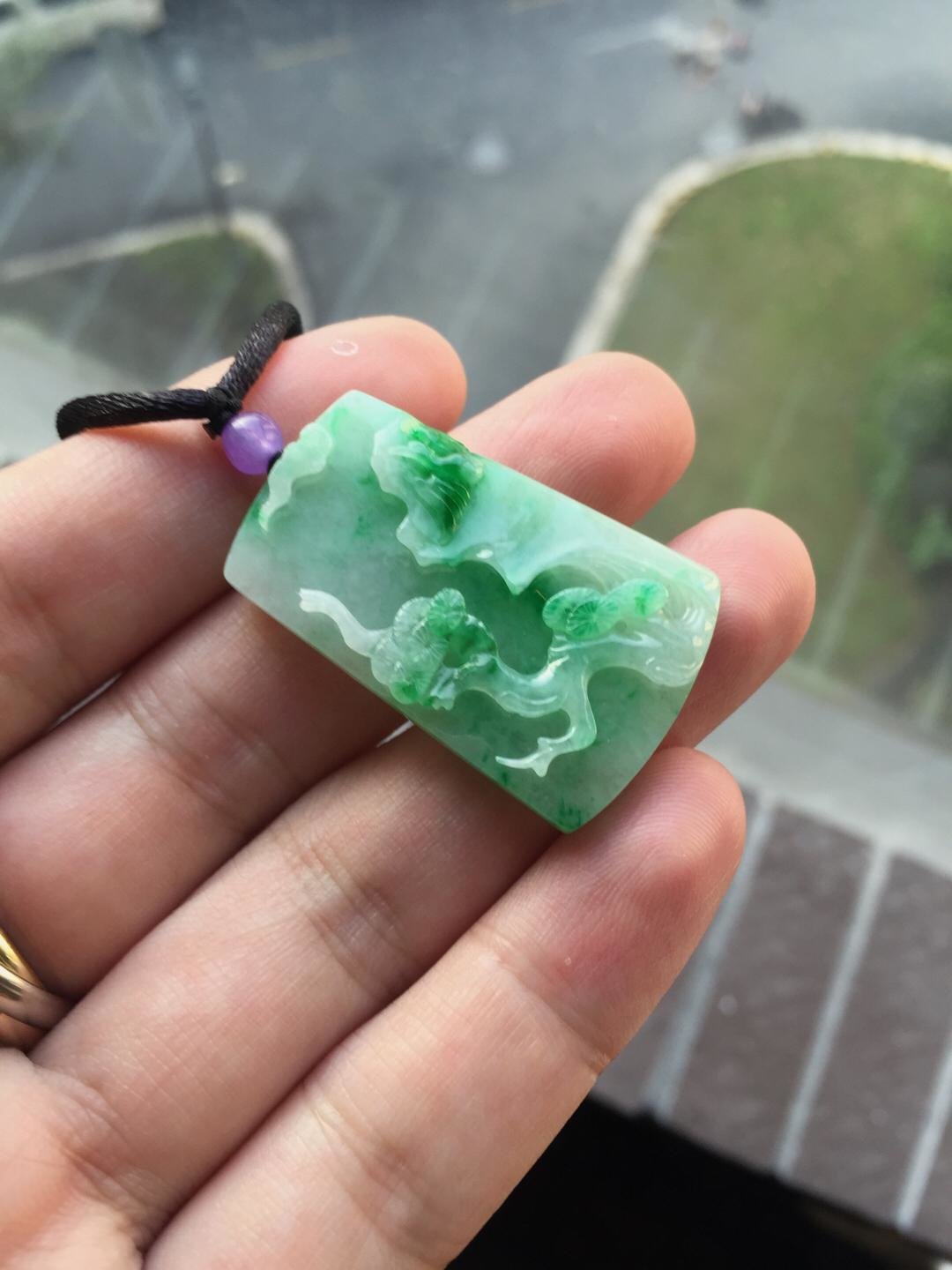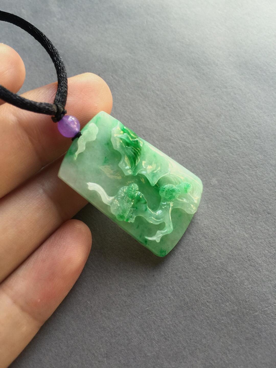 糯种阳绿白底青翡翠山水牌,35.6*23*5.7mm,尺寸饱满厚实,造型方正,纯手工精雕,立体饱满,工艺纯熟,底白肉细,阳绿高翠艳丽无比,非常漂亮的一块牌子,高雅,大方,精品推荐