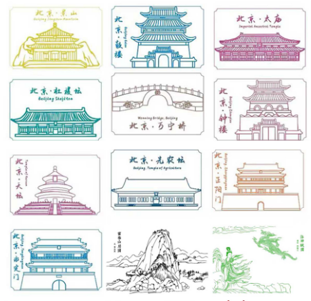 还有北京特色:景山、鼓楼、钟楼、太庙、社稷坛、万宁桥、天坛、永定门、正阳门、先农坛……