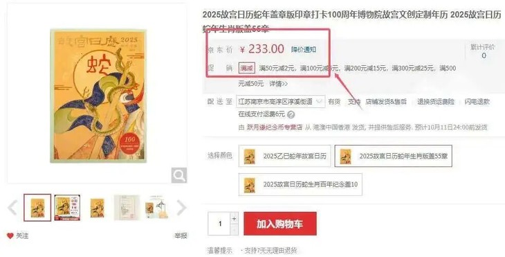 还没开始抢,代购业务就火热得很,原本定价126的故宫日历,盖章版卖到233多元,贵了100多。