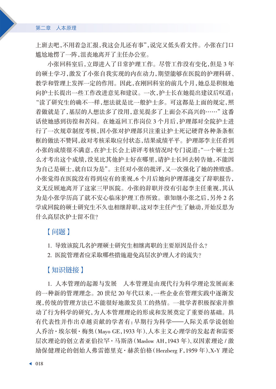 本书由刘华平、李红、蒋艳主编,在编写结构上,全书共分15个章节,贯穿主线的有:管理学的四大原理,如系统原理、人本原理、动态原理和效益原理;护理管理的五项基本职能,如护理计划、护理组织管理、护理领导、护理人力资源管理、护理控制等;当前我国护理的难点和热点问题,如护理岗位管理、护理绩效管理、护理文化管理、护理危机管理、护理信息管理以及护理创新管理等。邀请了国内具有丰富临床管理经验的护理专家,引用管理实际案例,提出管理问题,借由相关管理的知识链接,对管理问题进行分析和解读,并分享和传承管理经验。 读者对象:各级各类医院护理部主任、护理院长、护士长,从事护理管理工作的从业人员,本书同时也是医院各级护理管理人员的管理指南用书,还可作为高等学校护理管理教学使用的参考书。