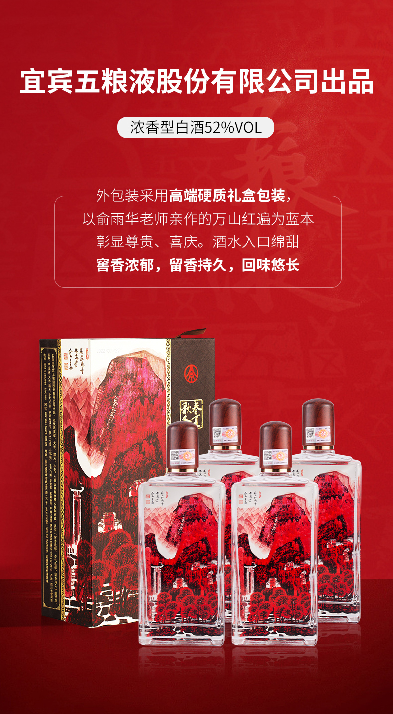 春夏秋冬万山红遍礼盒酒 五粮液股份出品 52度500ml*4瓶