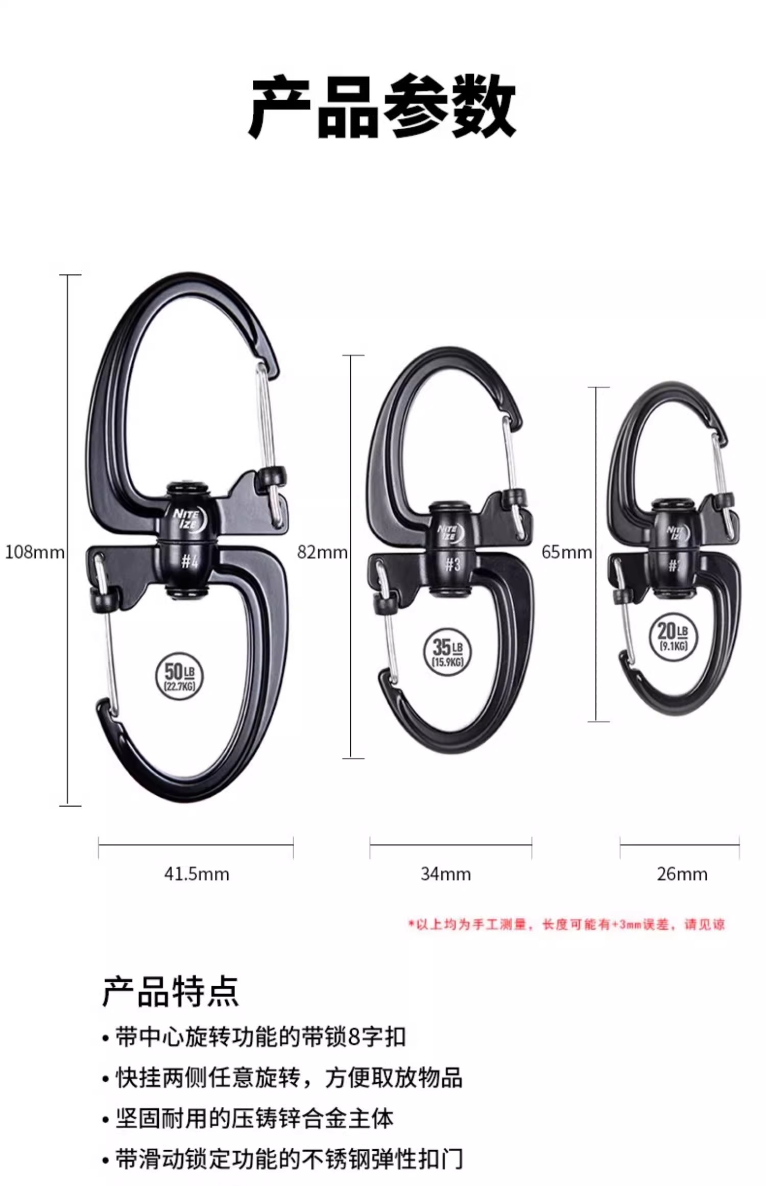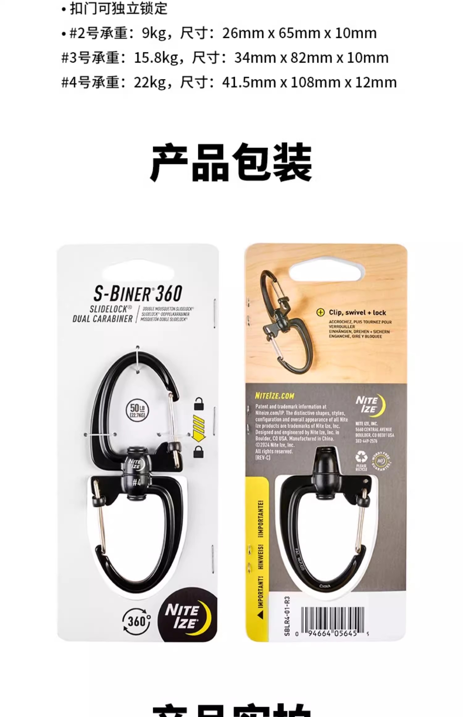 美国NiteIze奈爱不锈钢旋转8字扣登山扣多功能快挂钥匙卡扣