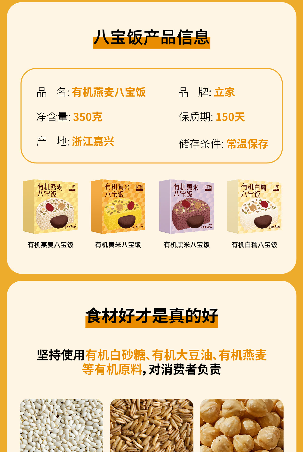 立家 有机燕麦八宝饭 350g/盒 全国配送(偏远地区除外)