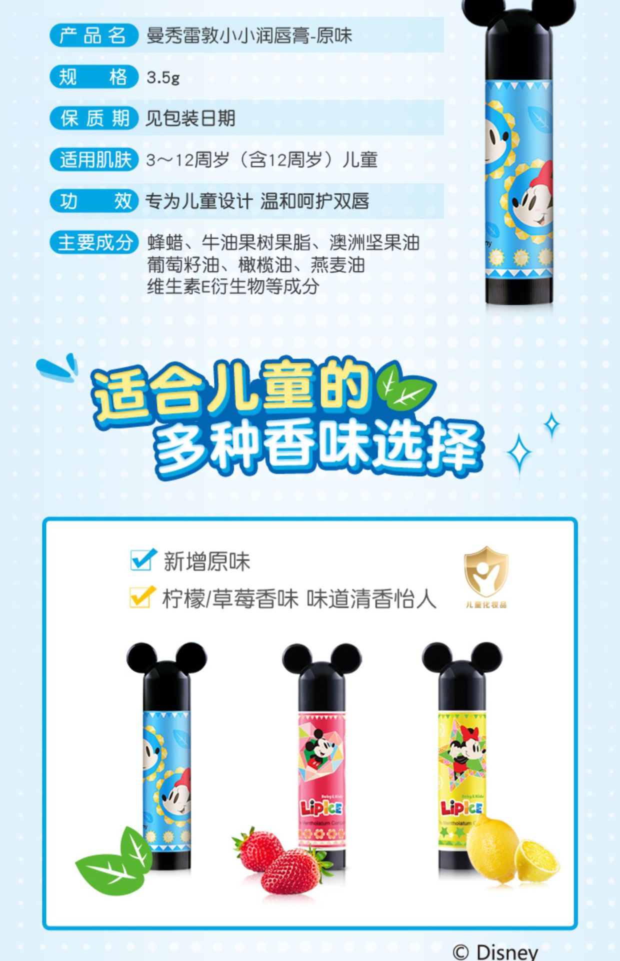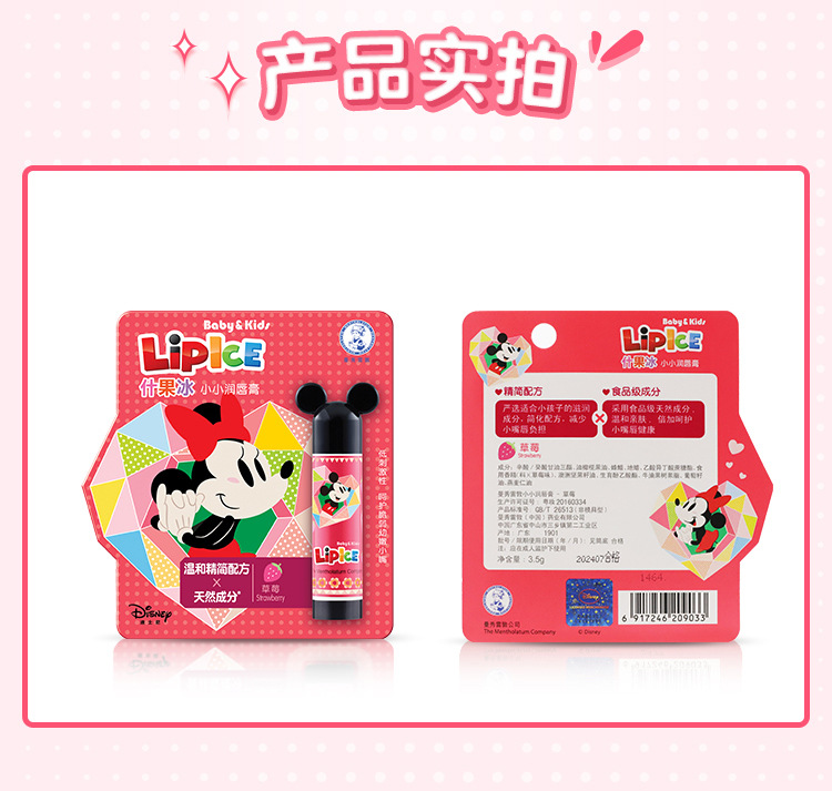 曼秀雷敦什果冰小小润唇膏保湿滋润补水护唇无色天然水果味儿童润唇膏3.5g