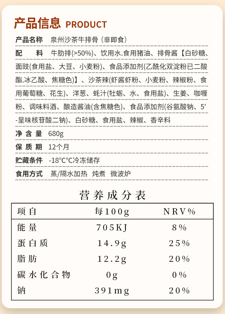 功牛红烧牛肋排 懒人预制菜 680克