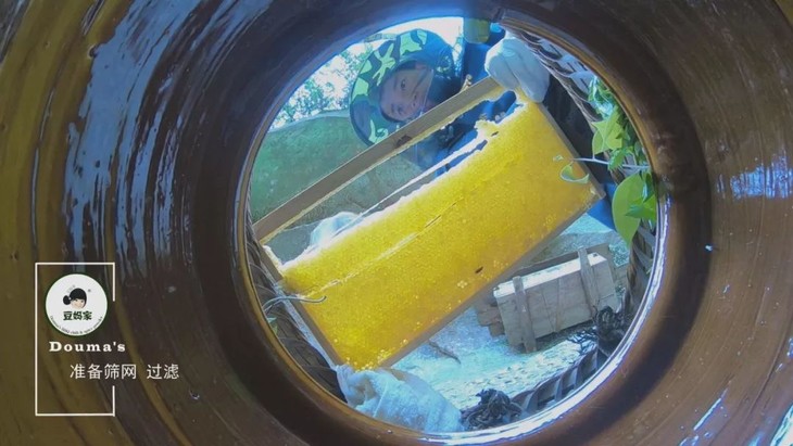 岩峰蜜的历史说来话长,所以就不说了,总之村里的人,从小一辈起就跟随着老一辈,常年行走在山中,酿得这与众不同的岩蜜。