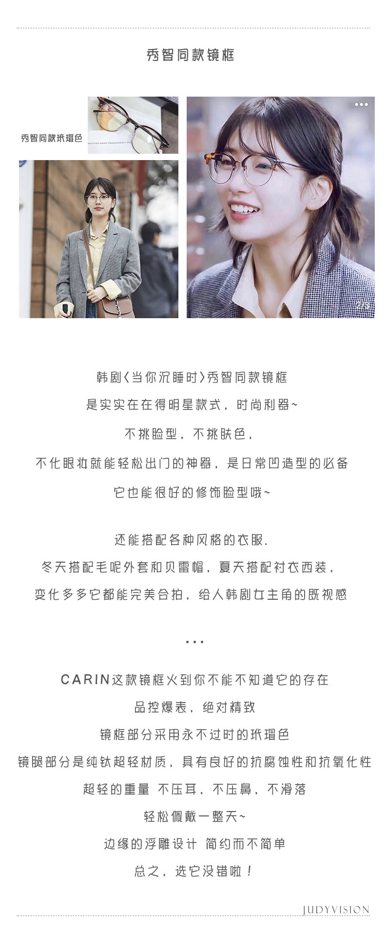𝐂𝐀𝐑𝐈𝐍秀智同款眉毛框(纯钛超轻)框架眼镜