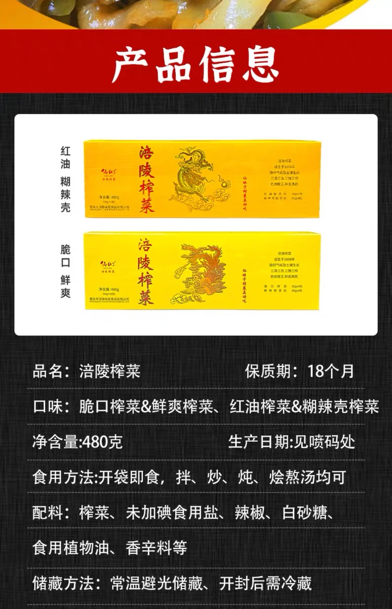 重庆特产 涪陵榨菜 480g盒装 崔口咸爽 红油糊辣壳 榨菜丝 下饭菜