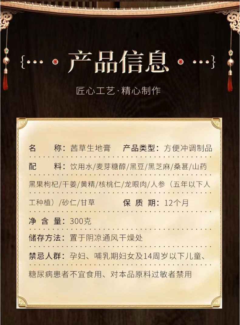 茜草生地膏乌发膏古法熬制 传统膏滋 传承古法八道工艺