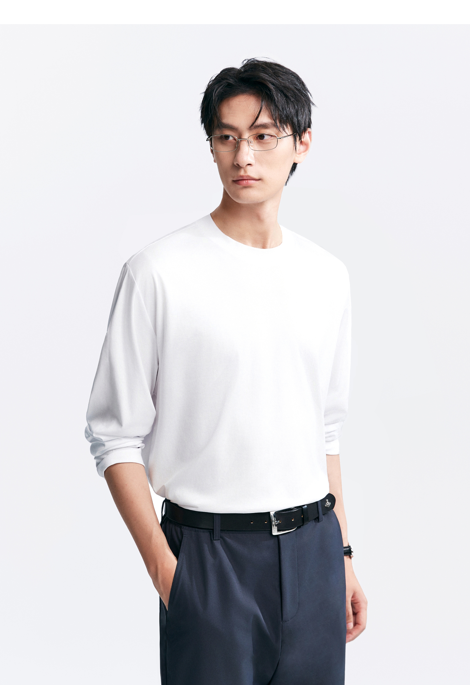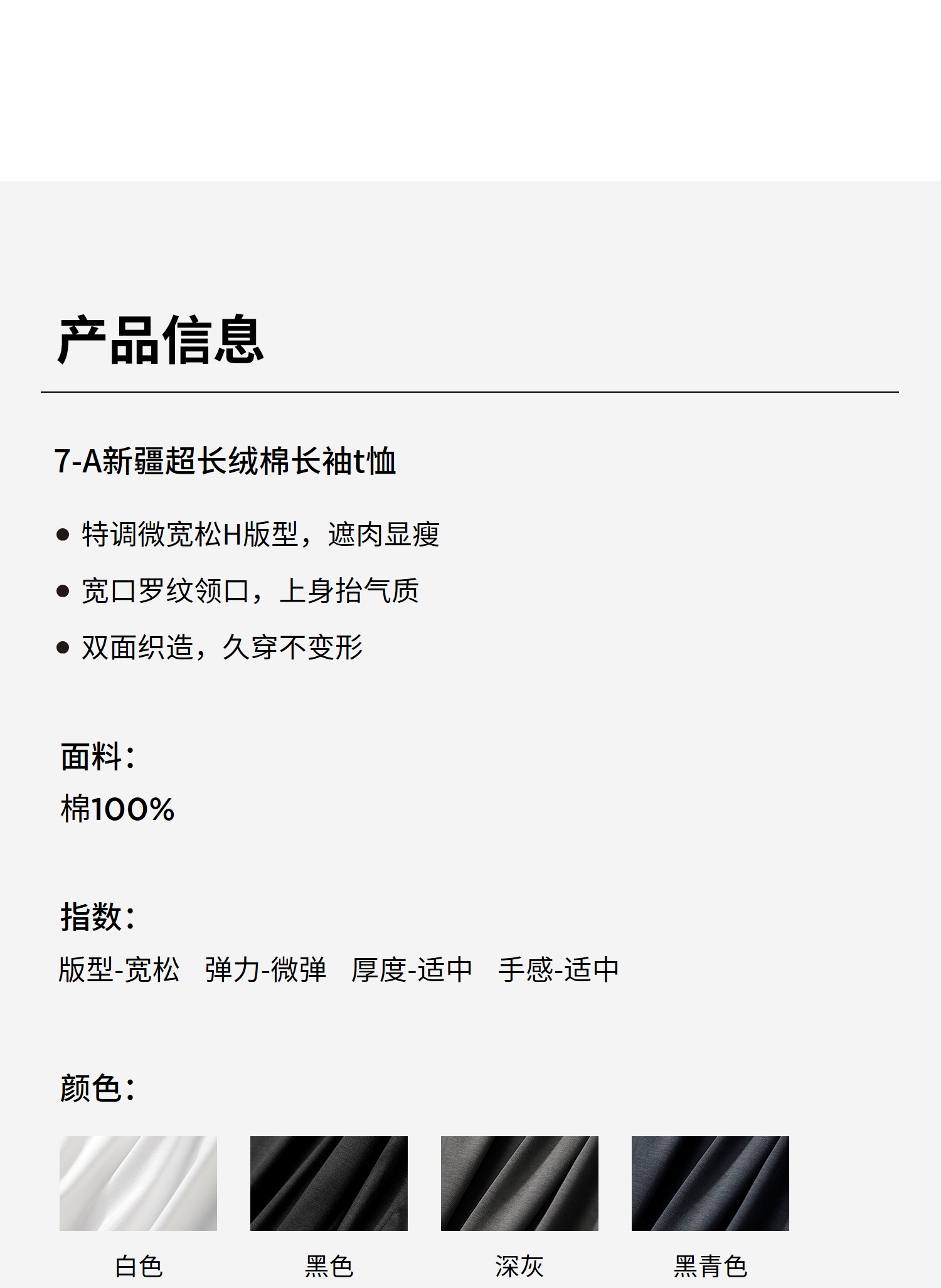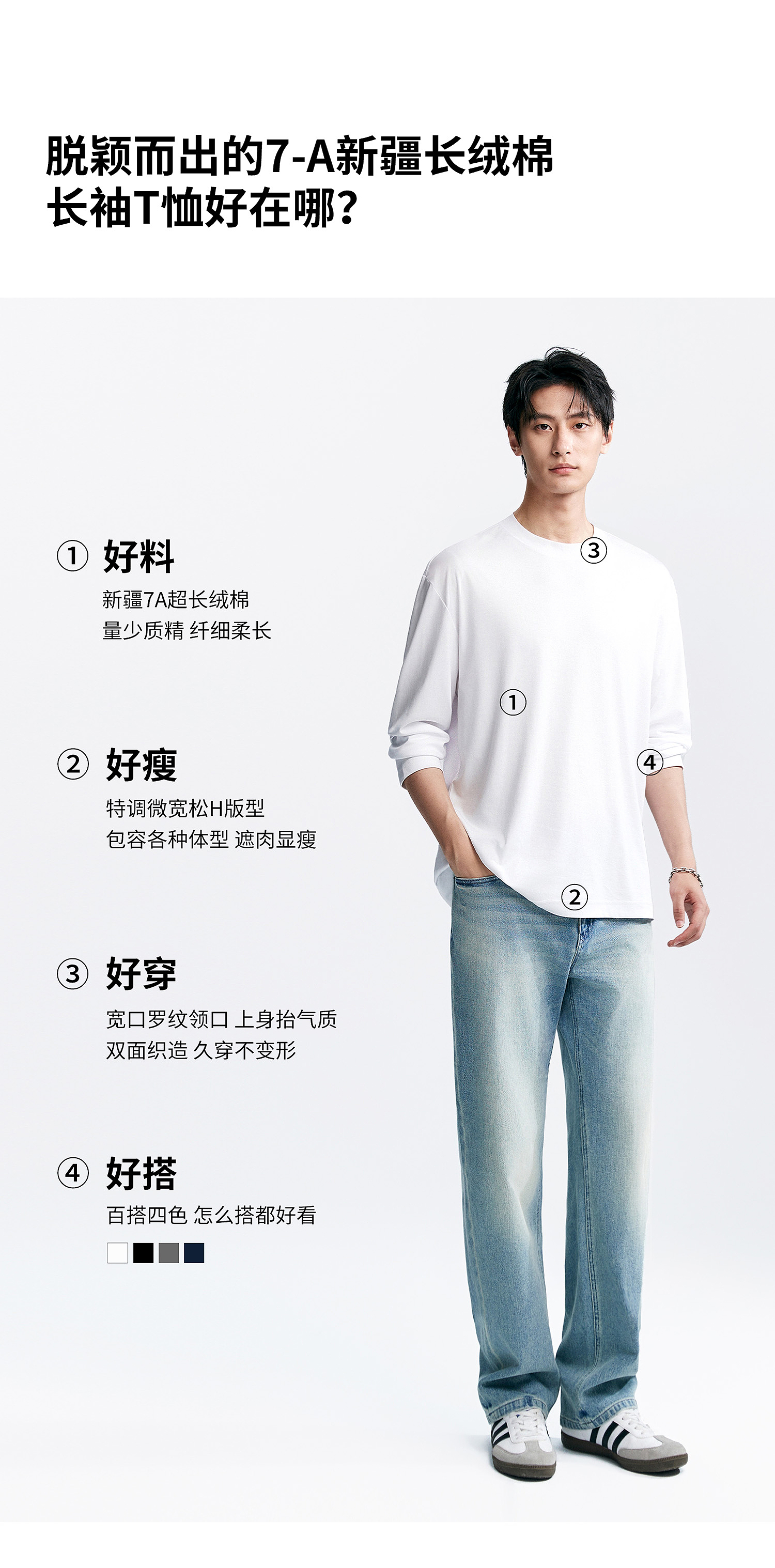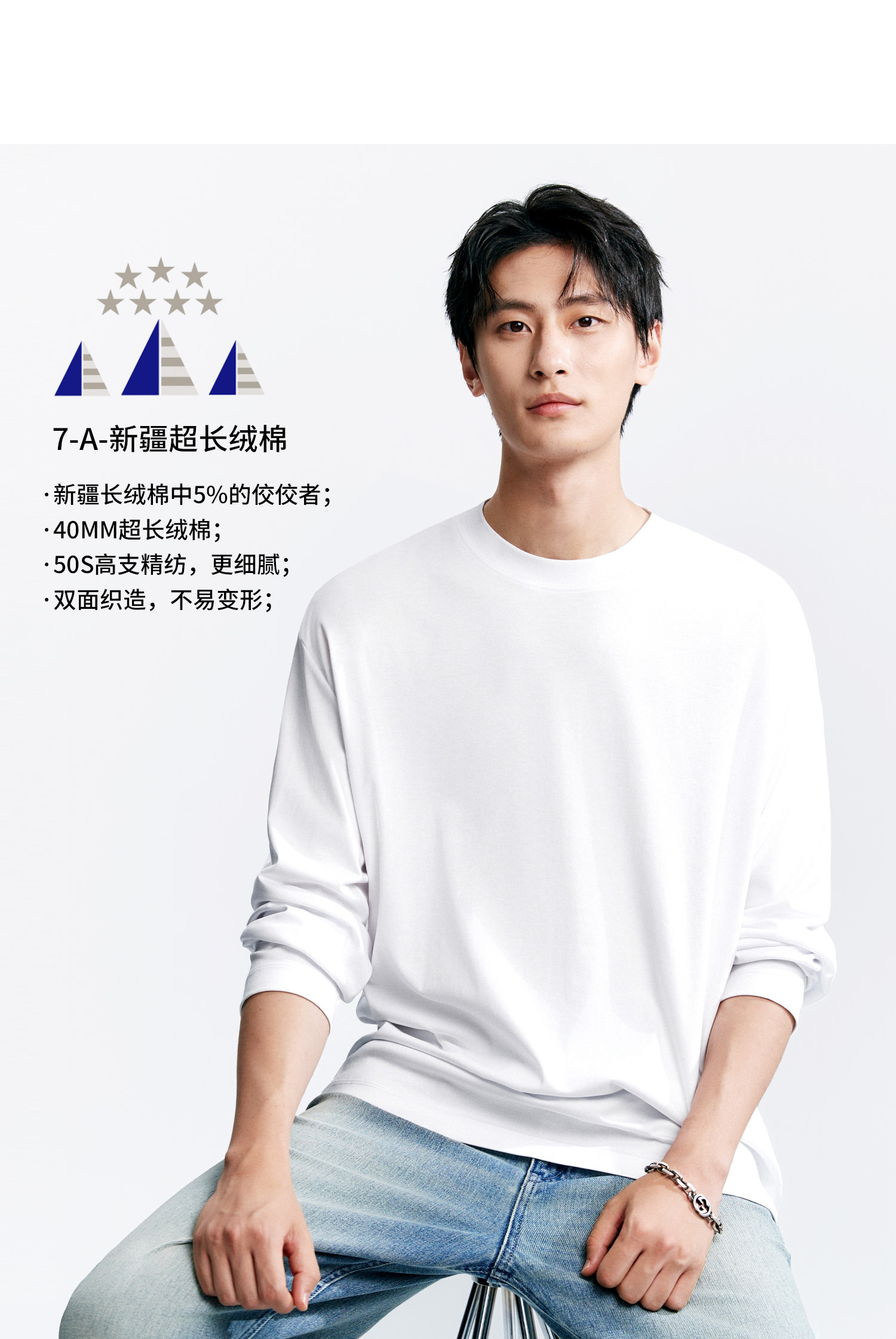 棉仓346801005-5系7A新疆超长绒棉长袖纯棉t恤男 秋季精纺内搭白色打底衫