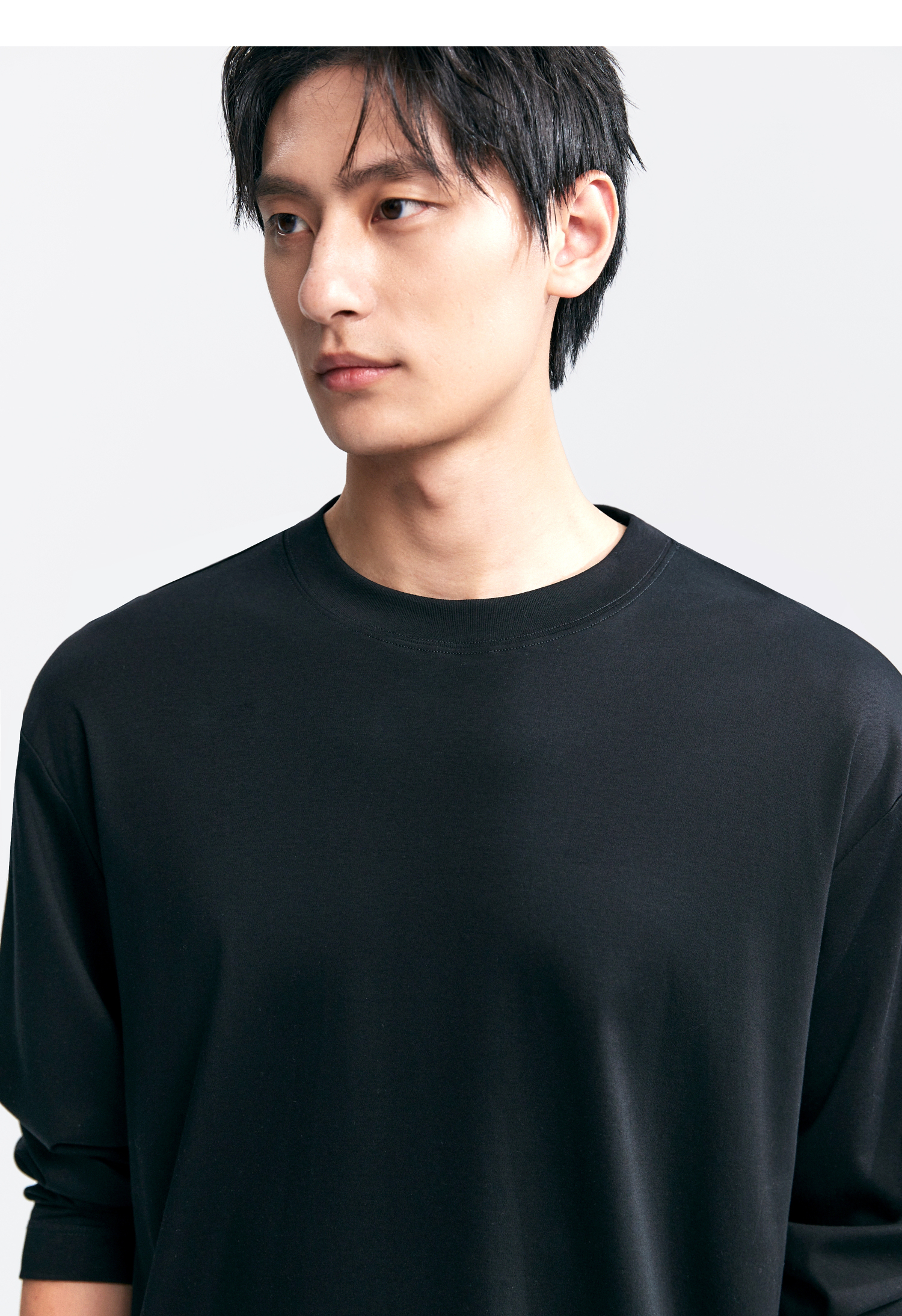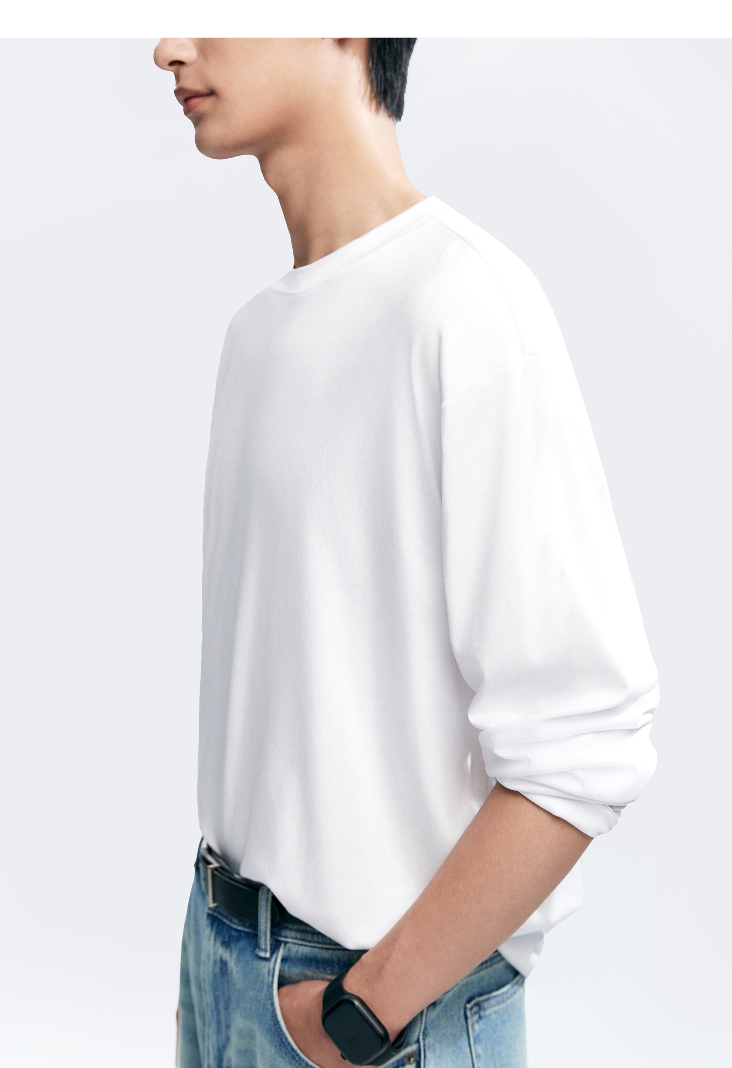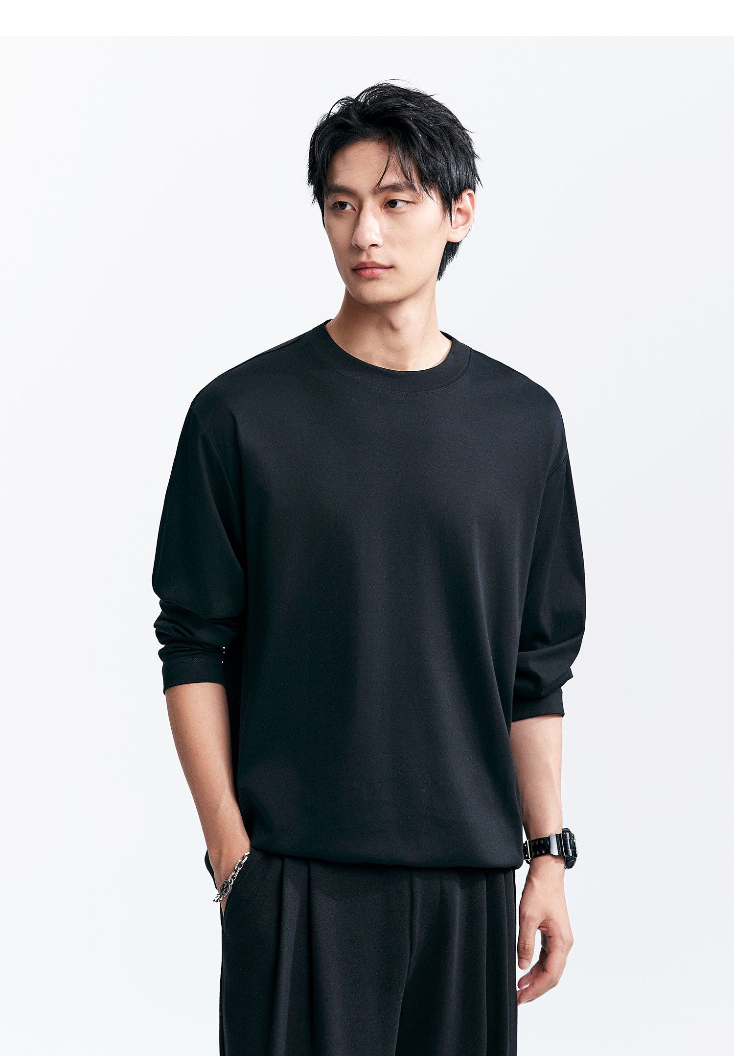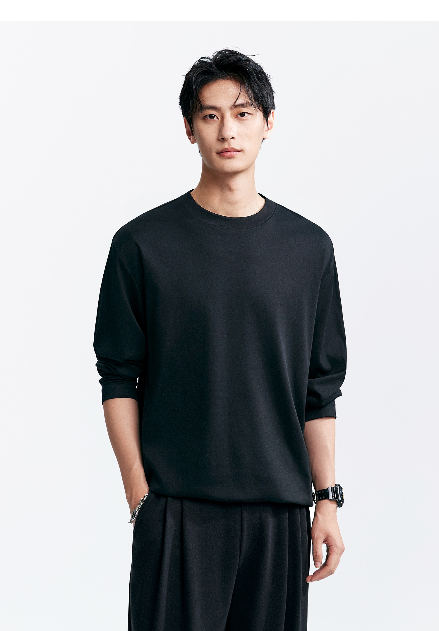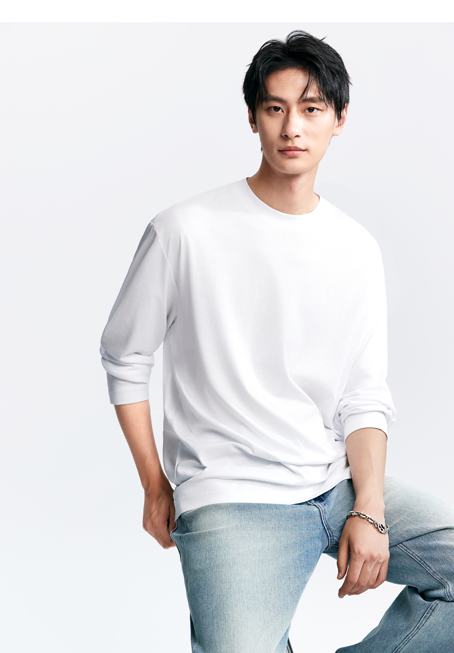 棉仓346801005-5系7A新疆超长绒棉长袖纯棉t恤男 秋季精纺内搭白色打底衫