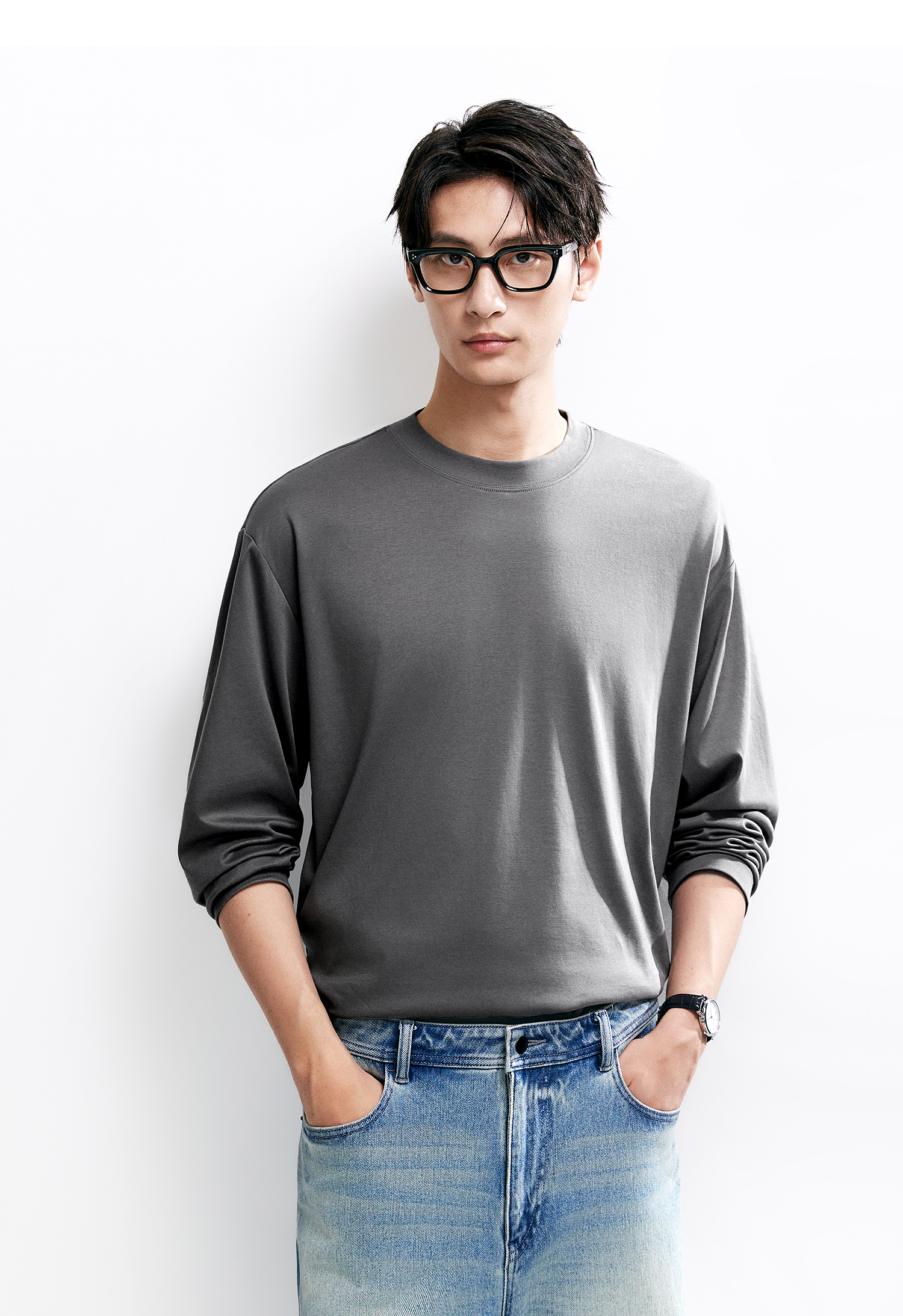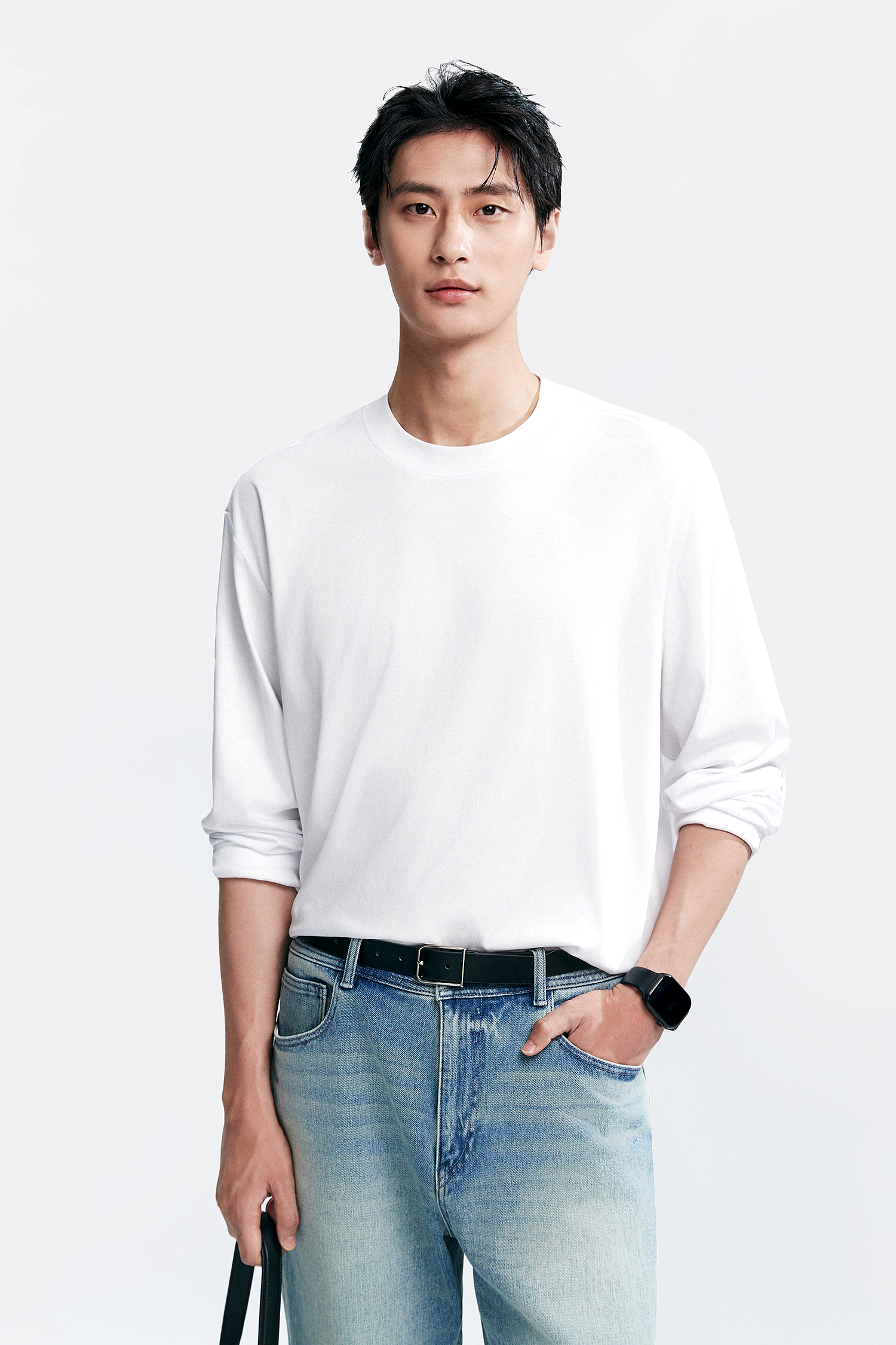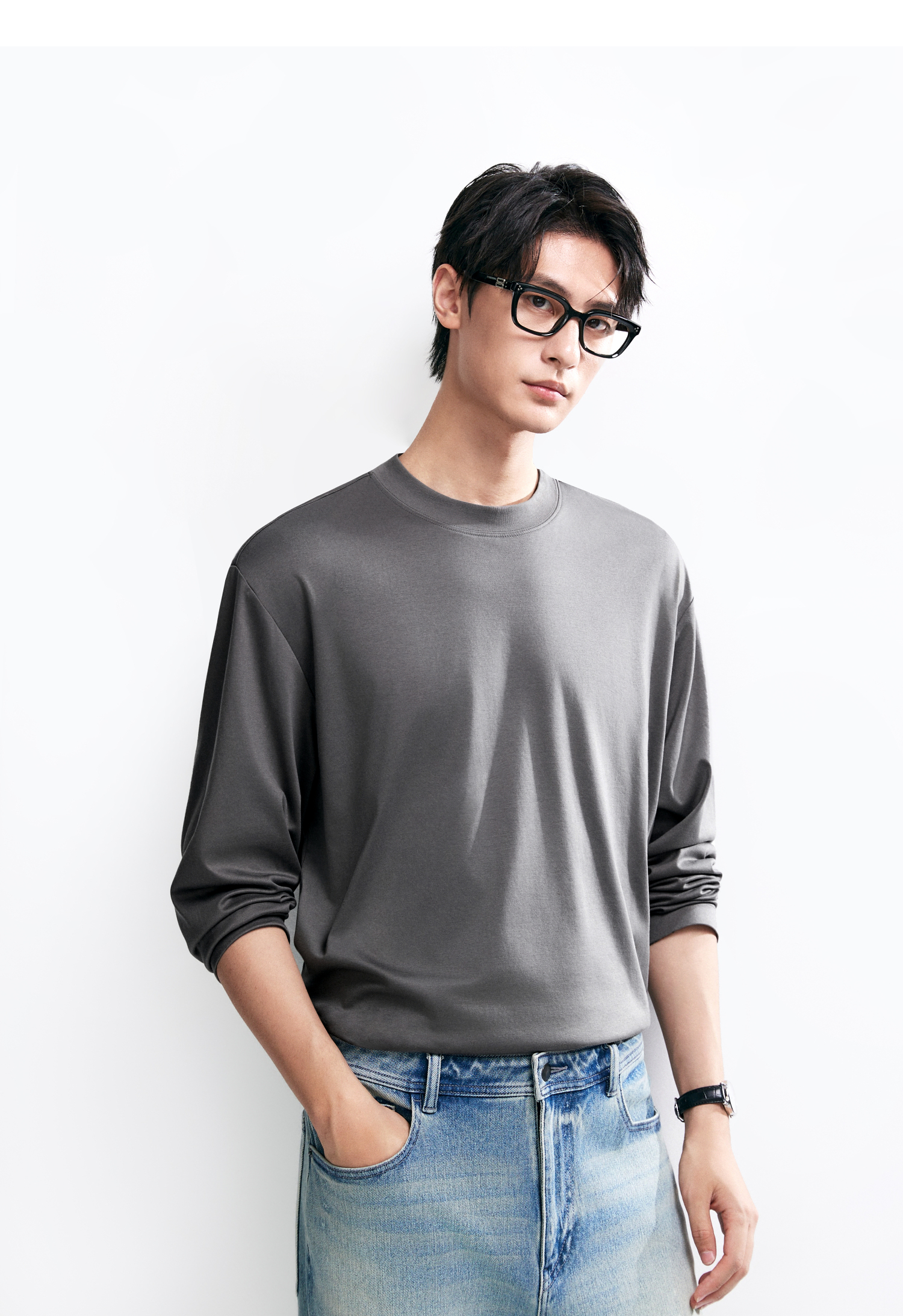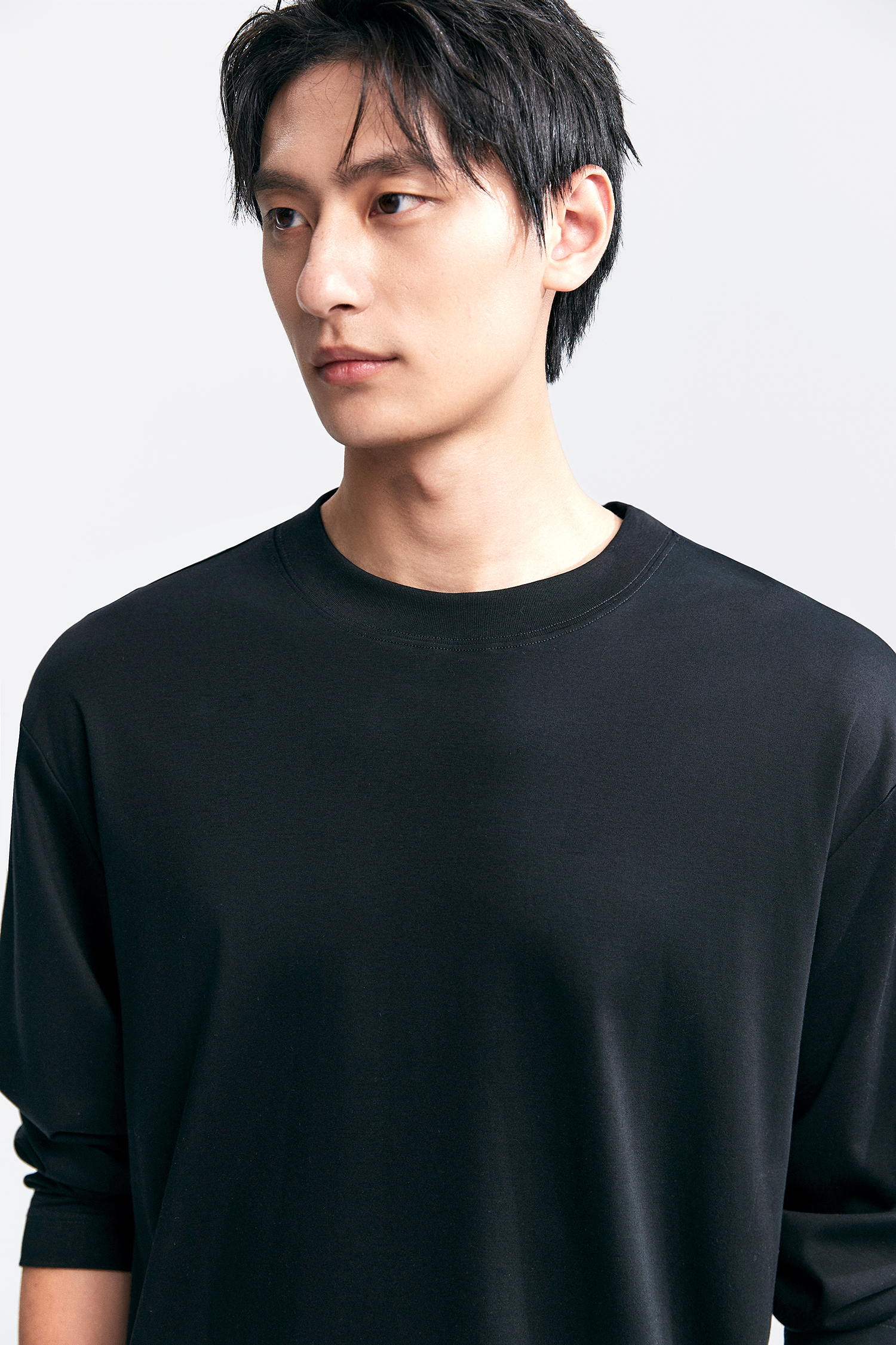 棉仓346801005-5系7A新疆超长绒棉长袖纯棉t恤男 秋季精纺内搭白色打底衫