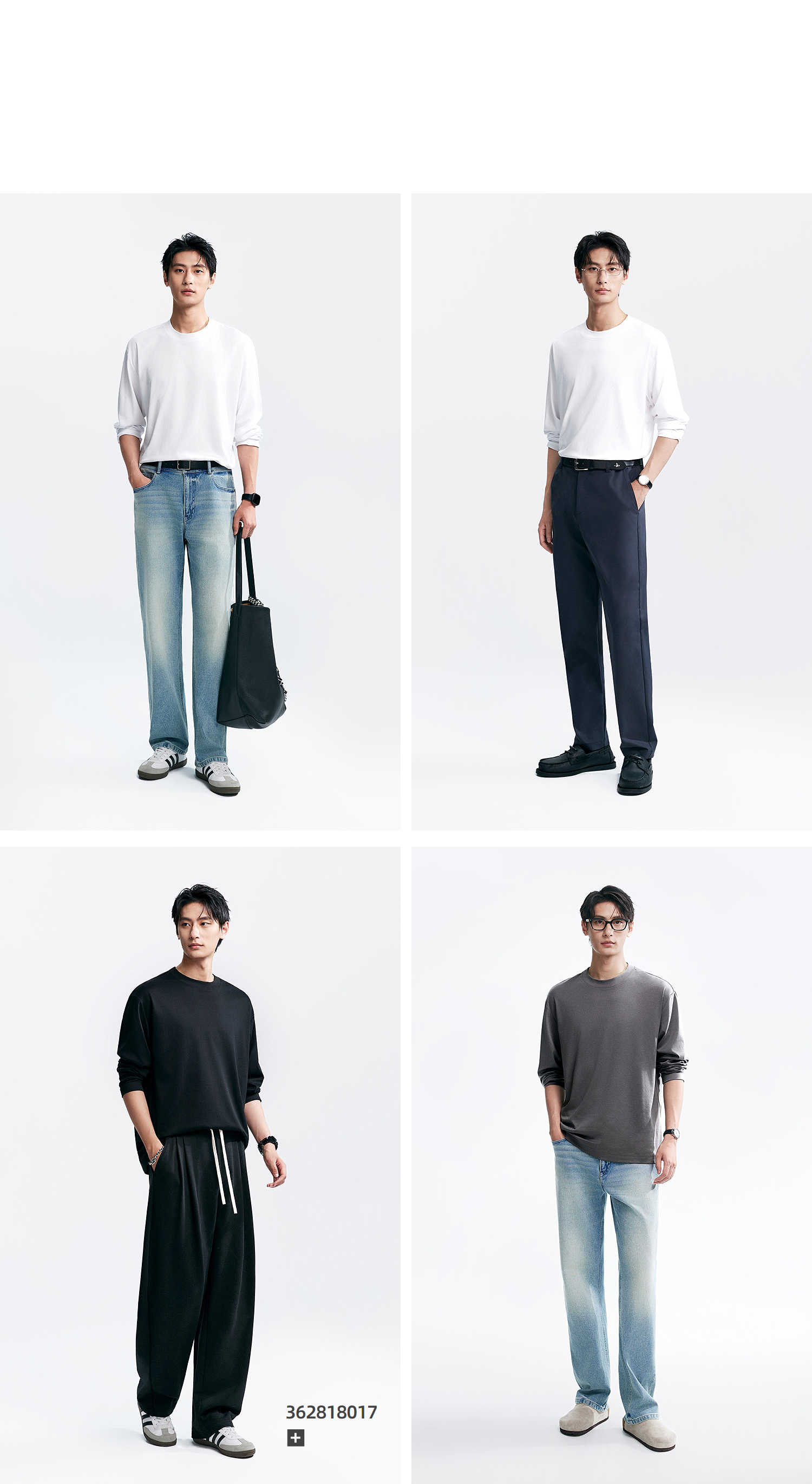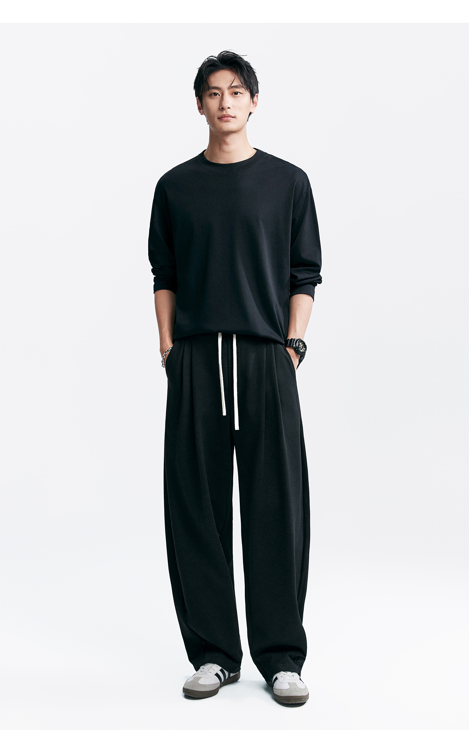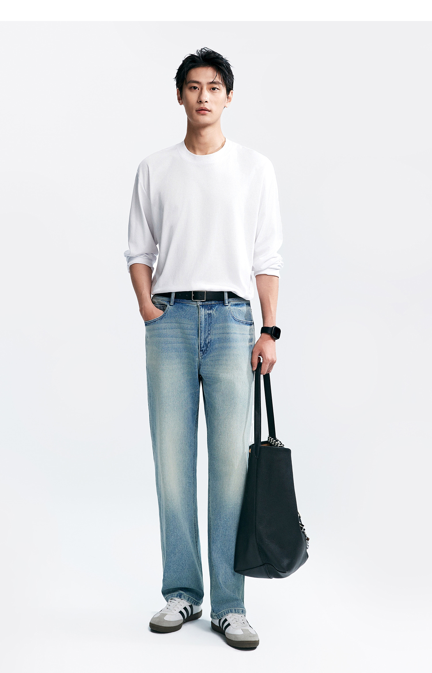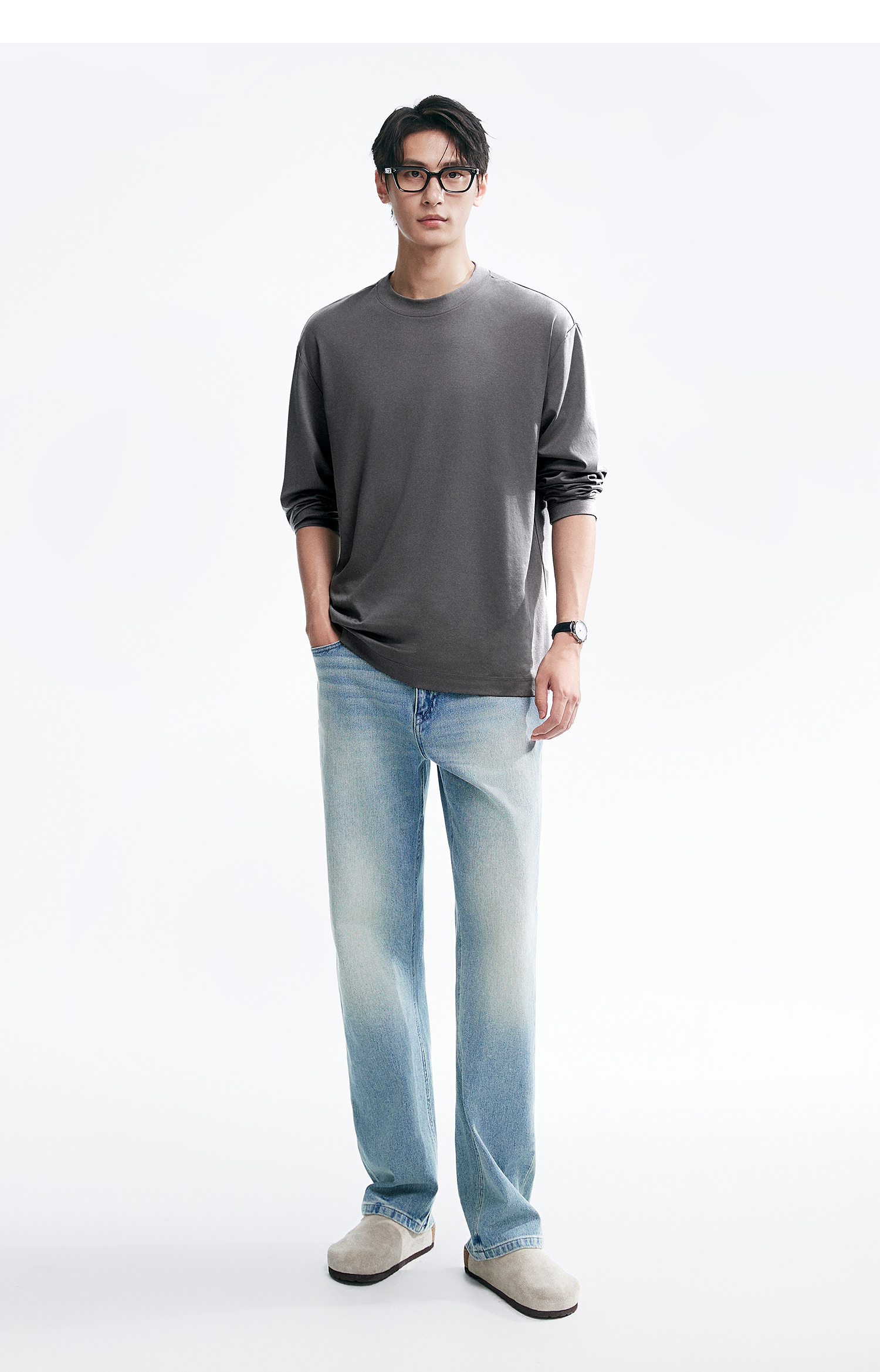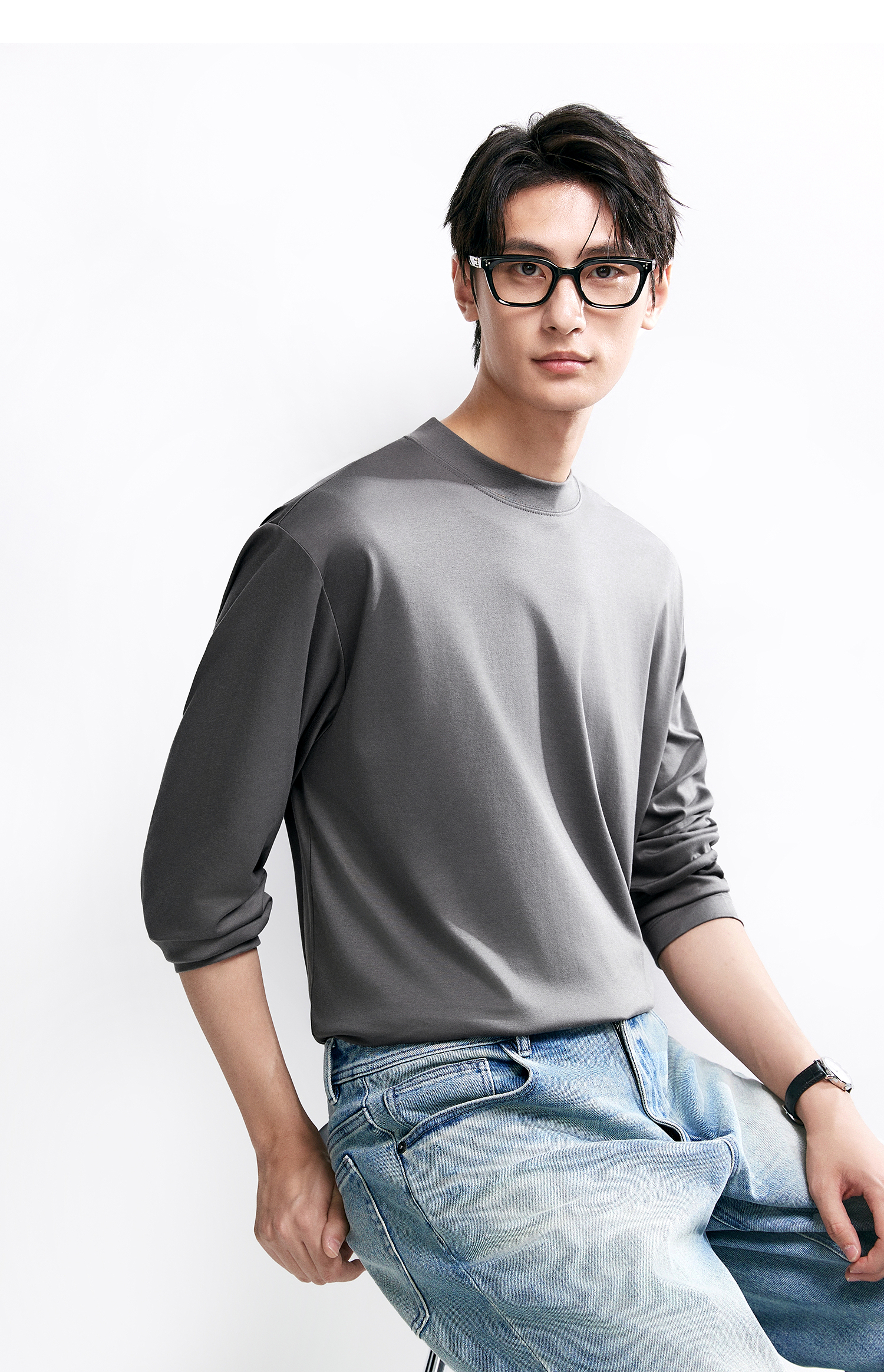 棉仓346801005-5系7A新疆超长绒棉长袖纯棉t恤男 秋季精纺内搭白色打底衫