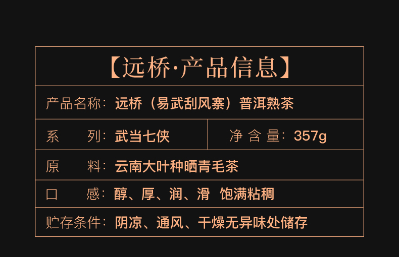 茶马世家10年陈易武刮风寨普洱茶 远桥熟茶357g