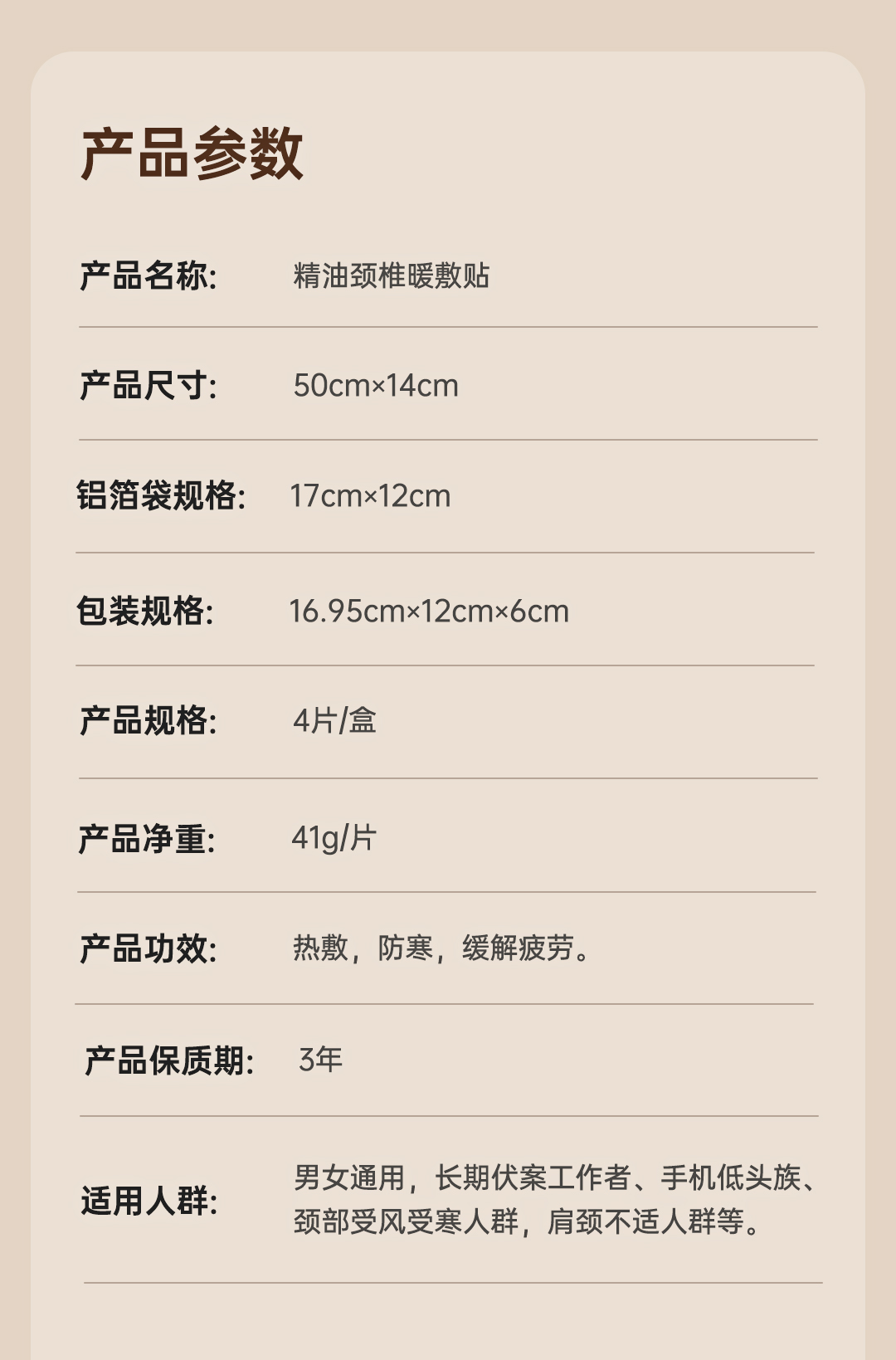 【精油颈椎暖敷贴(4贴/盒+5mL精油)】4h草本内芯+植物精油热敷,还你舒适颈椎