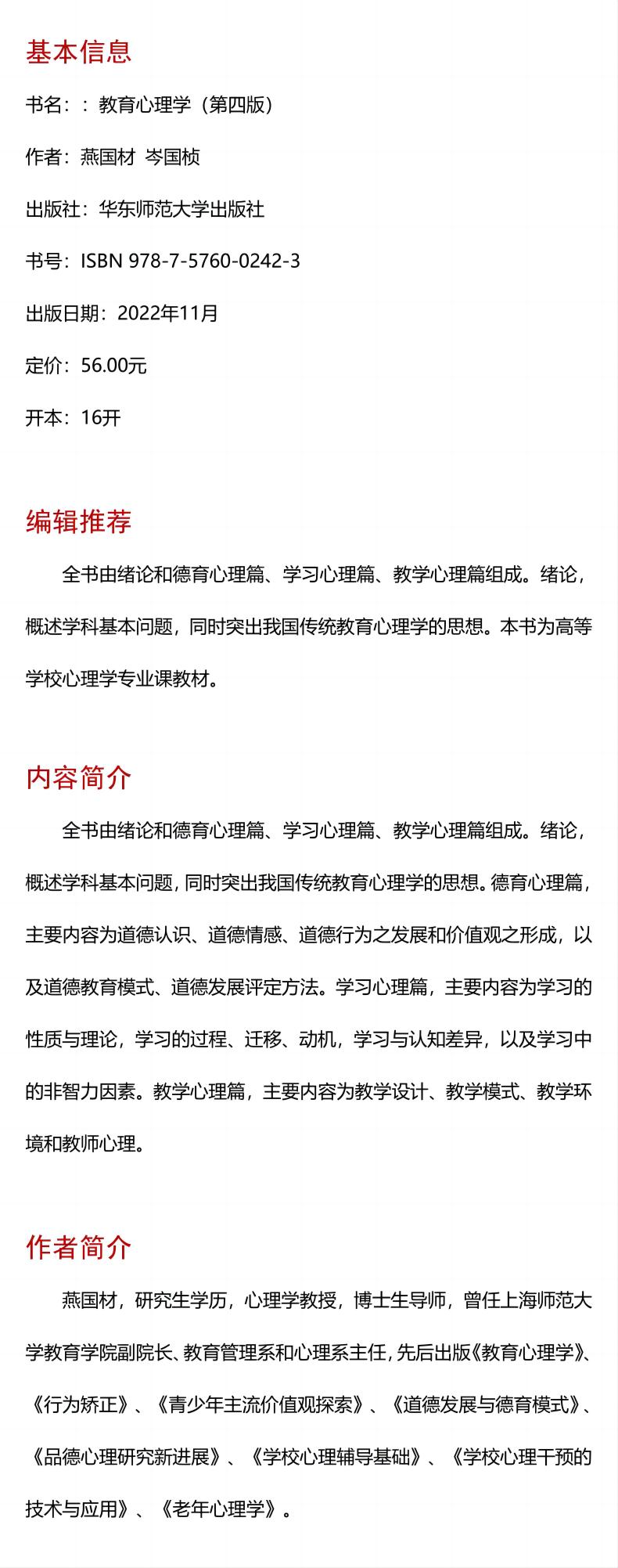 教育心理学 第四版 高等学校心理学专业课教材 燕国材 岑国桢