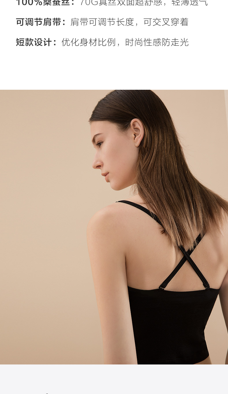 金三塔新品真丝纯色薄款吊带衫女100%桑蚕丝打底上衣 NZF9B701