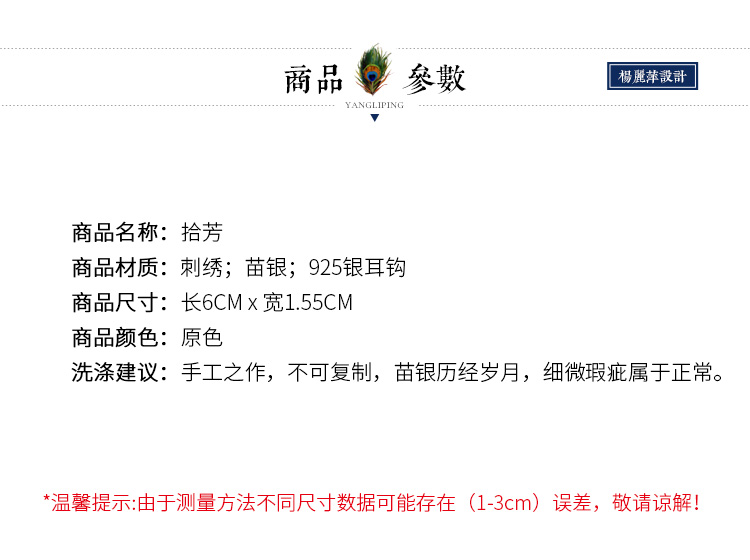 拾芳刺绣苗银耳环 / 绣片随机 / 现货