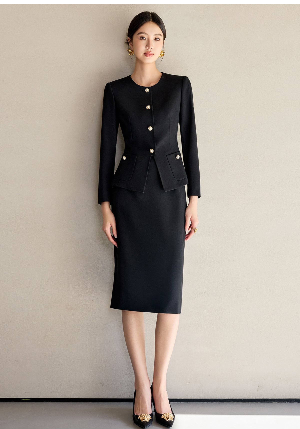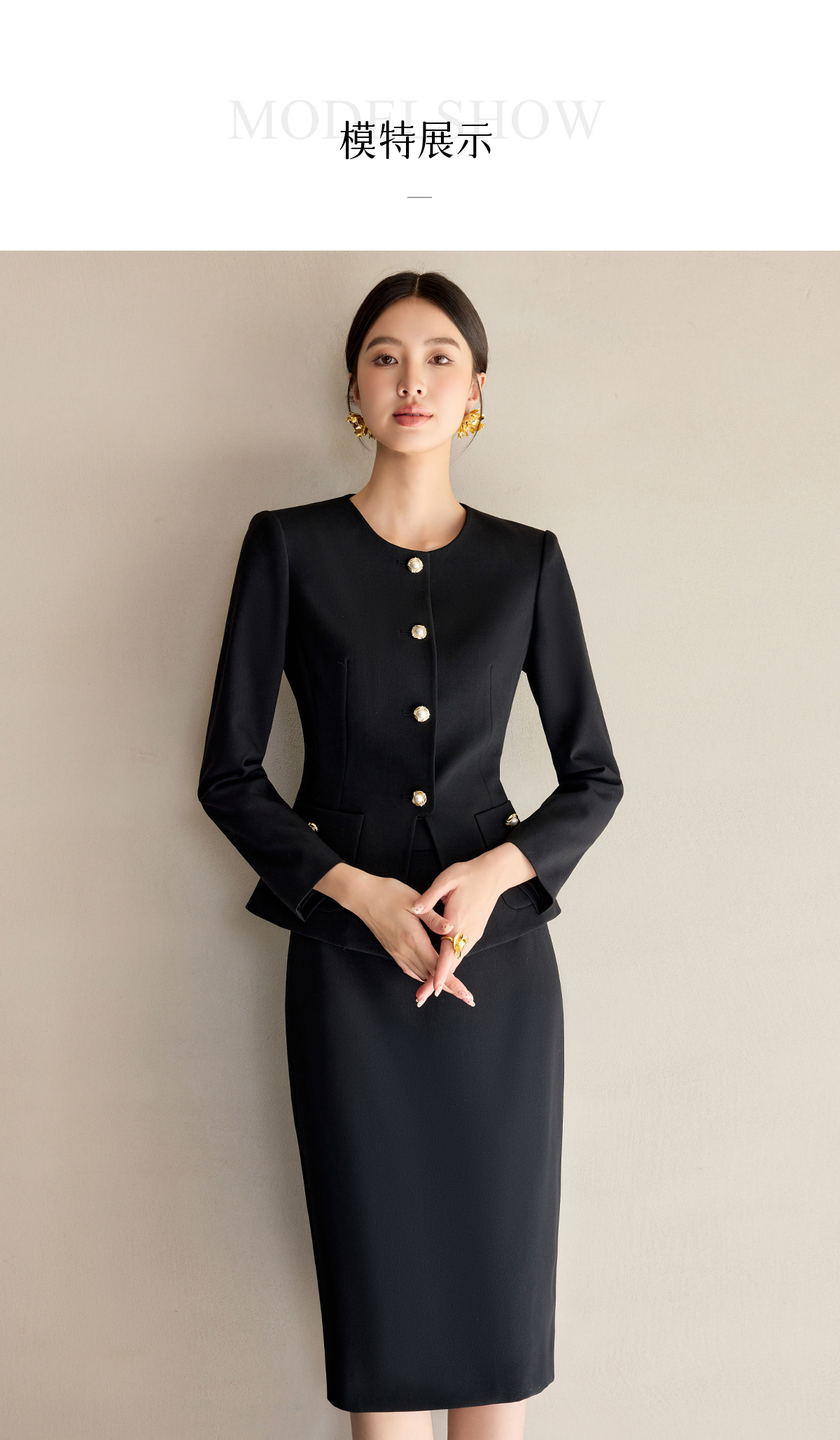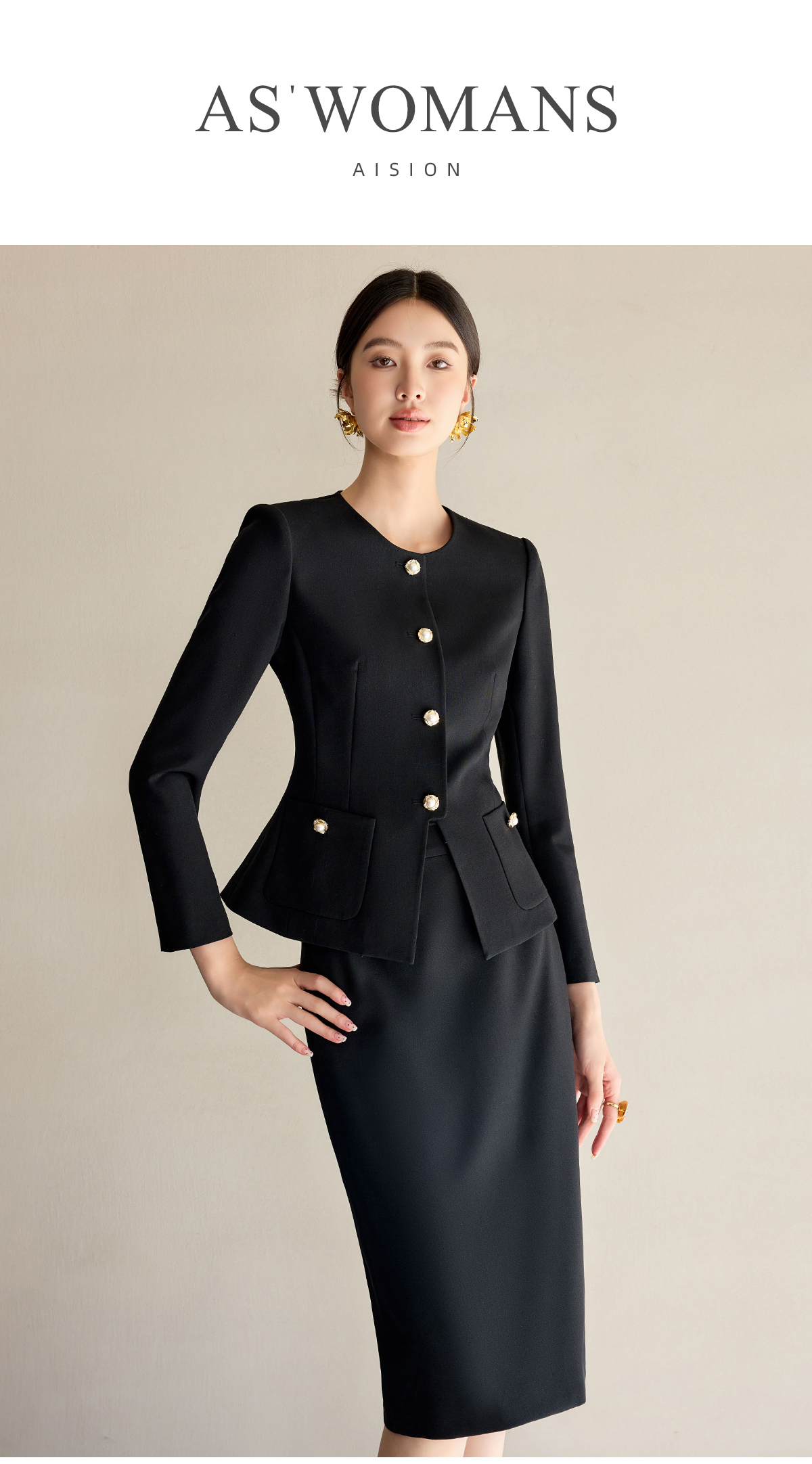 艾尚臣法式黑色小香风套装裙女新款气质名媛高端外套半身裙两件套