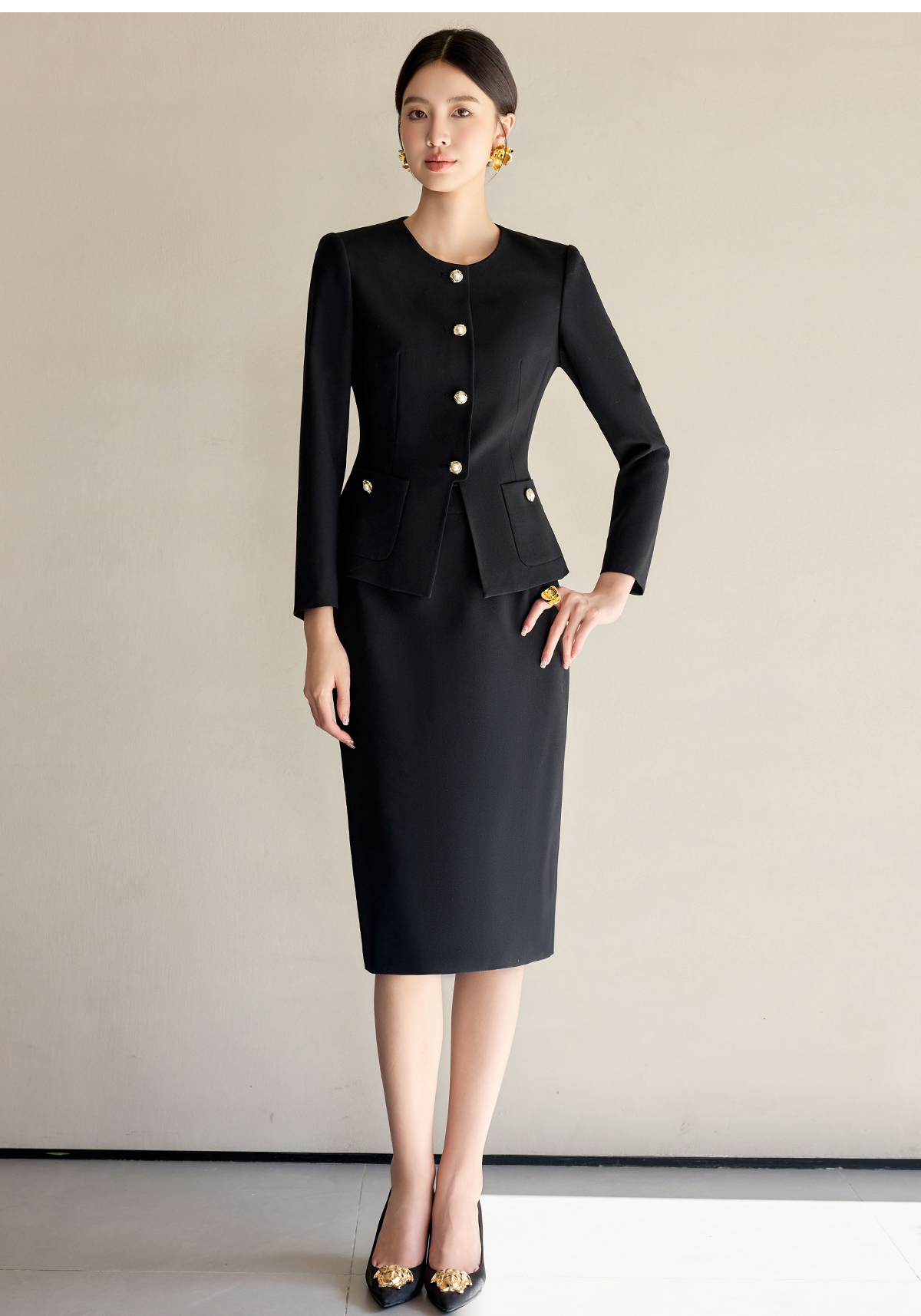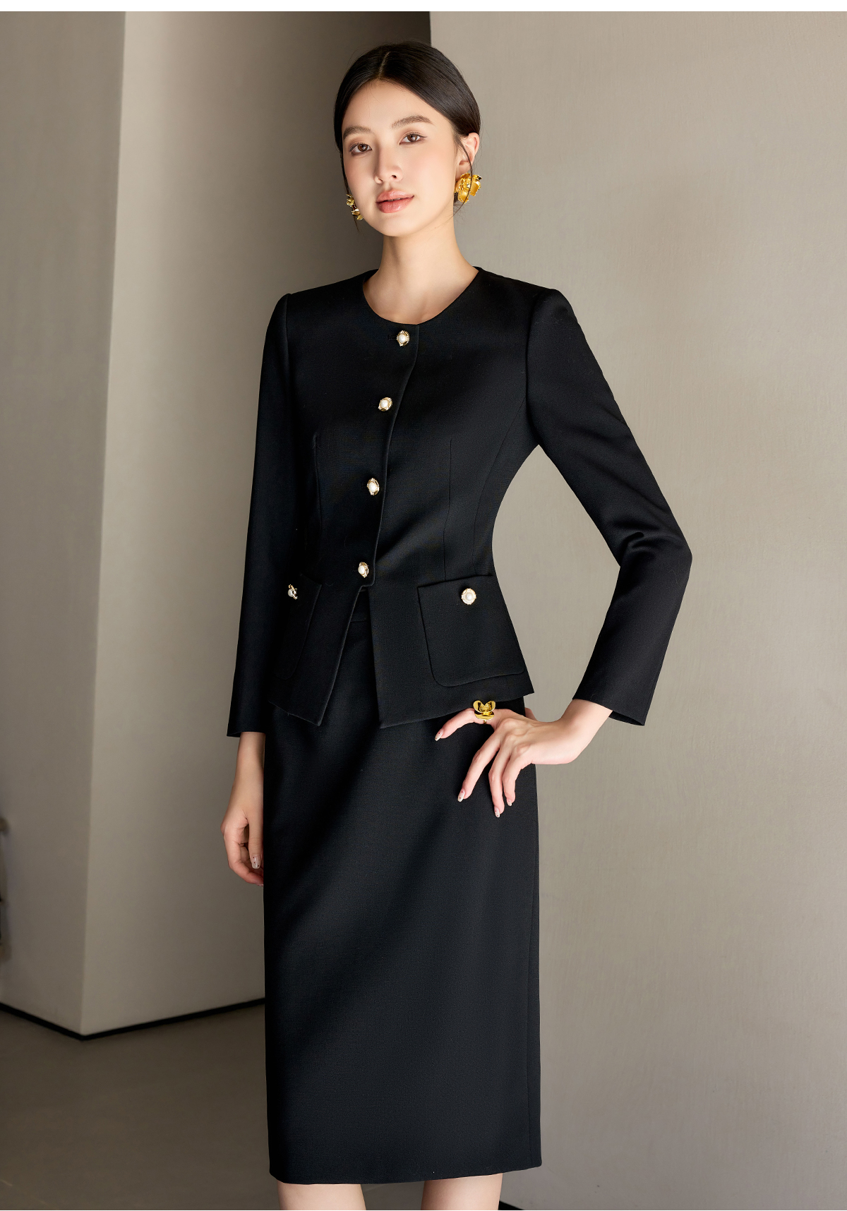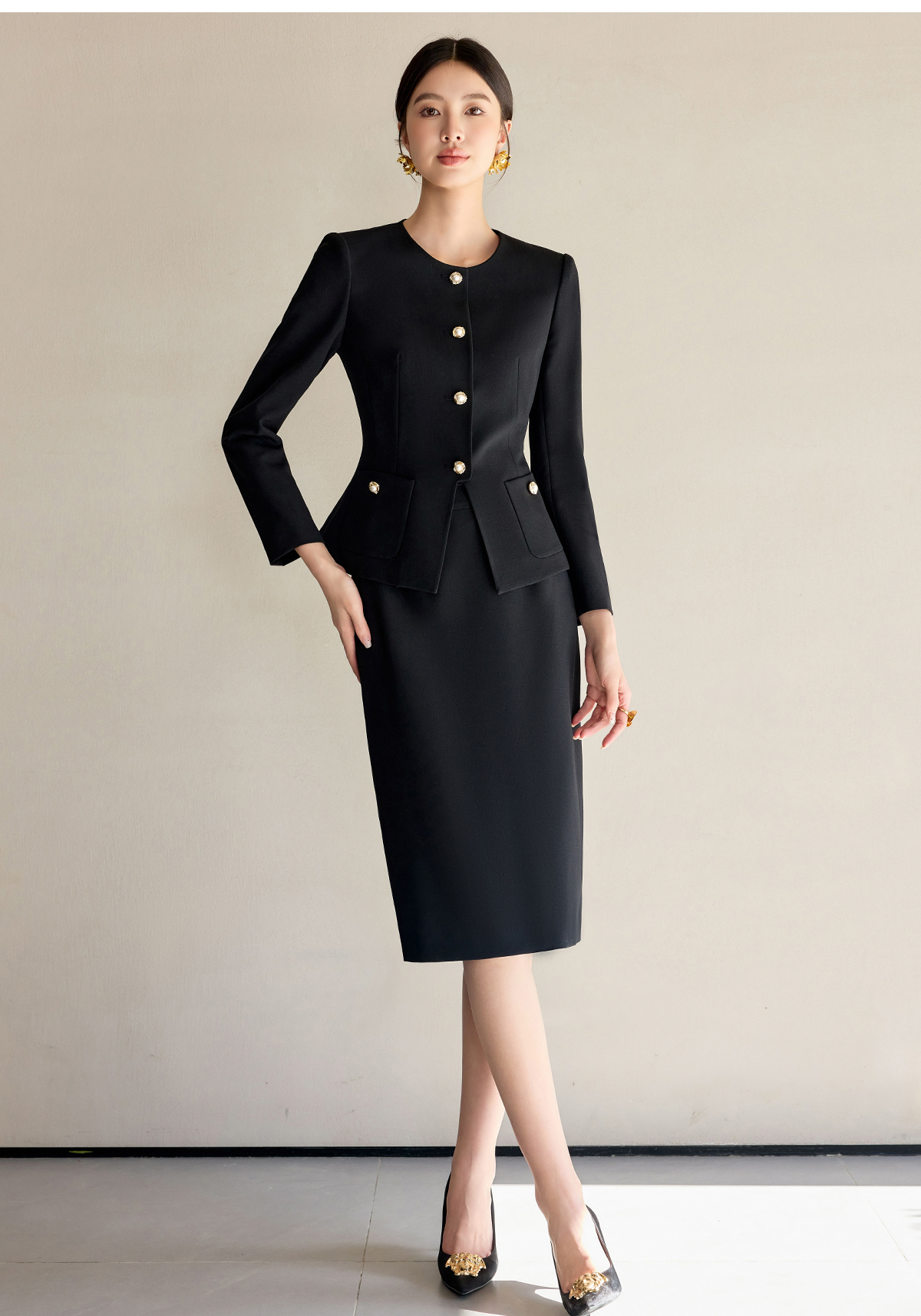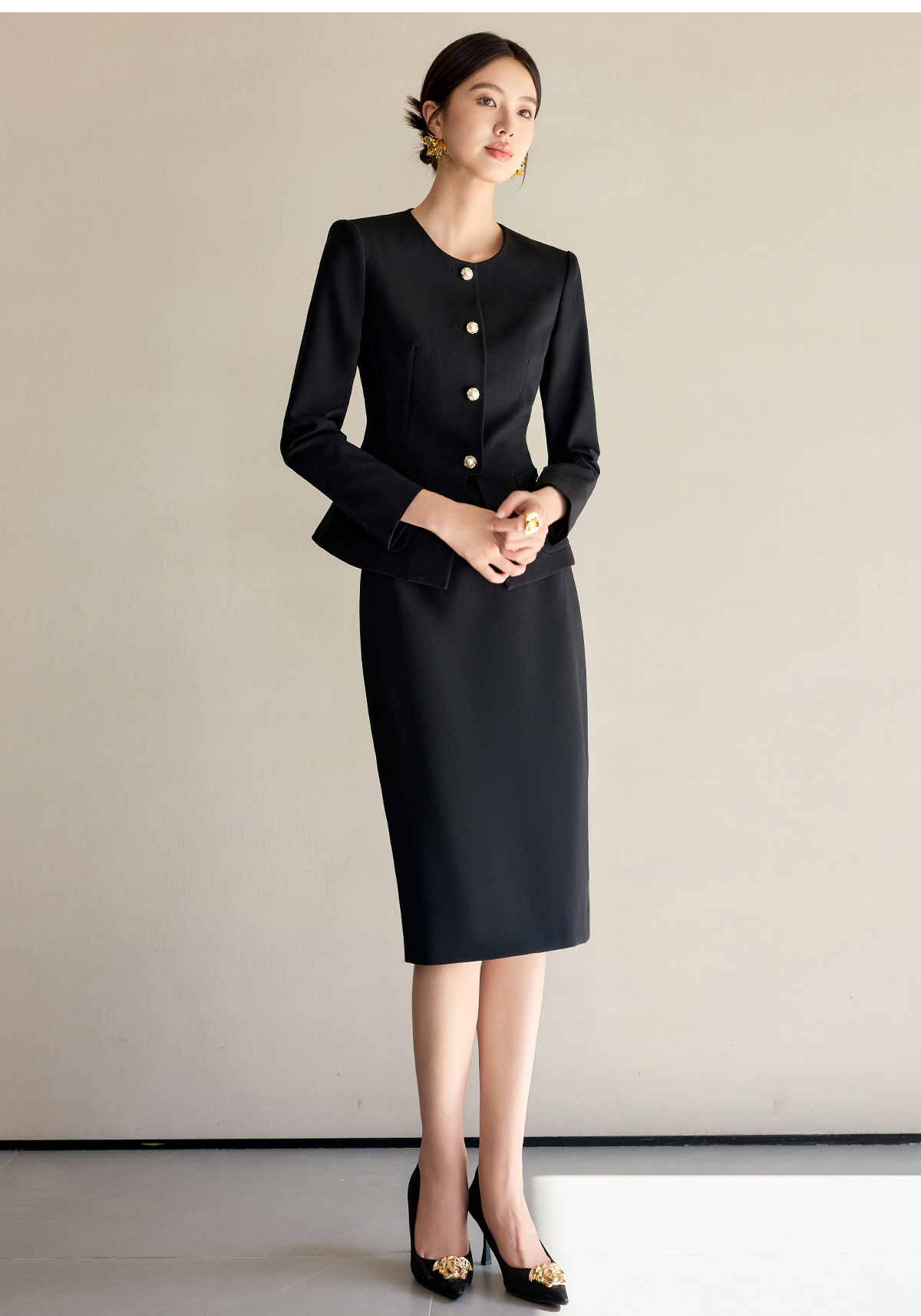 艾尚臣法式黑色小香风套装裙女新款气质名媛高端外套半身裙两件套