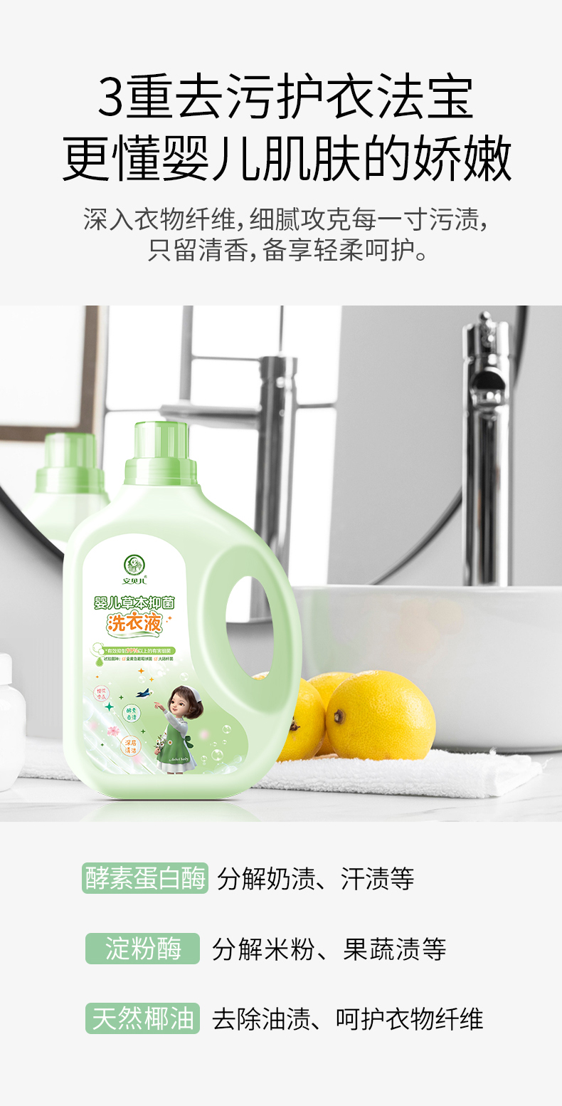安贝儿洗衣组合婴儿柔护洗衣液去渍天然内衣清洗果蔬清洗
