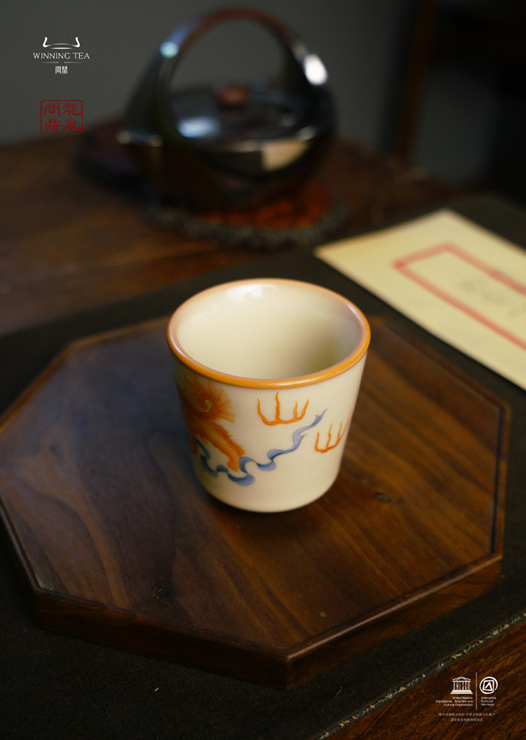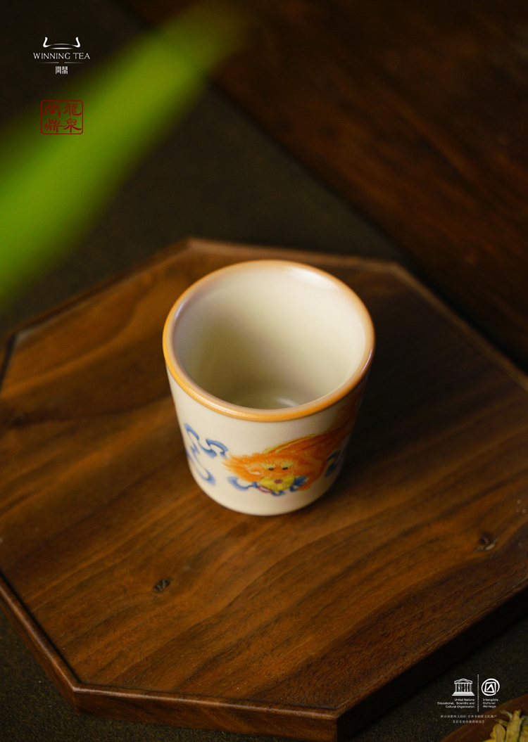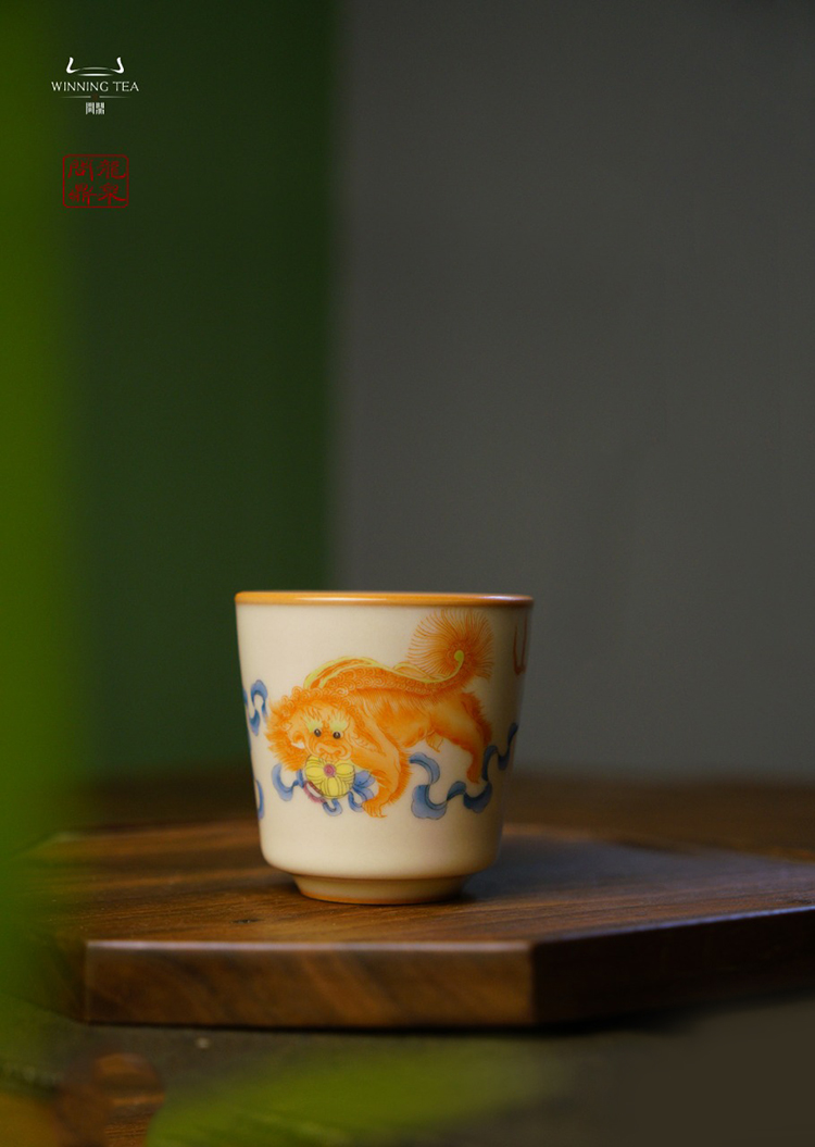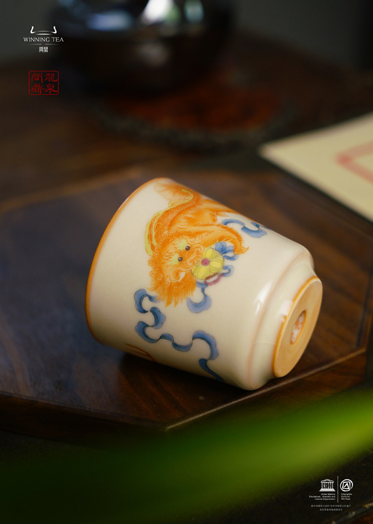 龙泉问鼎彩绘哥窑天水杯(狮子绣球)(缺货)