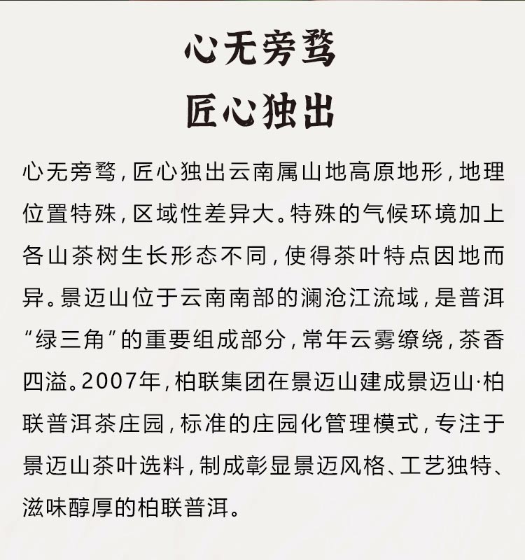 柏联普洱 中期茶 10年以上 风情 生茶 饼茶 紧压茶357g