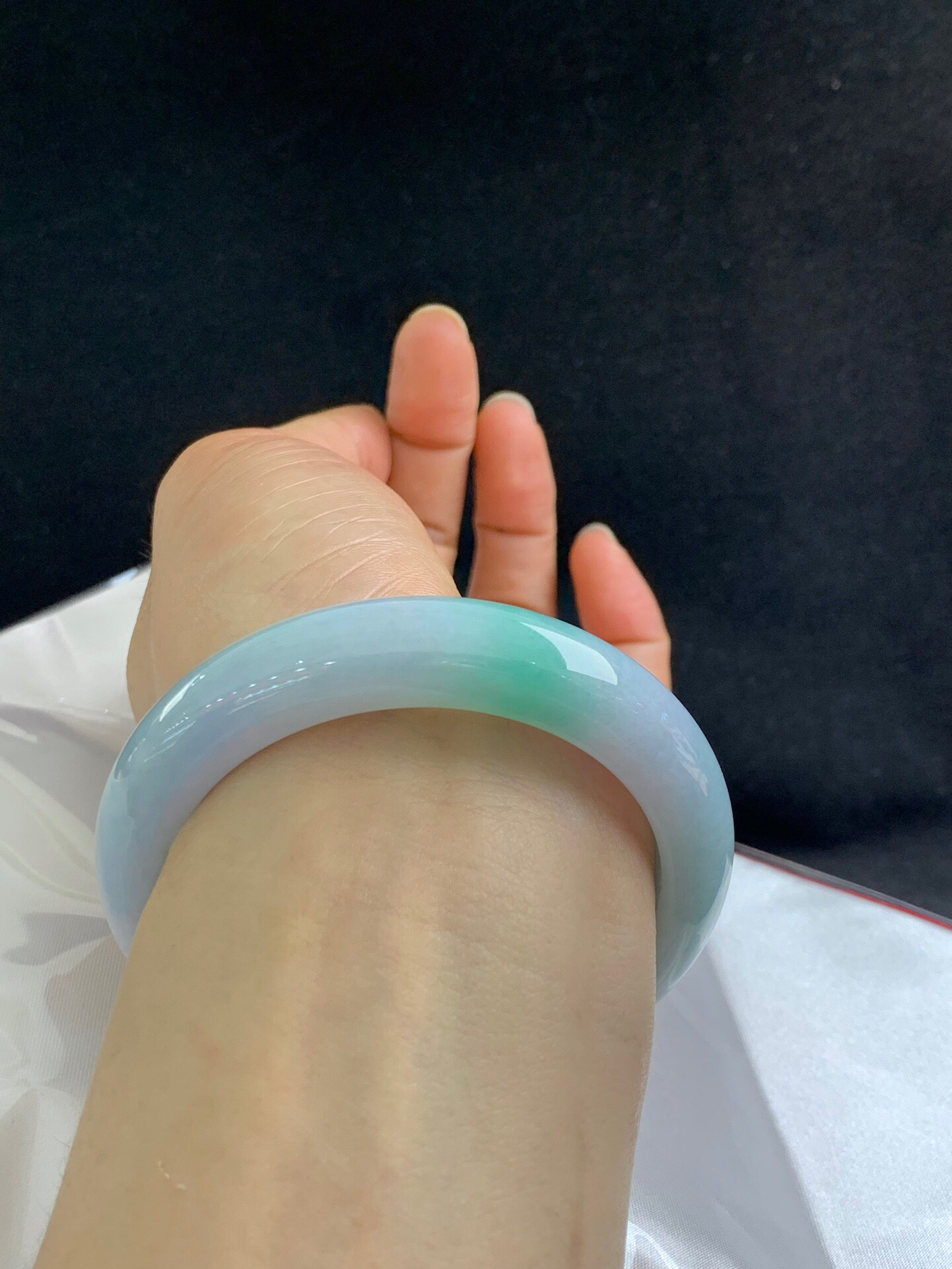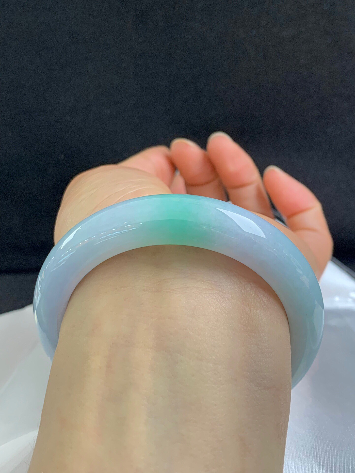 612868,57圈口,细糯化春彩正圈平安镯,细糯微化有水头,春带彩,底子细腻,完美,尺寸:57-12.9-9.2,超值价💰12300 #优石客珠宝#香玉荟萃