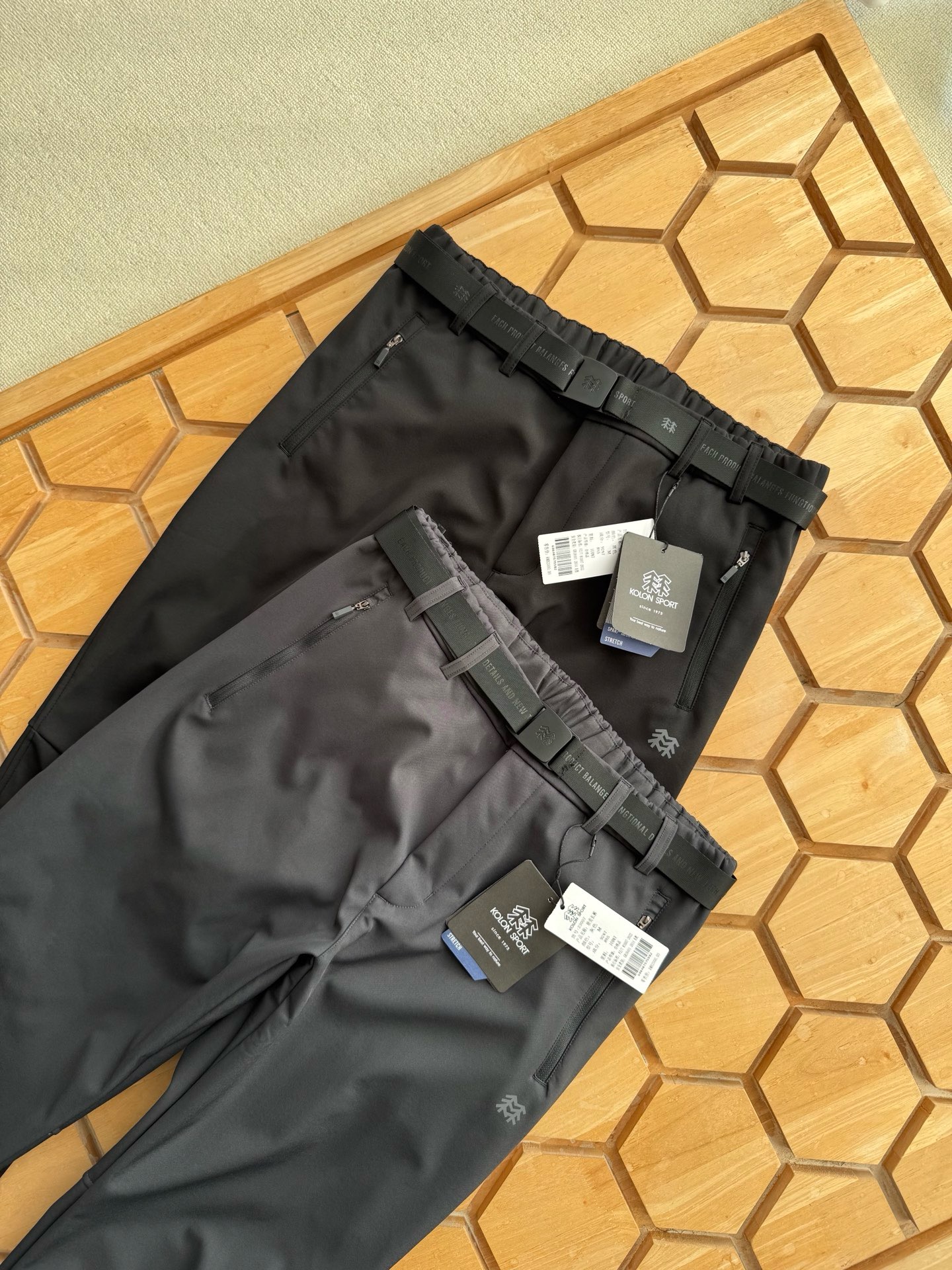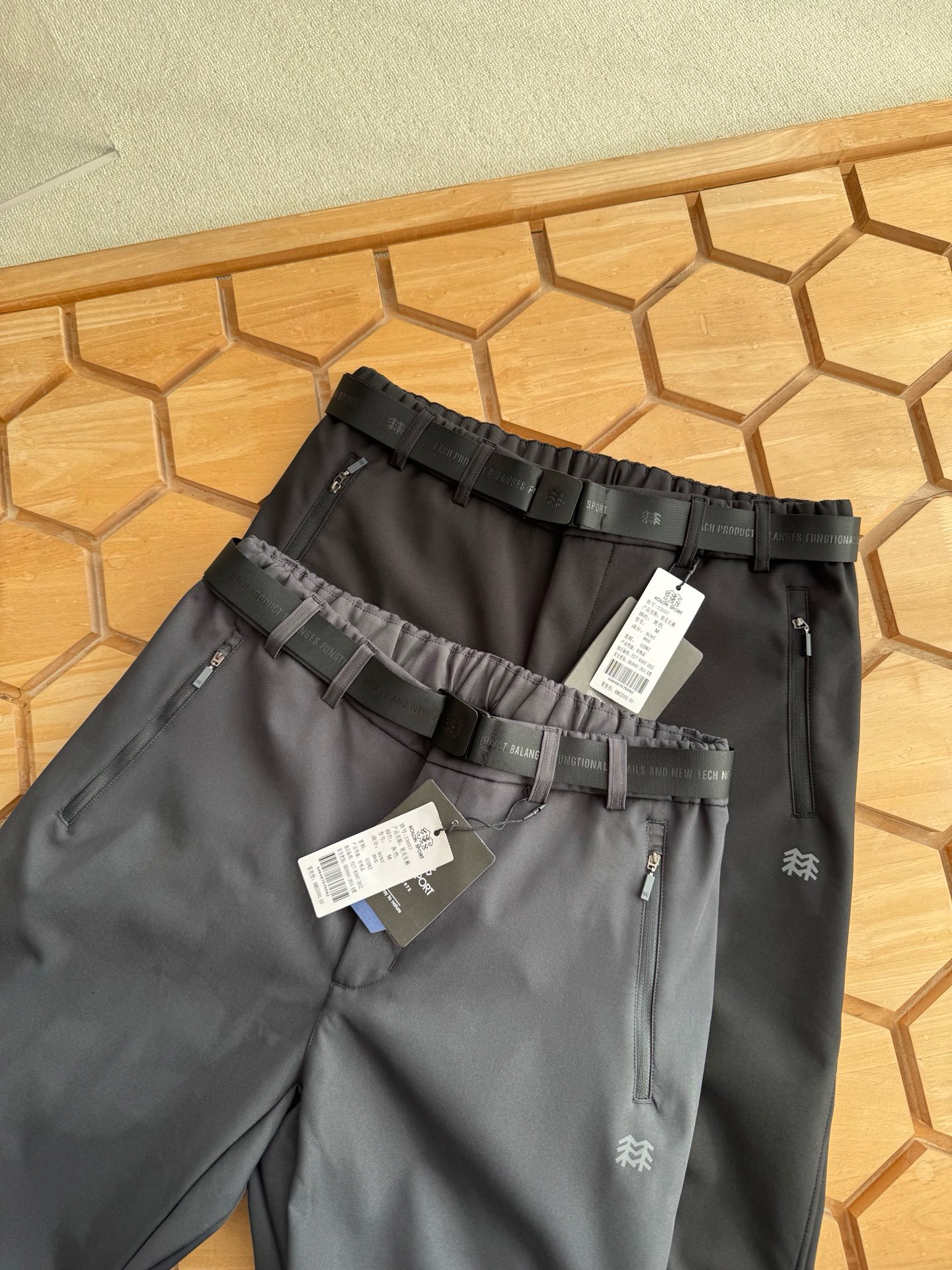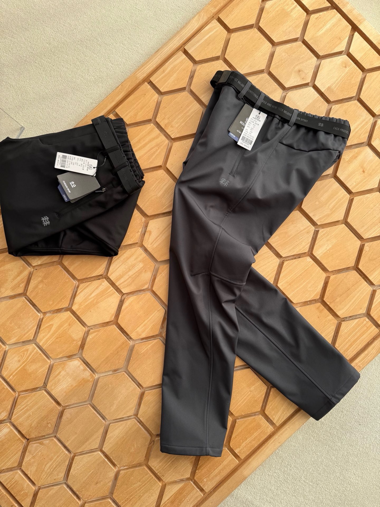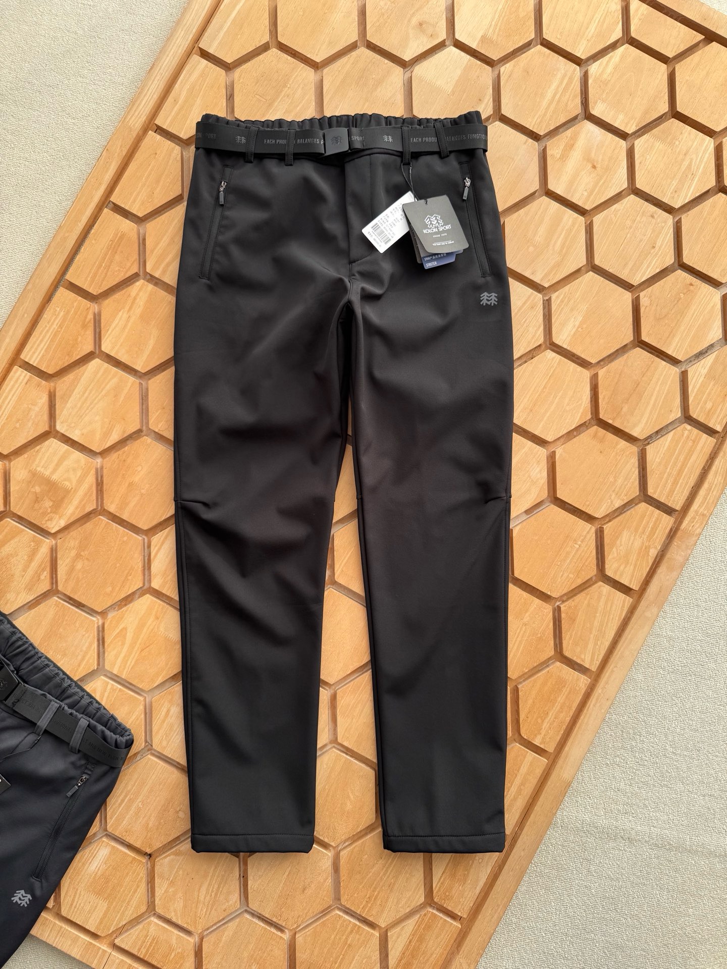 面料采用新型的户外针织类面料的,面料立体有型!纹路清晰!四面微弹,适合任何环境穿着搭配! 既有西装裤的正式感,又有运动裤的舒适感,上身效果特别有型,3D立体剪裁拼接的锥形裤裤型,腰部独特的拼接式松紧腰设计,让裤型平整有型,内置抽绳!穿着舒适更不会下滑,给你十足的安全感!裤子两侧隐形式拉链(YKK拉链)口袋拉链设计,安全性极高。口袋下面印有立体的常青树logo,精致满满!细节满分!品质保证!