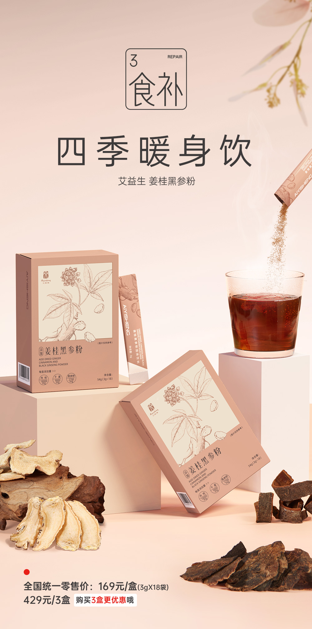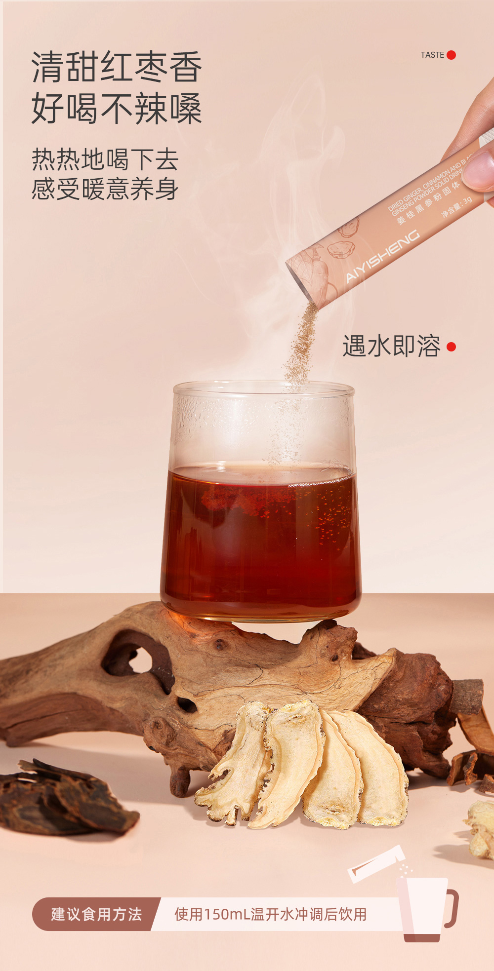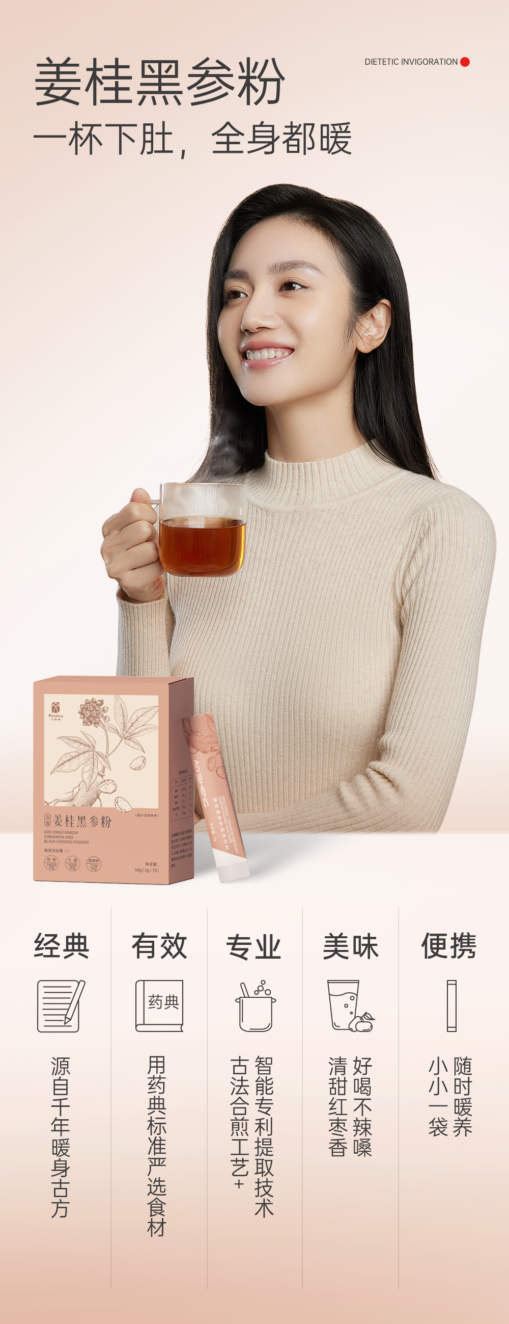【姜桂黑参粉(18条/盒)】暖身饮,刮痧艾灸来一杯,暖暖的