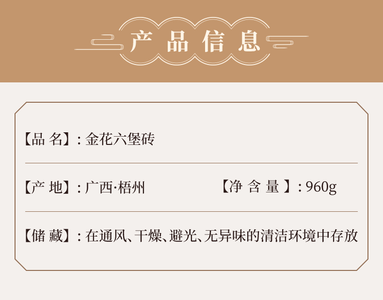 茂圣丨金花六堡砖 广西六堡茶 黑茶 2015年原料 960g
