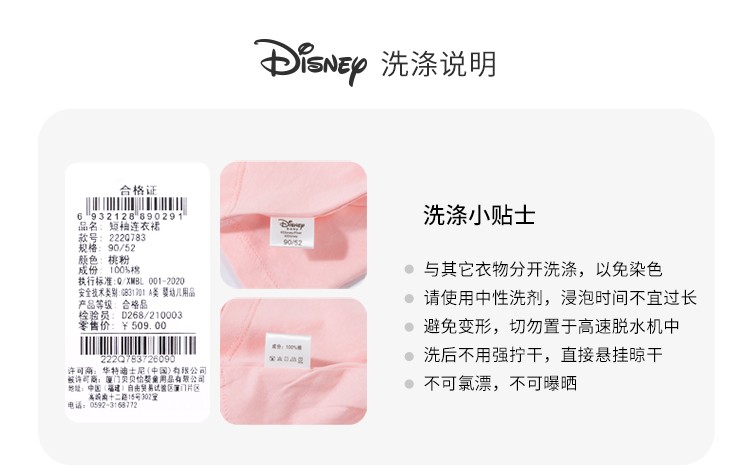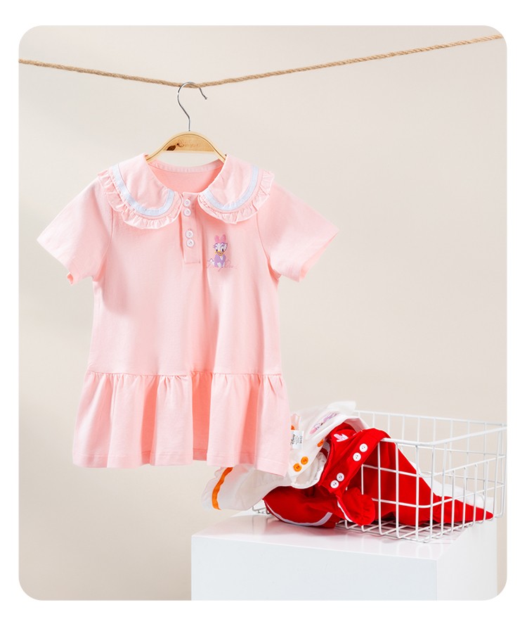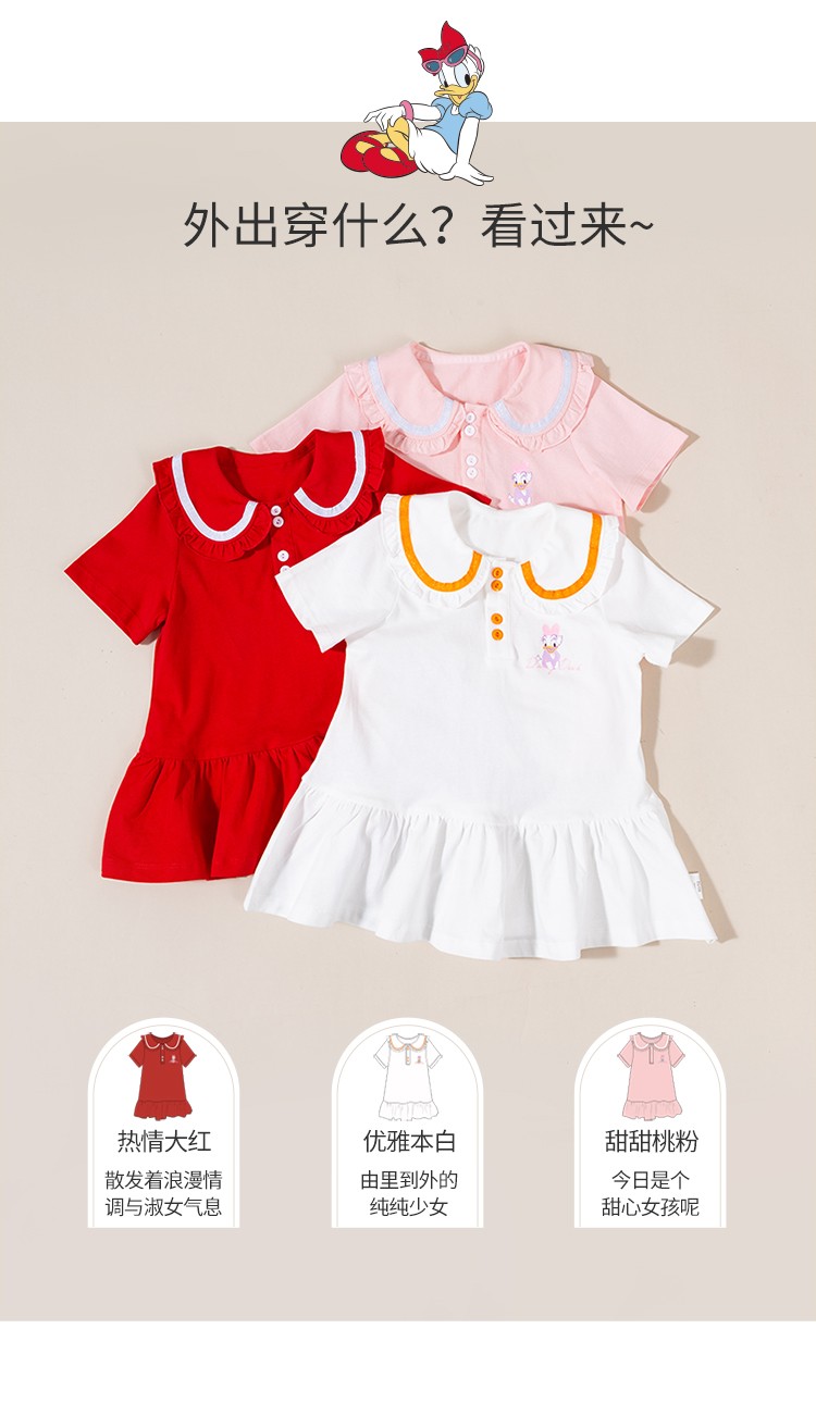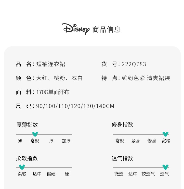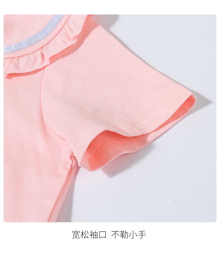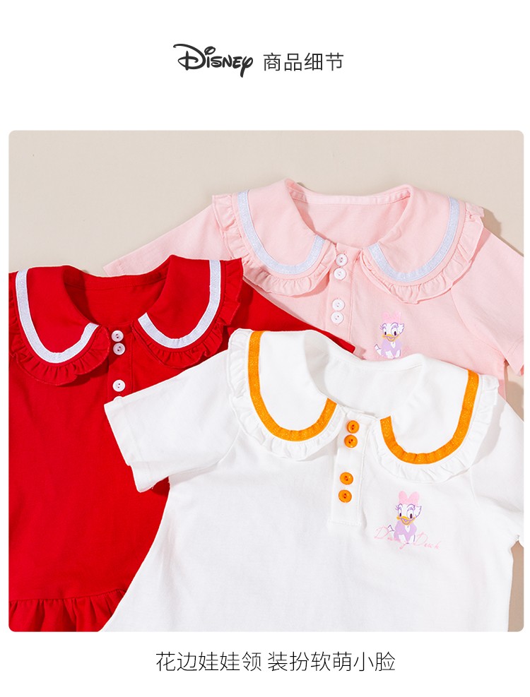迪士尼童装 女童短袖连衣裙夏季圆领荷叶边新款裙子公主裙
