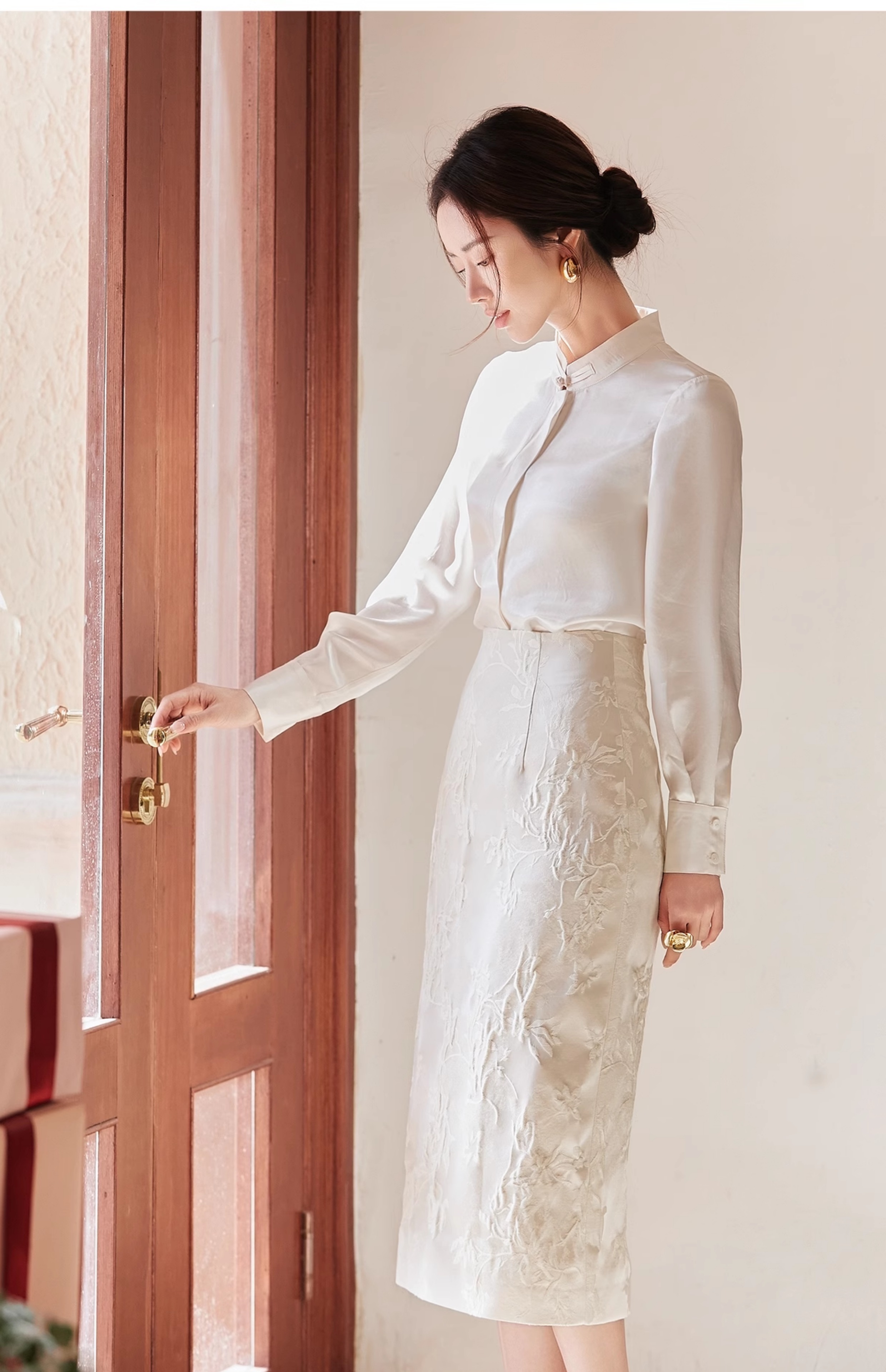 FUYAO扶摇 新中式盘扣衬衫套装2025春季新款国风衬衫半身裙两件套