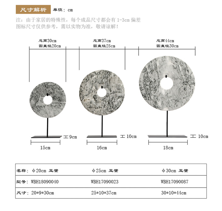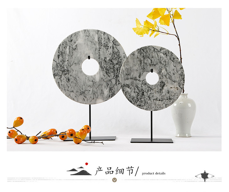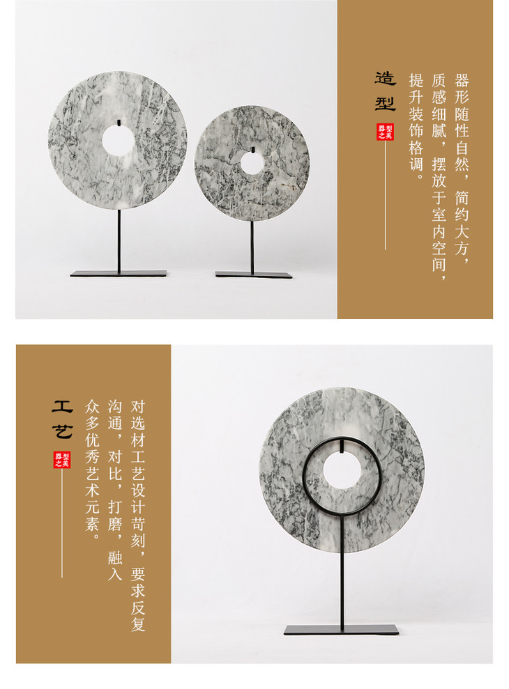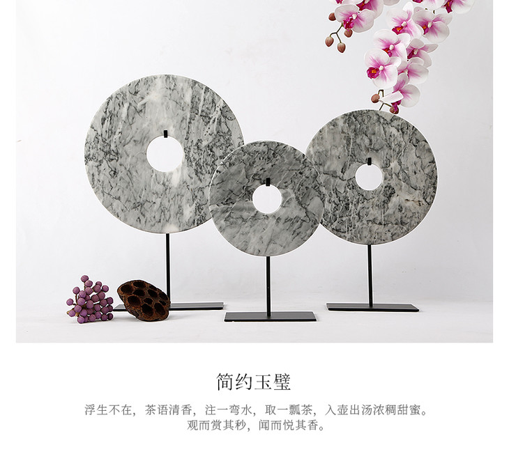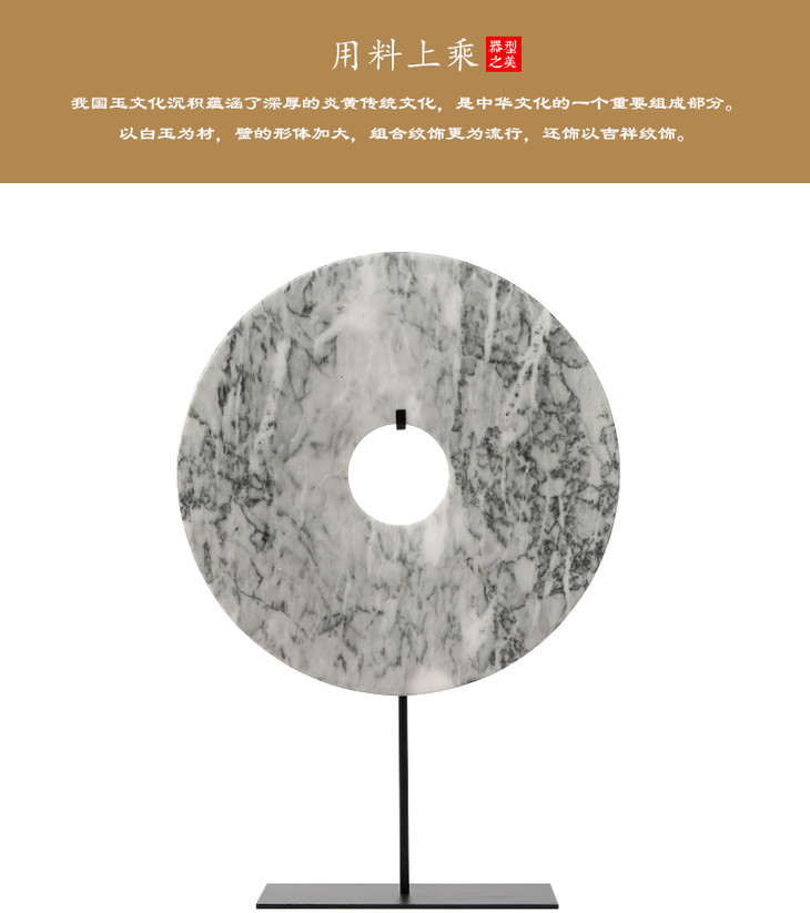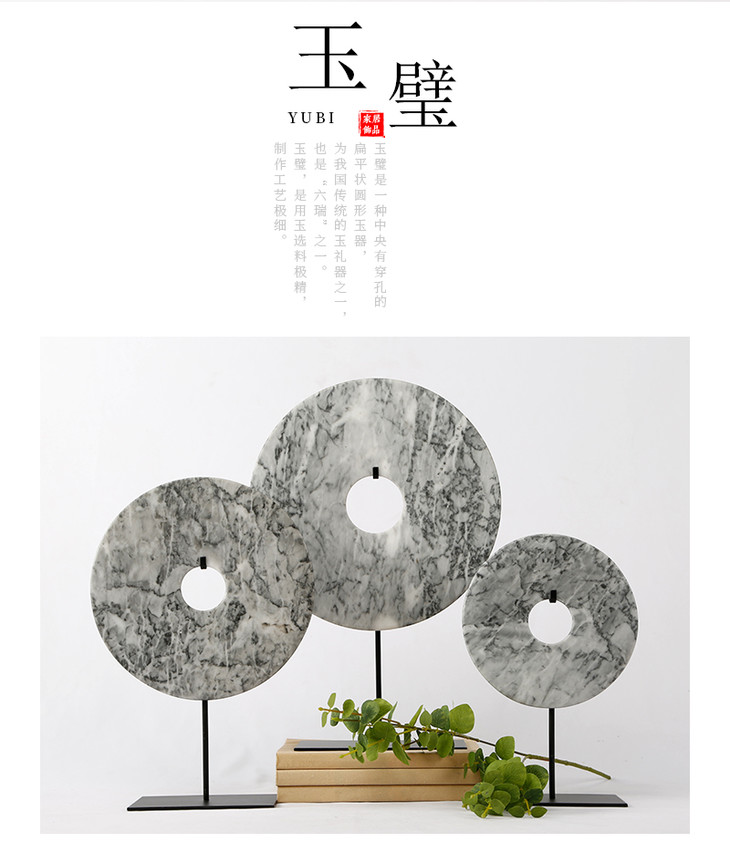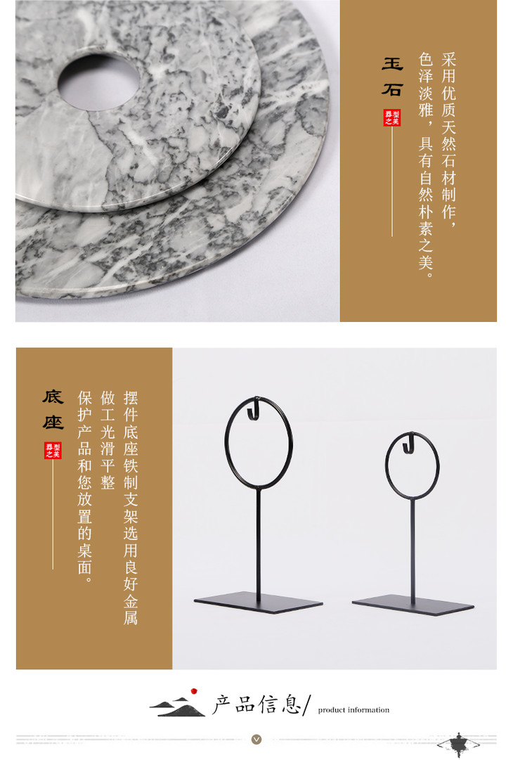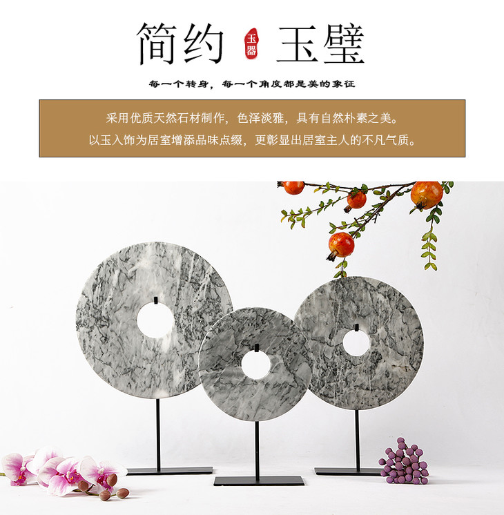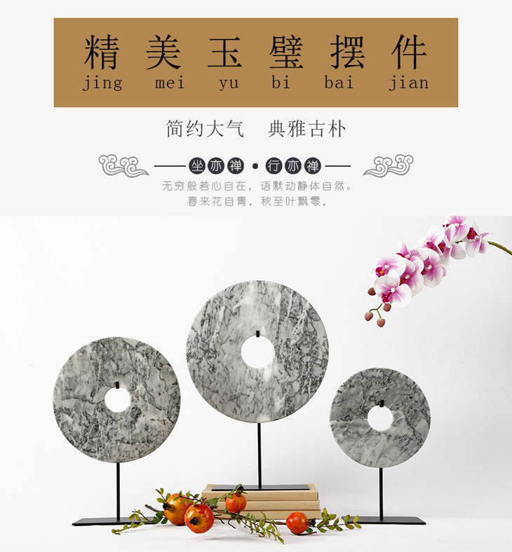 灰白玉片桌面摆件装饰品玉璧(大中小)Disk with stand