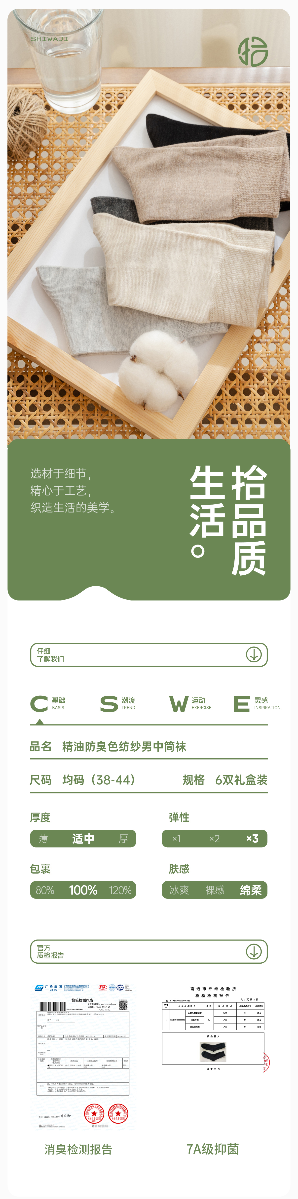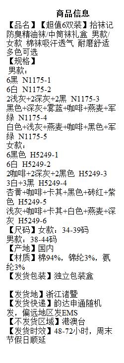【超值6双装】拾袜记 防臭精油袜/中筒袜礼盒 男款/女款 棉袜吸汗透气 耐磨舒适 多色可选