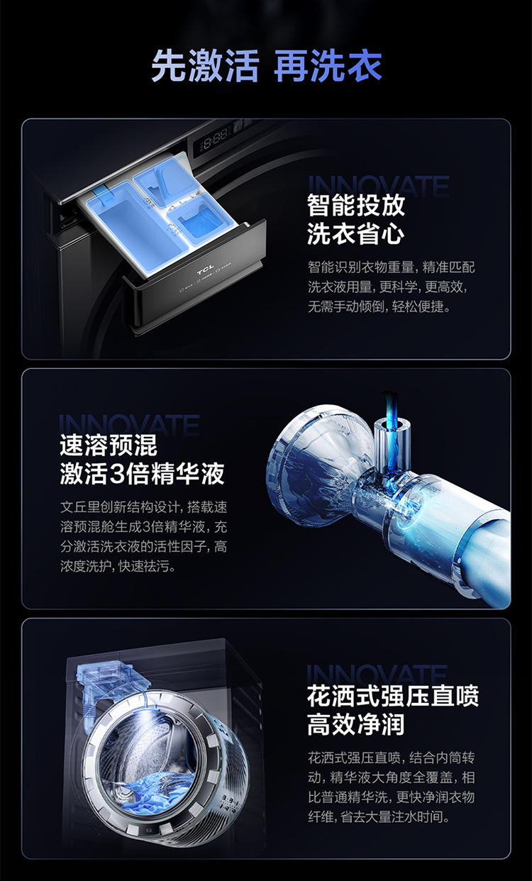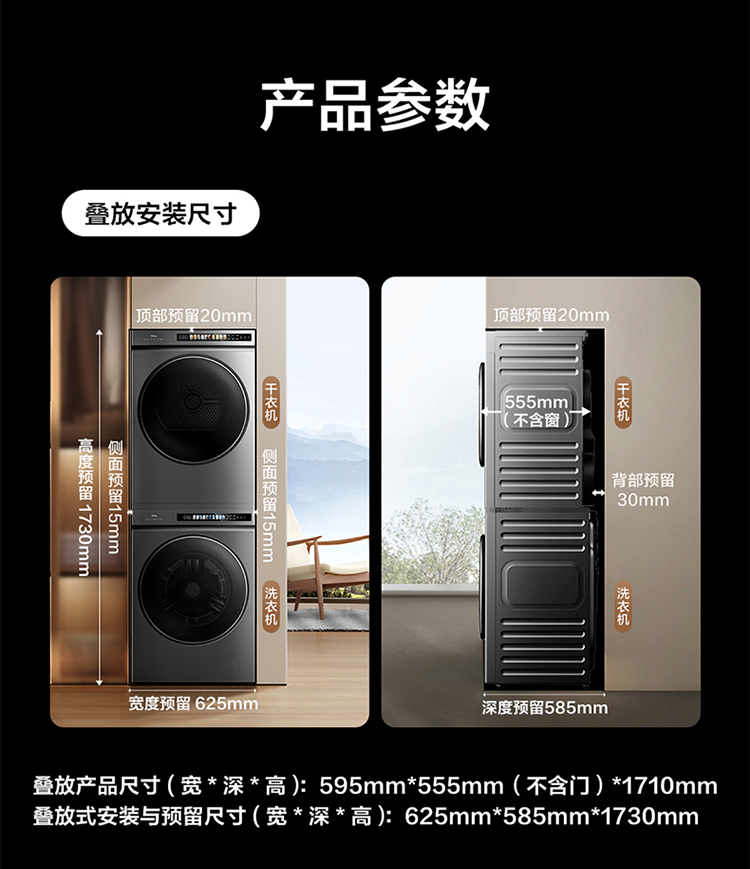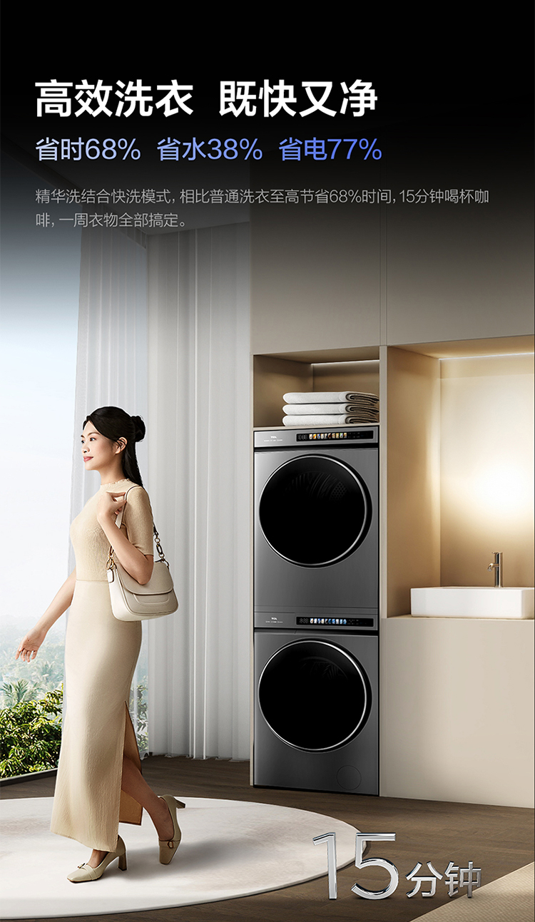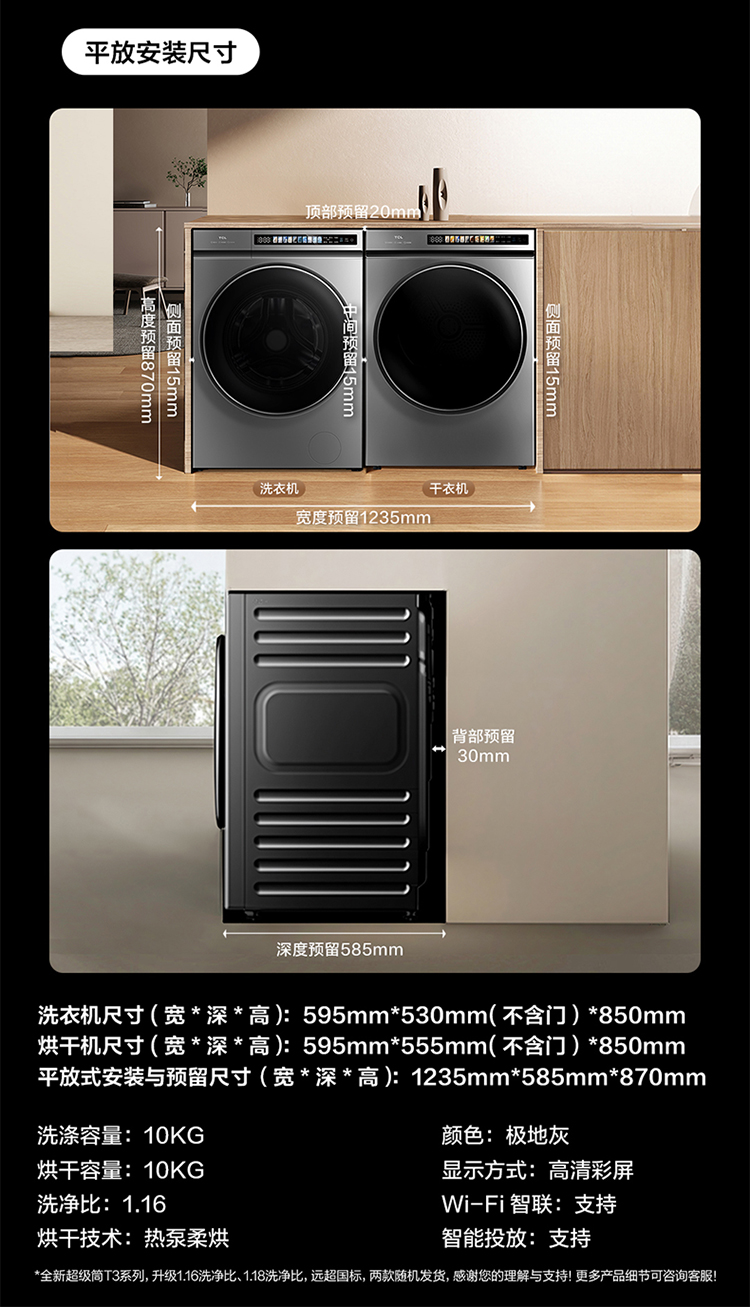 【TCL洗衣机】TCL 超薄洗烘套装T3 PRO 热泵柔烘 智能投放 10KG洗+10KG烘 G100T3-BIS+H100T3-S