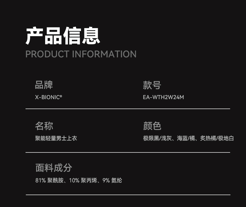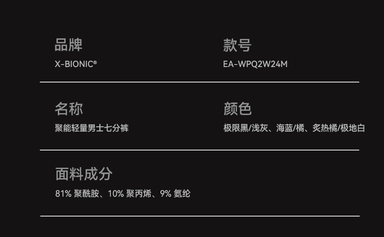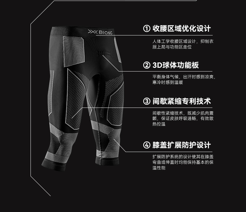 X-BIONIC 聚能轻量男士衣裤 控温打底轻量日常休闲徒步压缩衣裤 EA-WTH2W24M