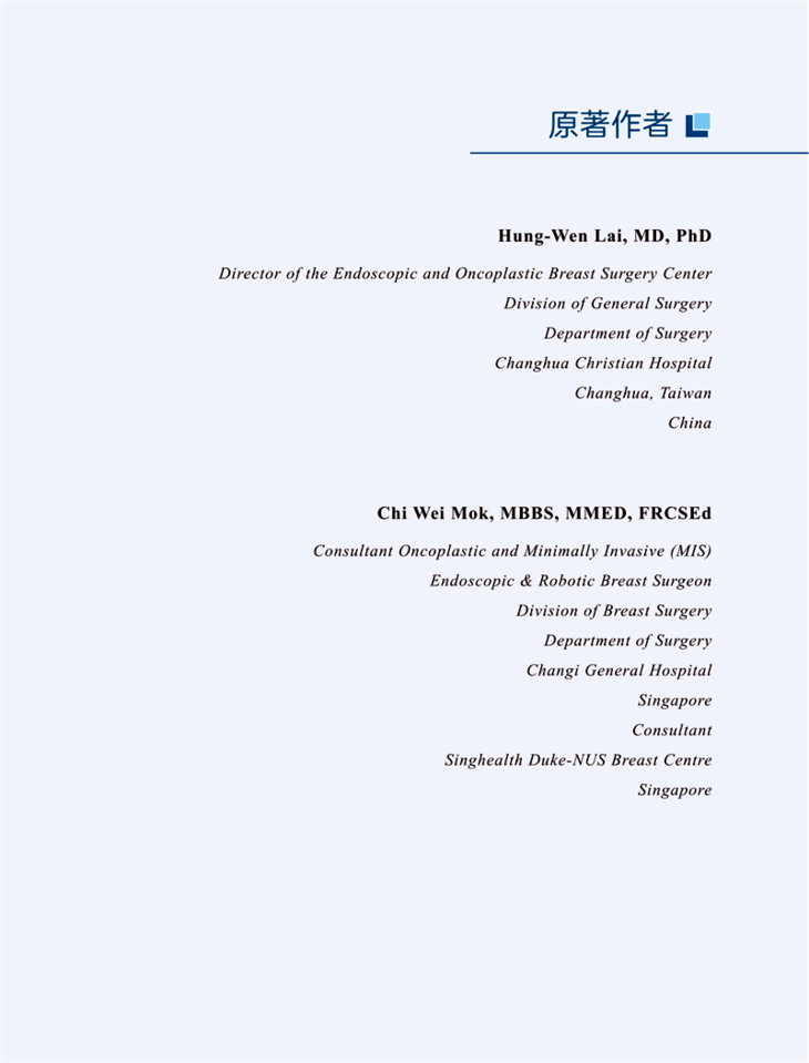 原书是乳腺外科专家Hung-Wen Lai教授和Chi Wei Mok教授编写的英文版,由爱思维尔(Elsevier)出版社出版。此次中文版一部不可多得的乳腺微创手术教程,有助于临床医生全面了解各类乳腺微创手术的风险和挑战,从而在实际操作中更加从容应对。本书适合乳腺和整形外科所有专业人士阅读,同时也适合其他相关学科的医生和医学生使用。