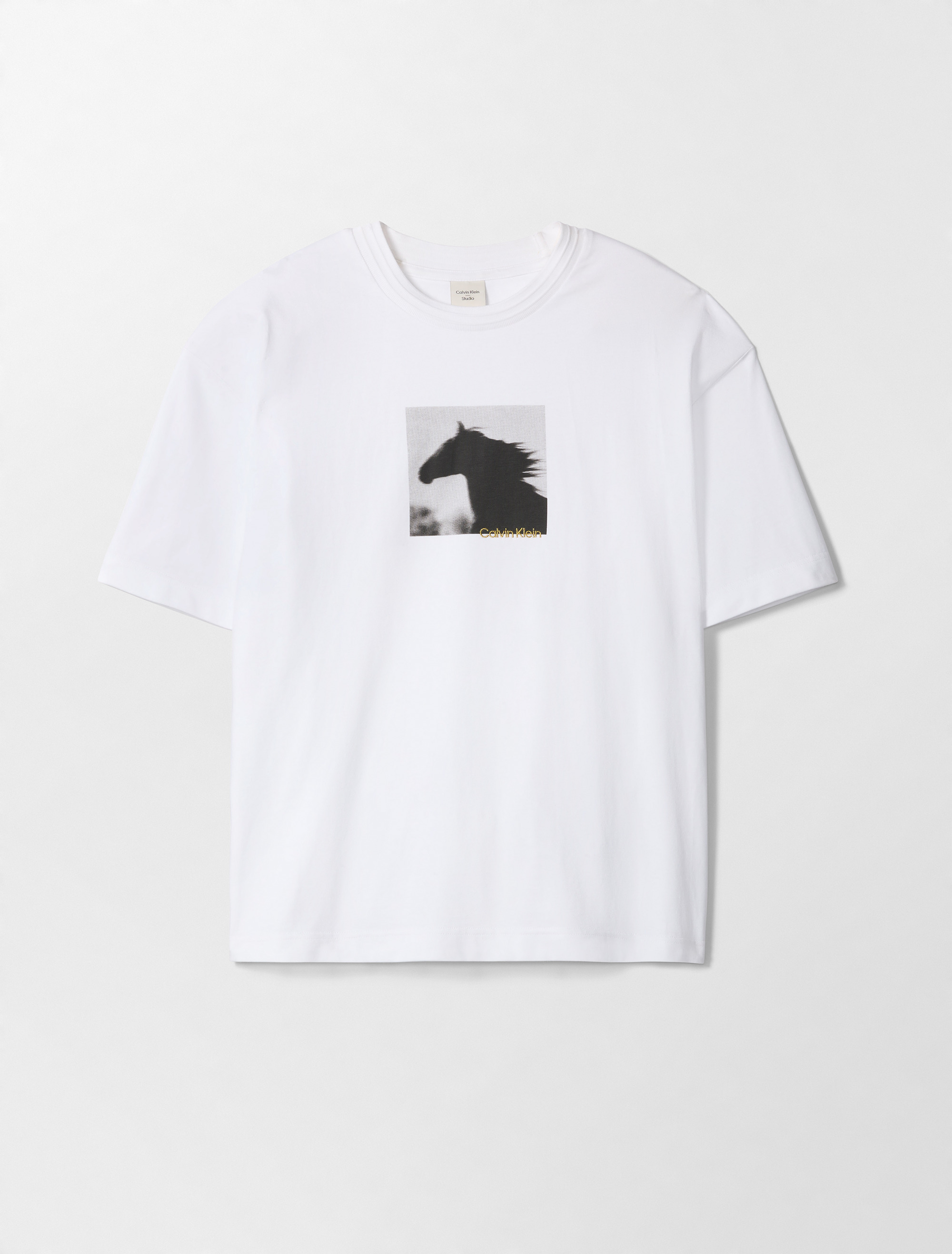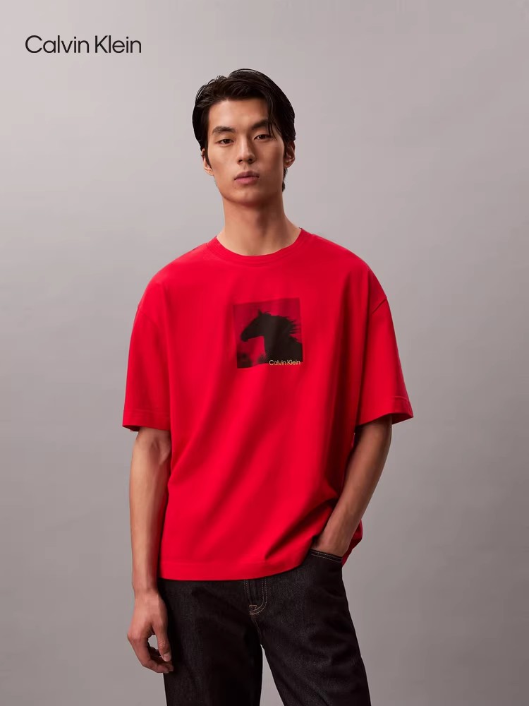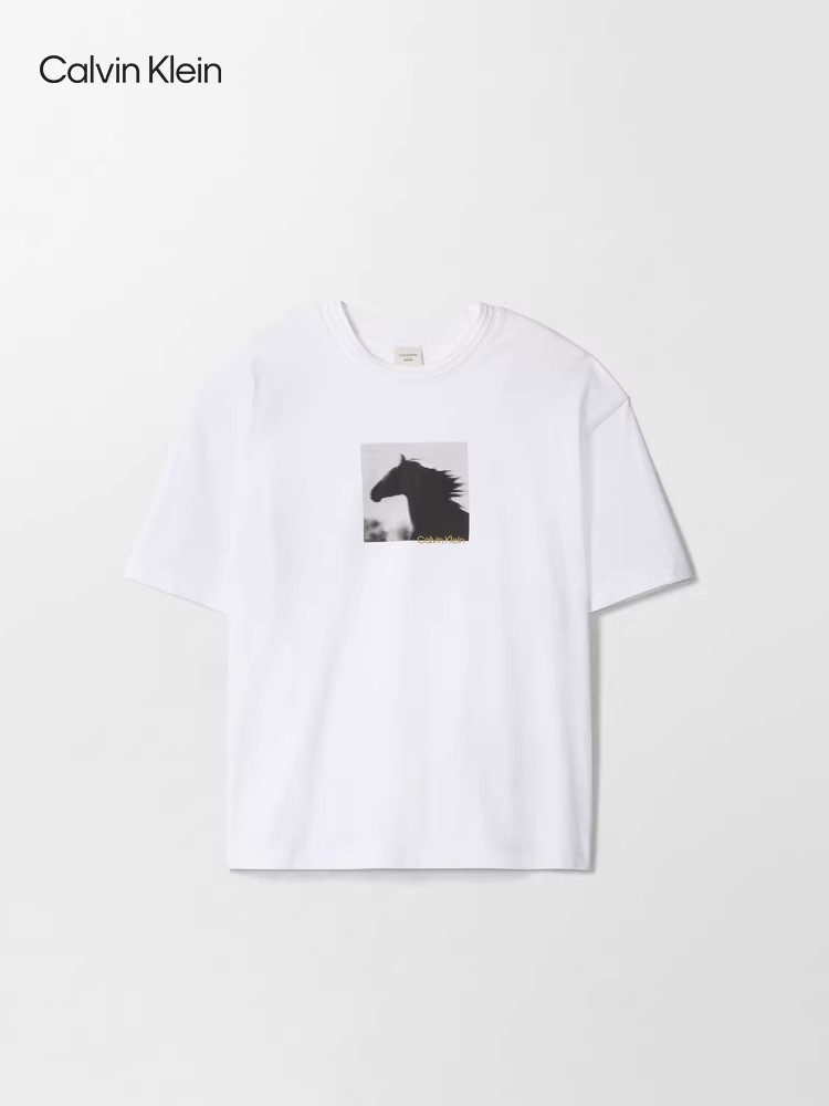 照片印花tee,复古美式半袖。小标刺绣宽松圆领情侣款t恤E040866
